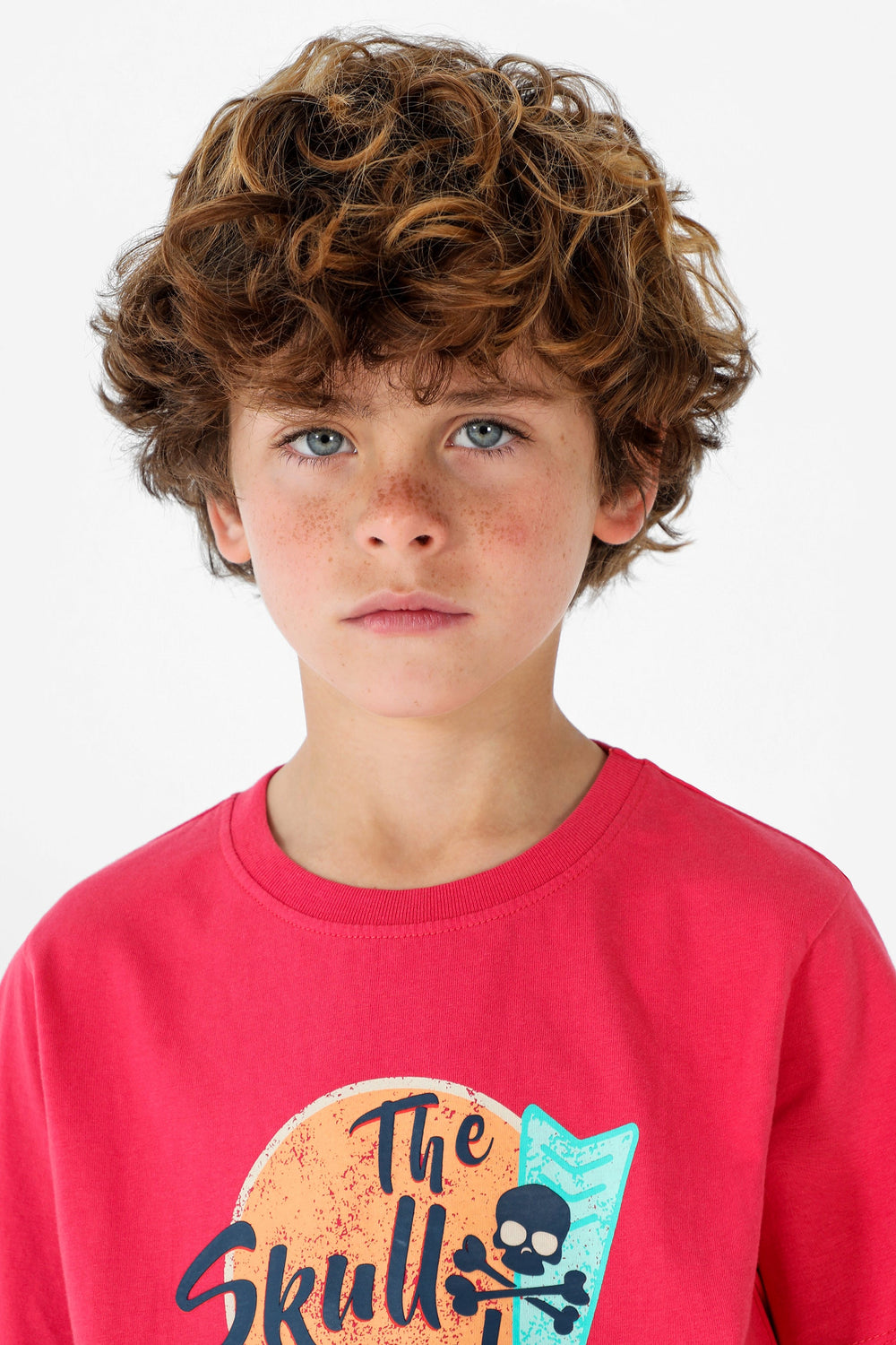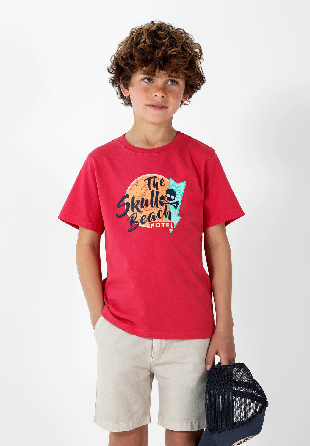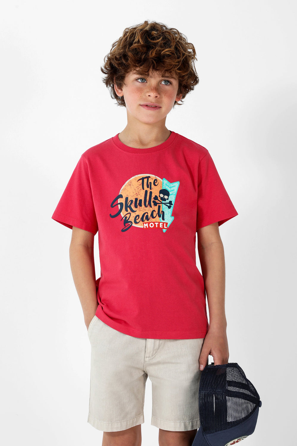Camiseta con print frontal confeccionada en tejido 100% algodón. Corte Regular Fit, cuello redondo y manga corta.