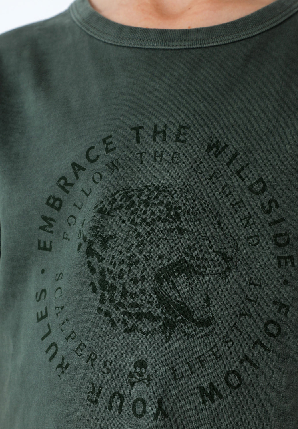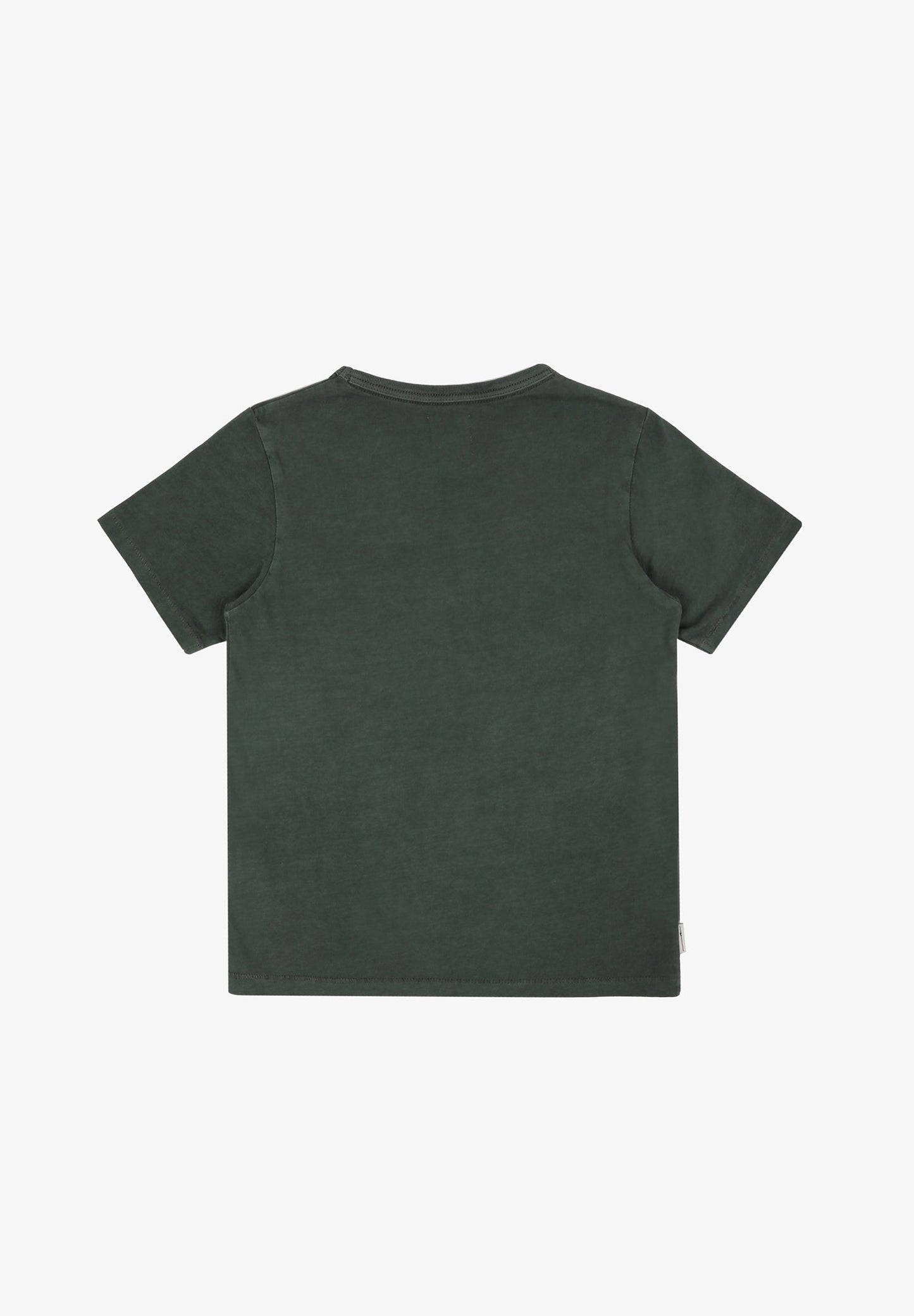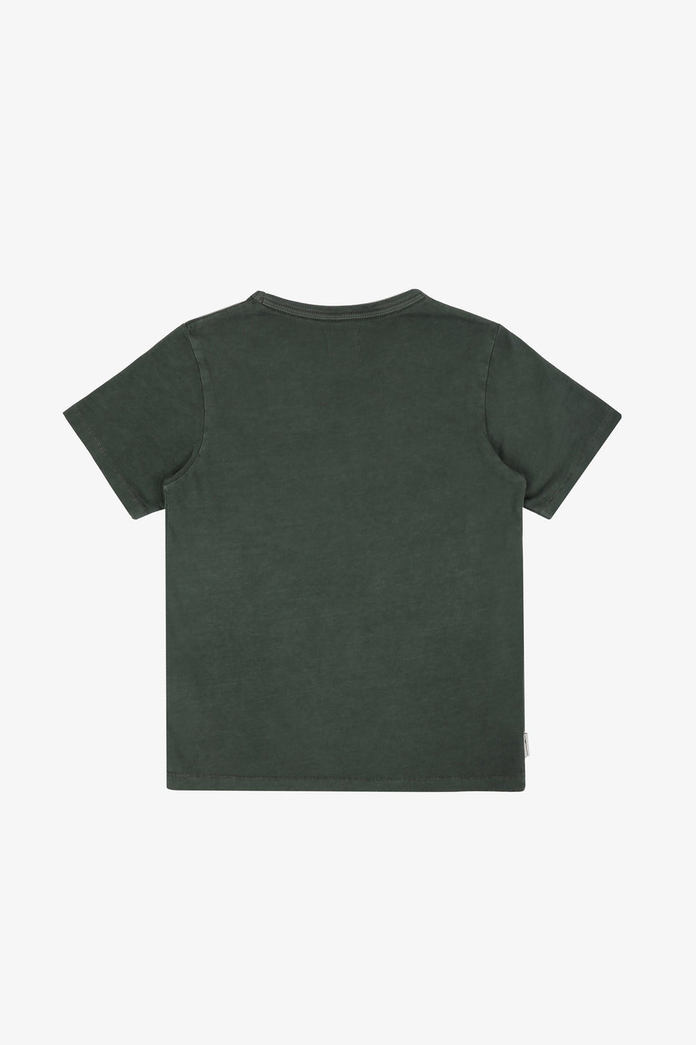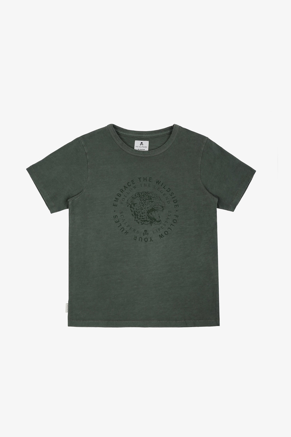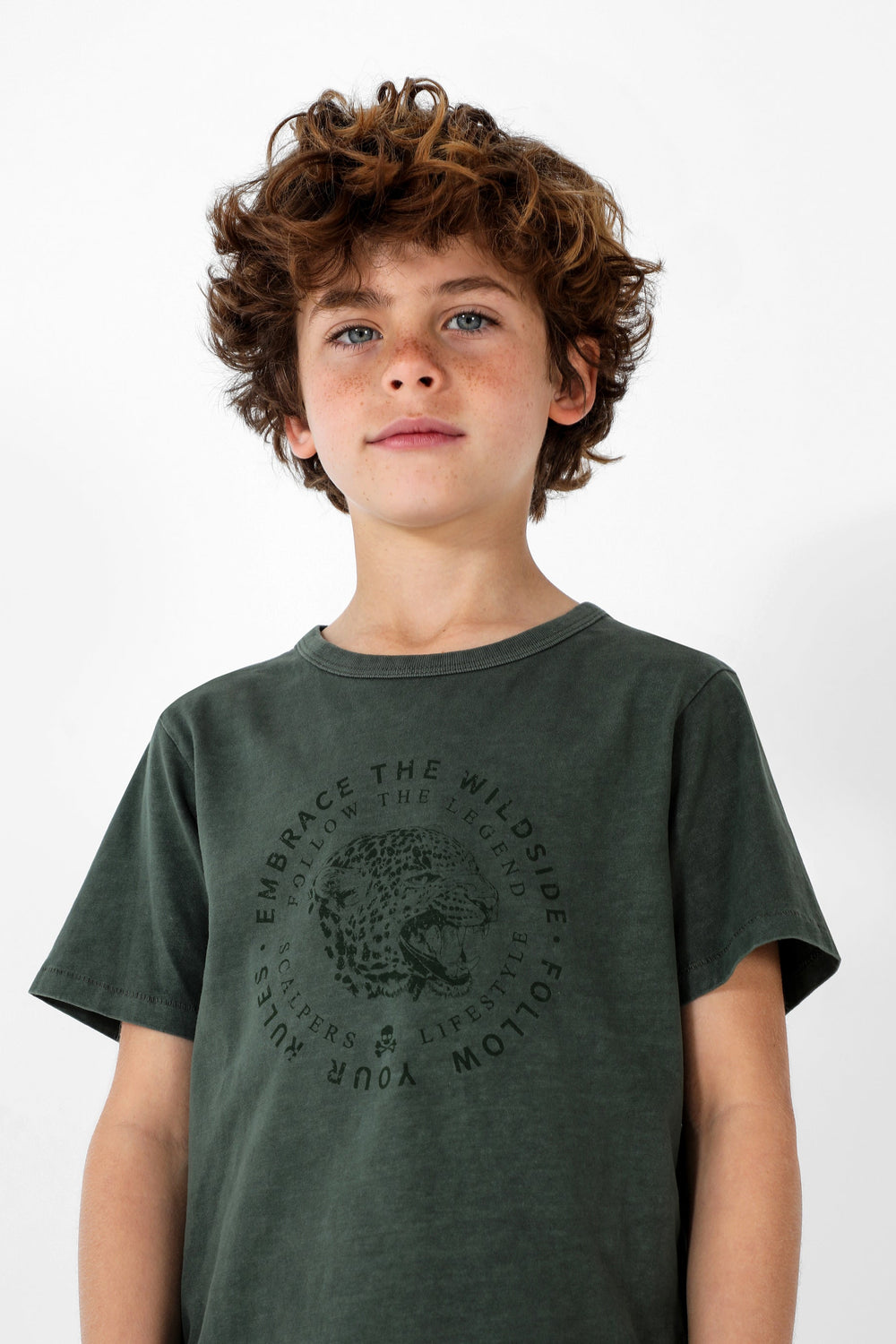 Camiseta confeccionada en tejido 100% algodón orgánico. Corte Regular Fit, cuello redondo y manga corta. Detalle de print redondo frontal.