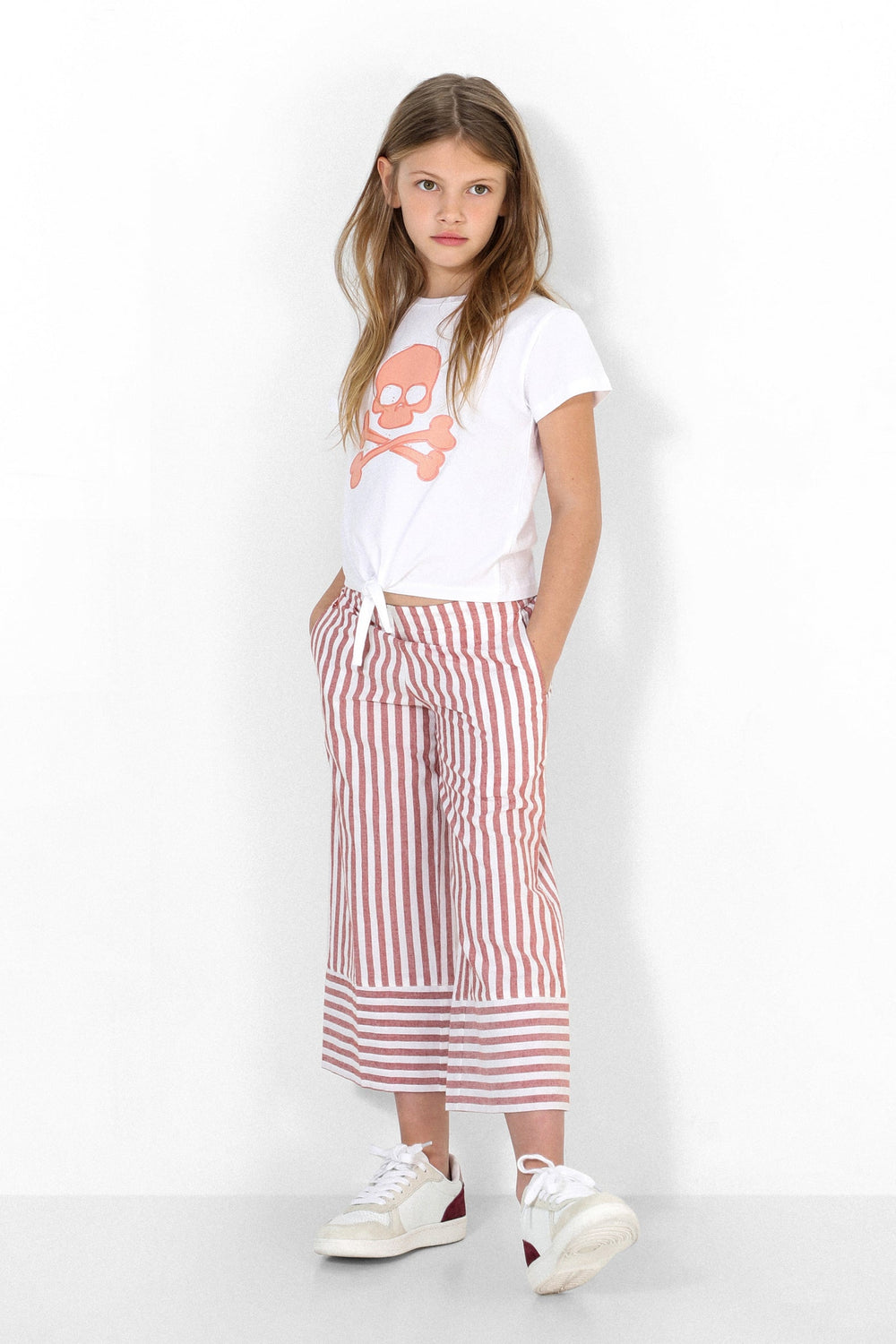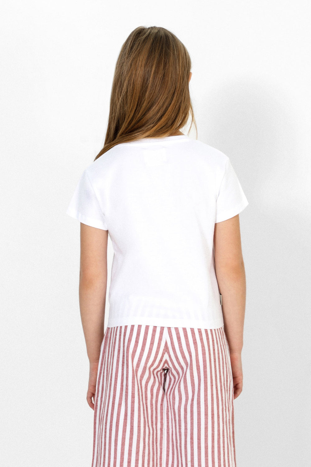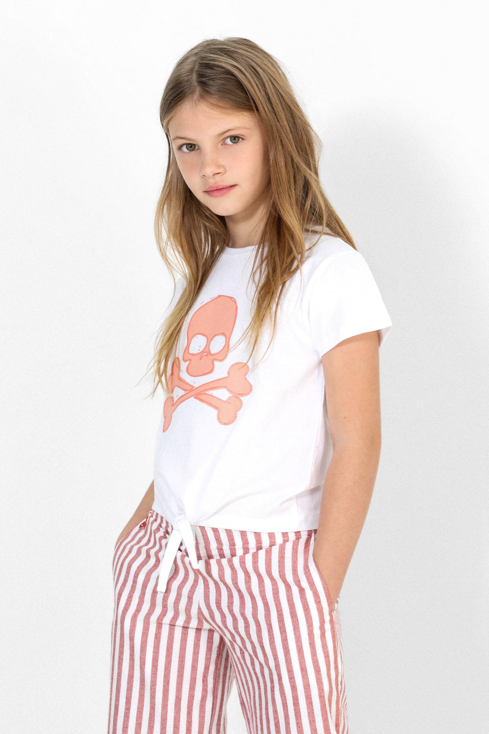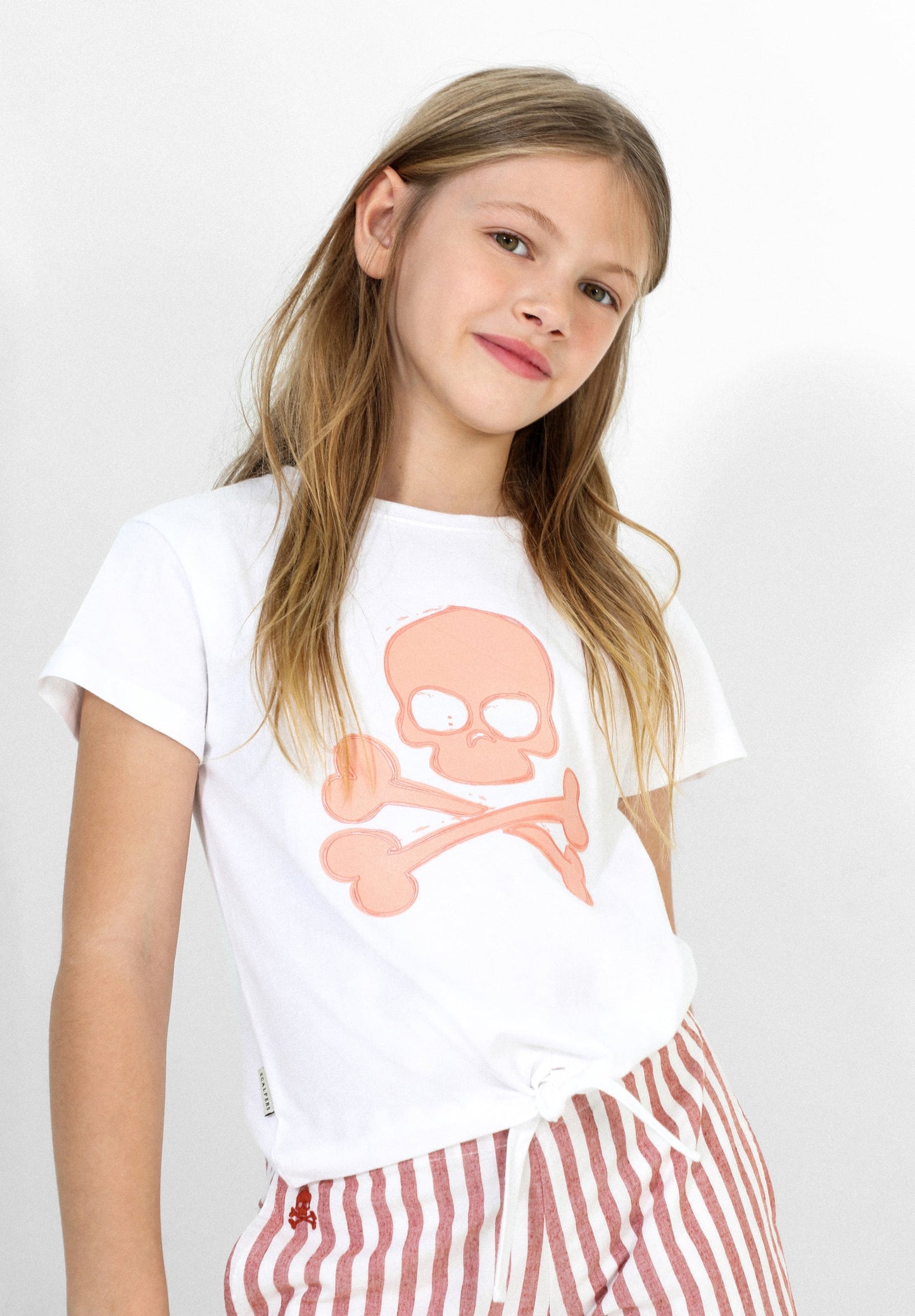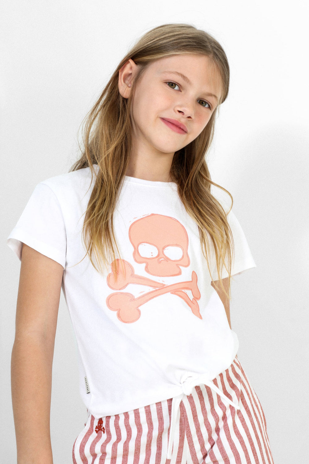 Camiseta confeccionada en tejido 100% algodón orgánico. Corte Regular Fit, cuello redondo y manga corta. Detalle de print frontal de calavera y nudo.