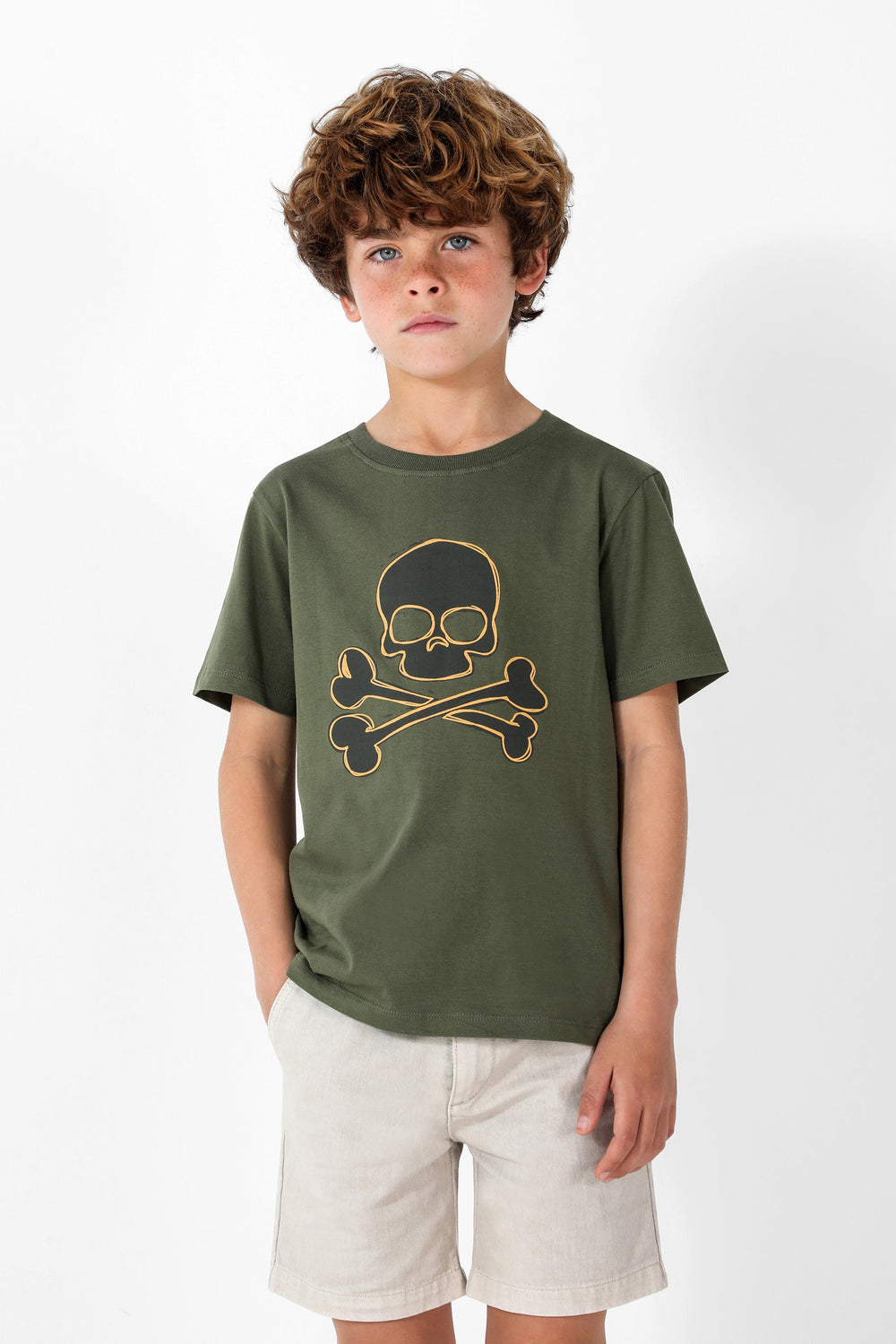 Camiseta confeccionada en tejido 100% orgánico. Corte Regular Fit, cuello redondo y manga corta. Detalle de calavera frontal.
