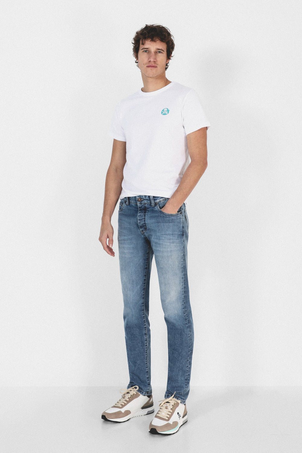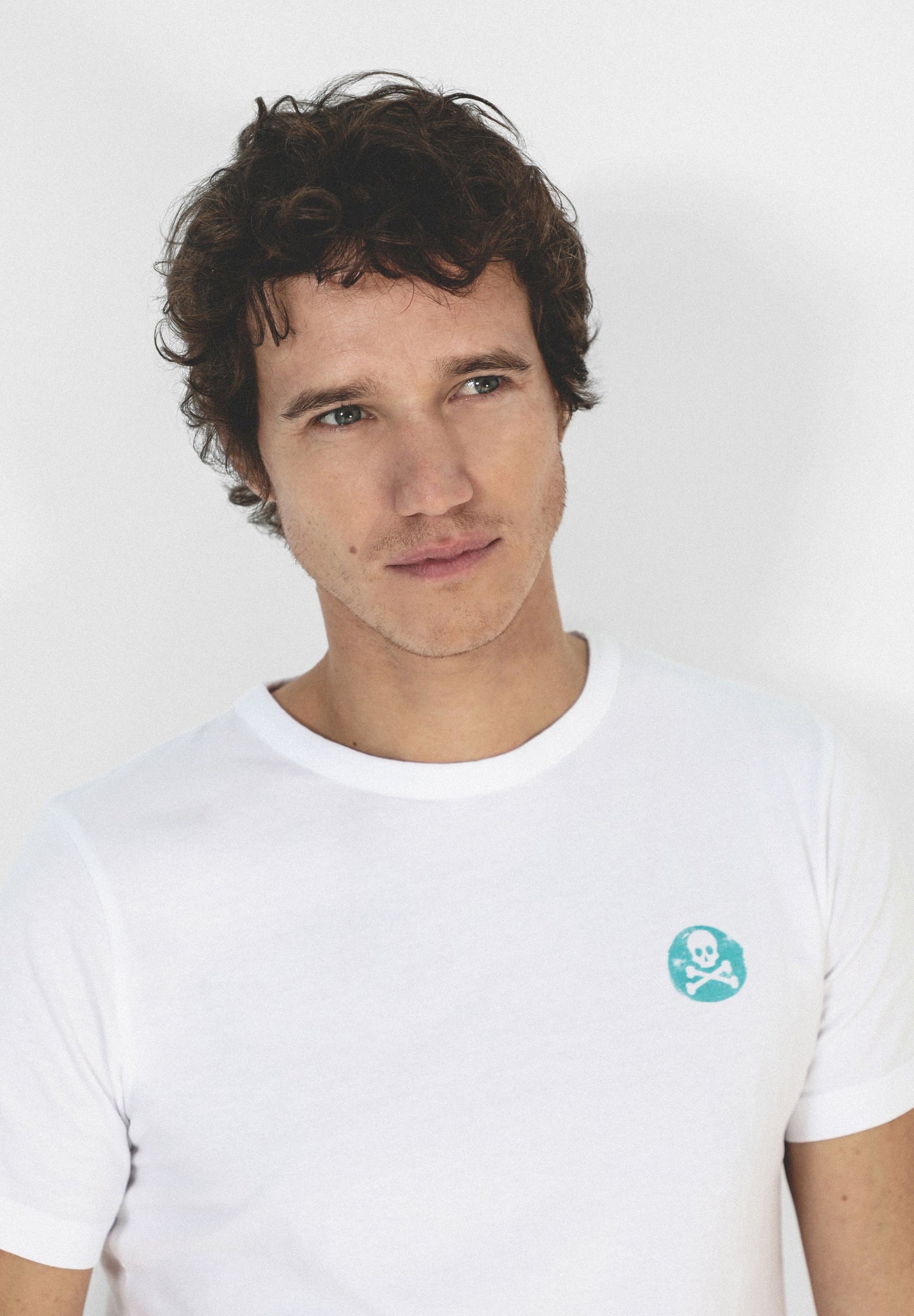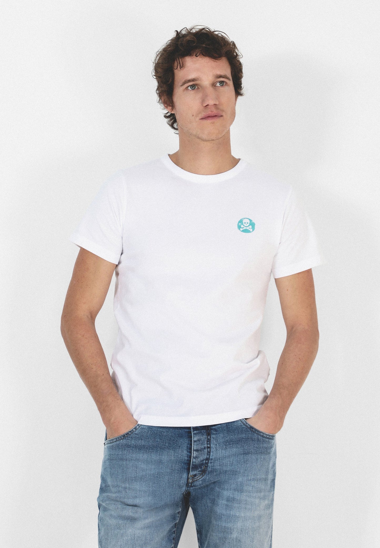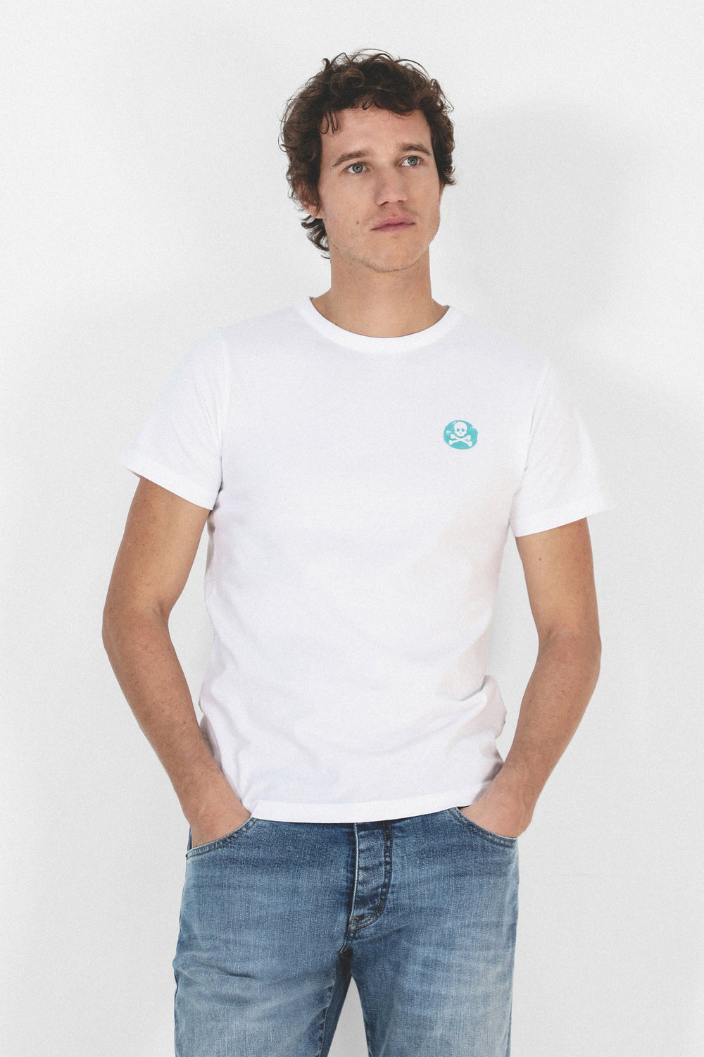 Camiseta confeccionada en tejido 100% algodón orgánico. Corte Regular Fit, cuello redondo y manga corta. Detalle de print de calavera en el pecho.