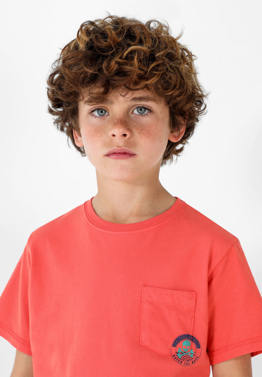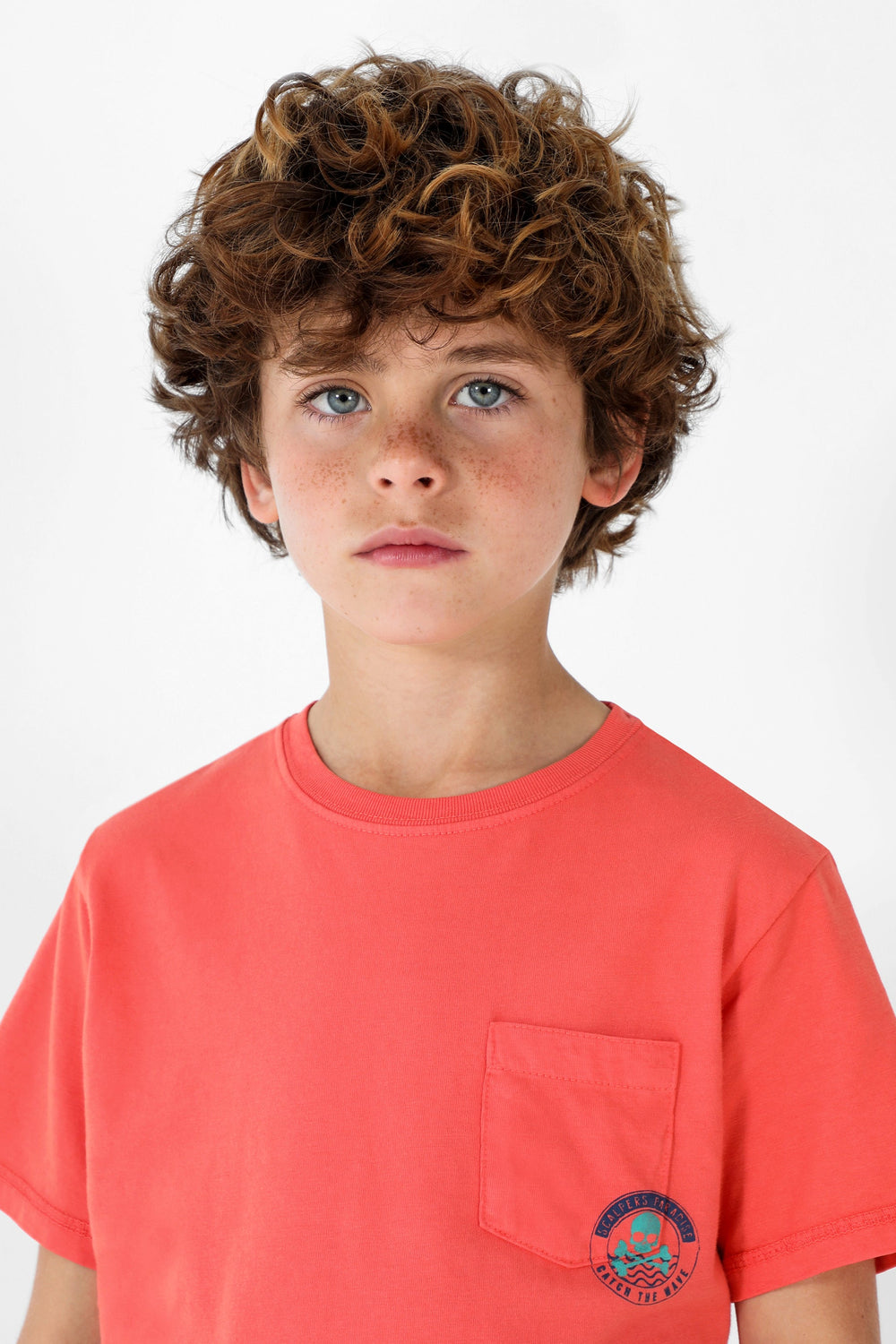 Camiseta confeccionada en tejido 100% orgánico. Corte Regular Fit, cuello redondo y manga corta. Detalle de bolsillo en el pecho y print frontal y trasero.
