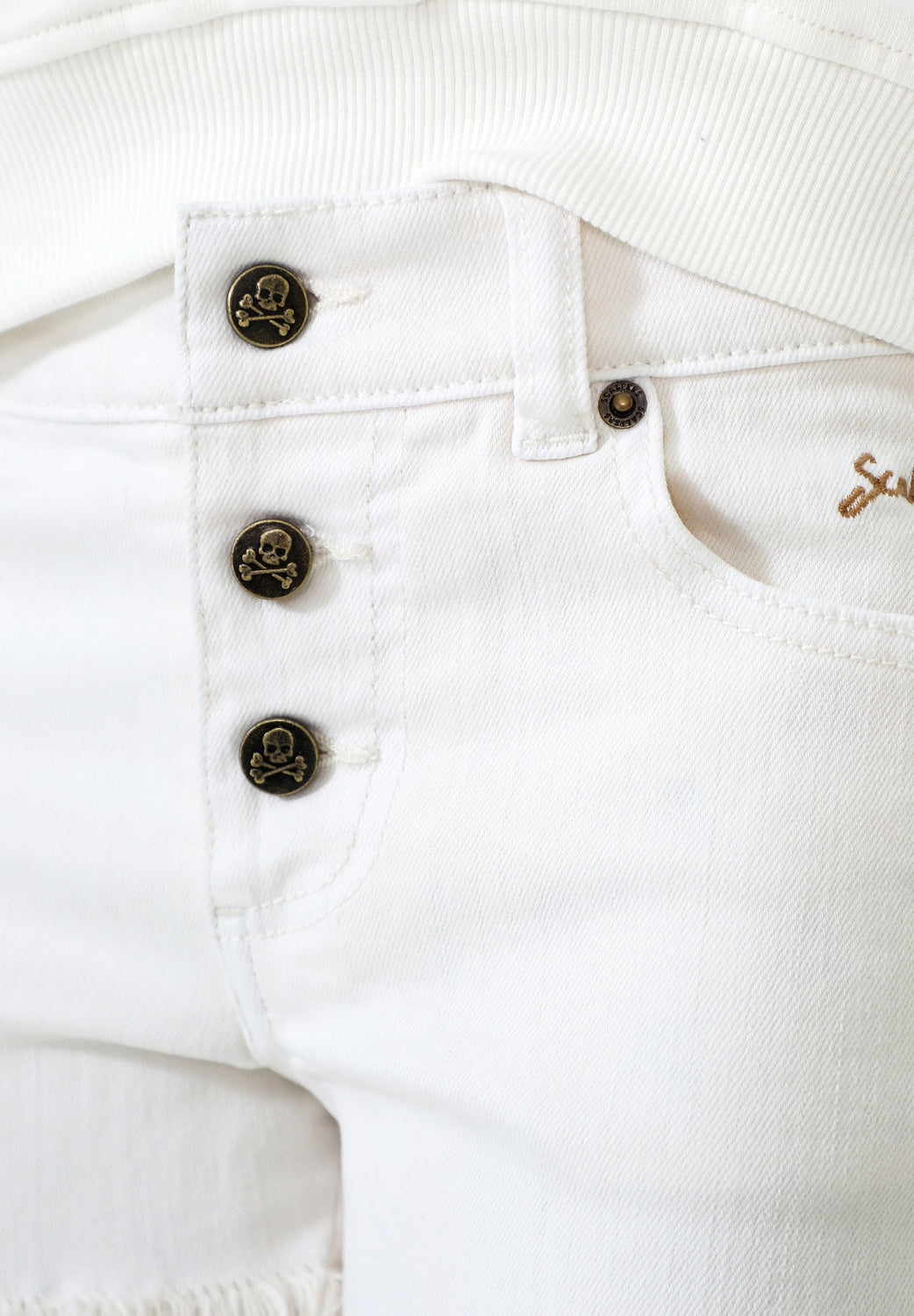 Shorts confeccionados en tejido de algodón ligeramente elástico. Corte Slim Fit, cierre con botones y bolsillos laterales. Tiene trabillas y detalle de logo bordado.