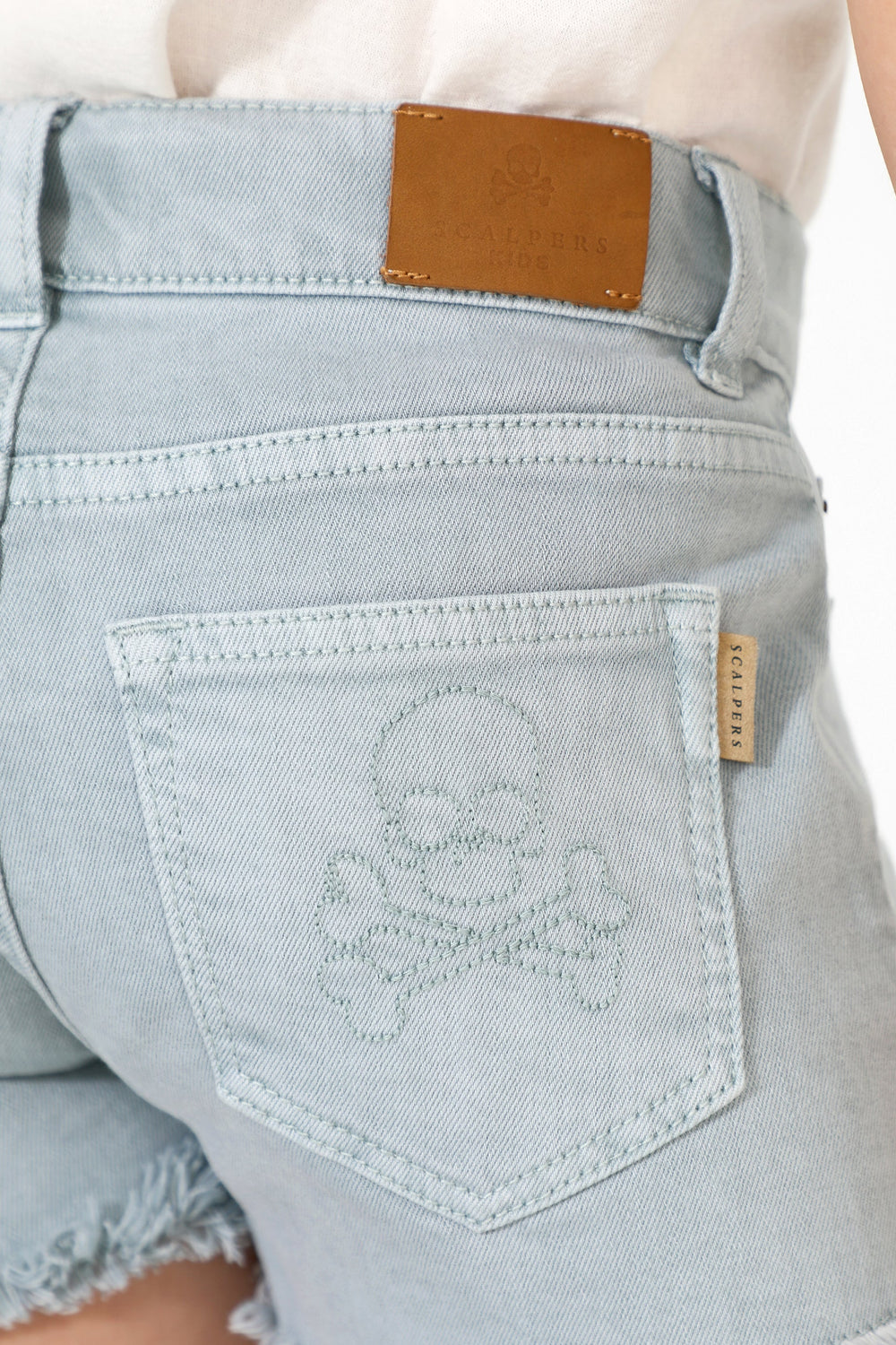 Shorts confeccionados en tejido de algodón ligeramente elástico. Corte Slim Fit, cierre con botones y bolsillos laterales. Tiene trabillas y detalle de logo bordado.