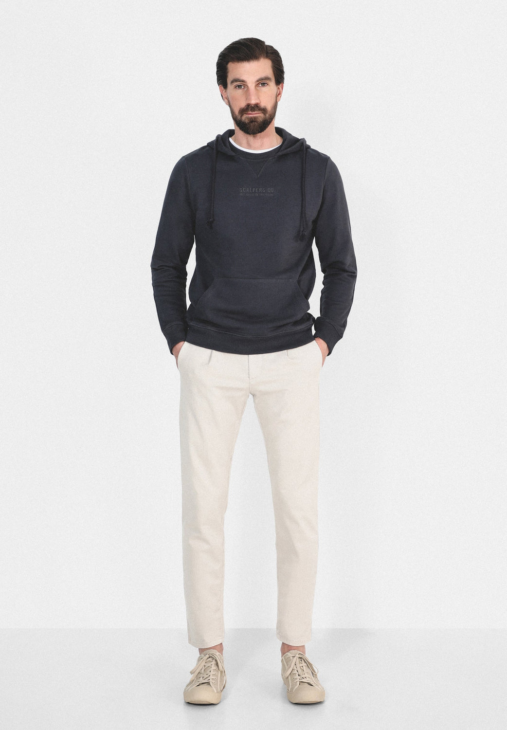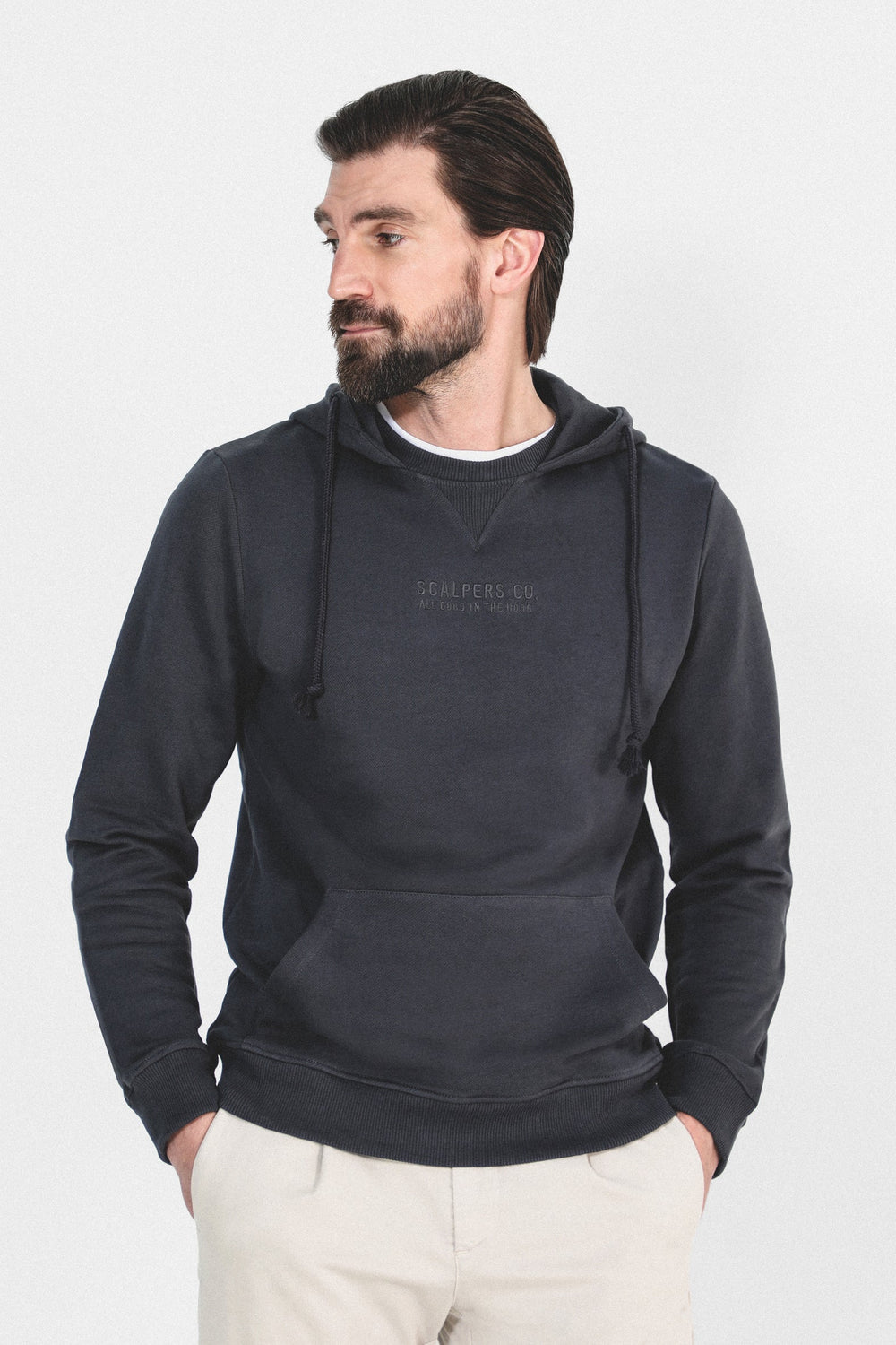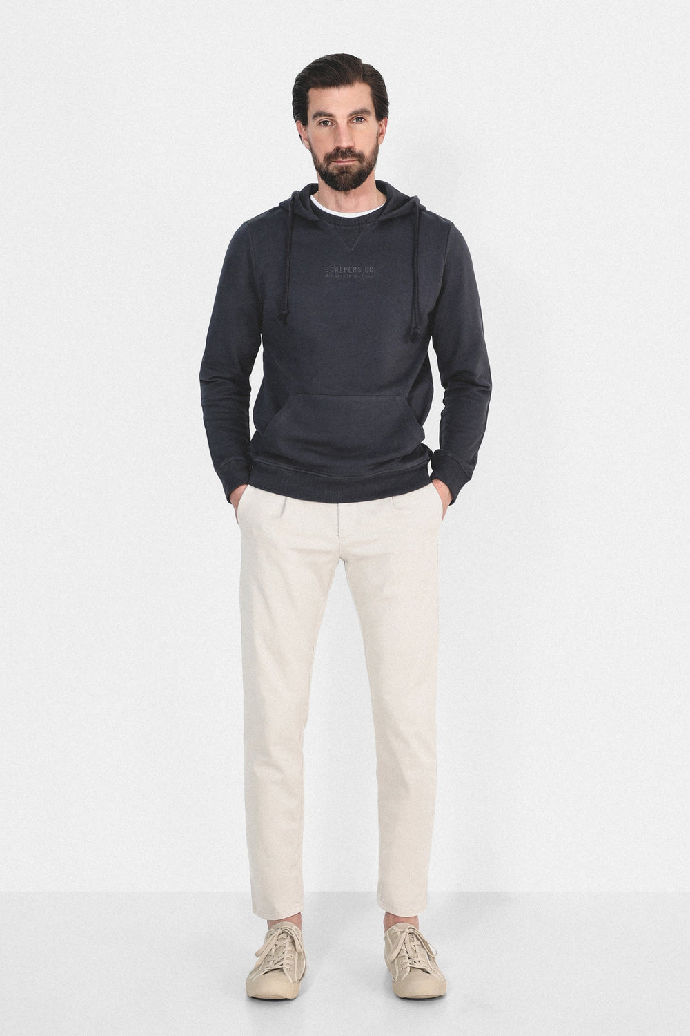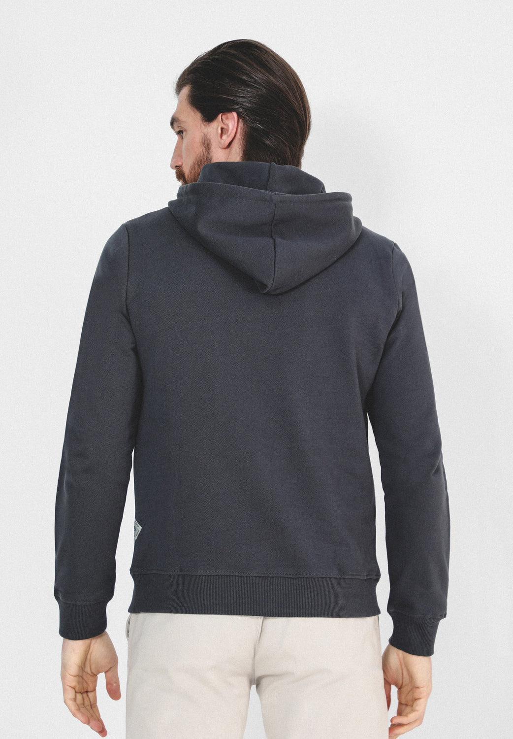 Sudadera confeccionada en tejido 100% algodón. Corte Regular Fit, cuello con capucha ajustable con cordón y manga larga. Bolsillo canguro y detalle de logo frontal.
