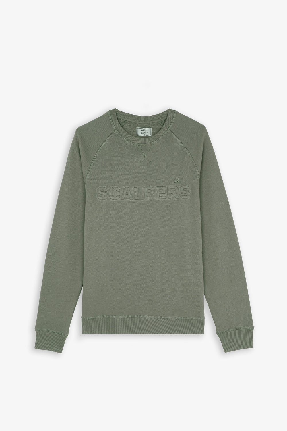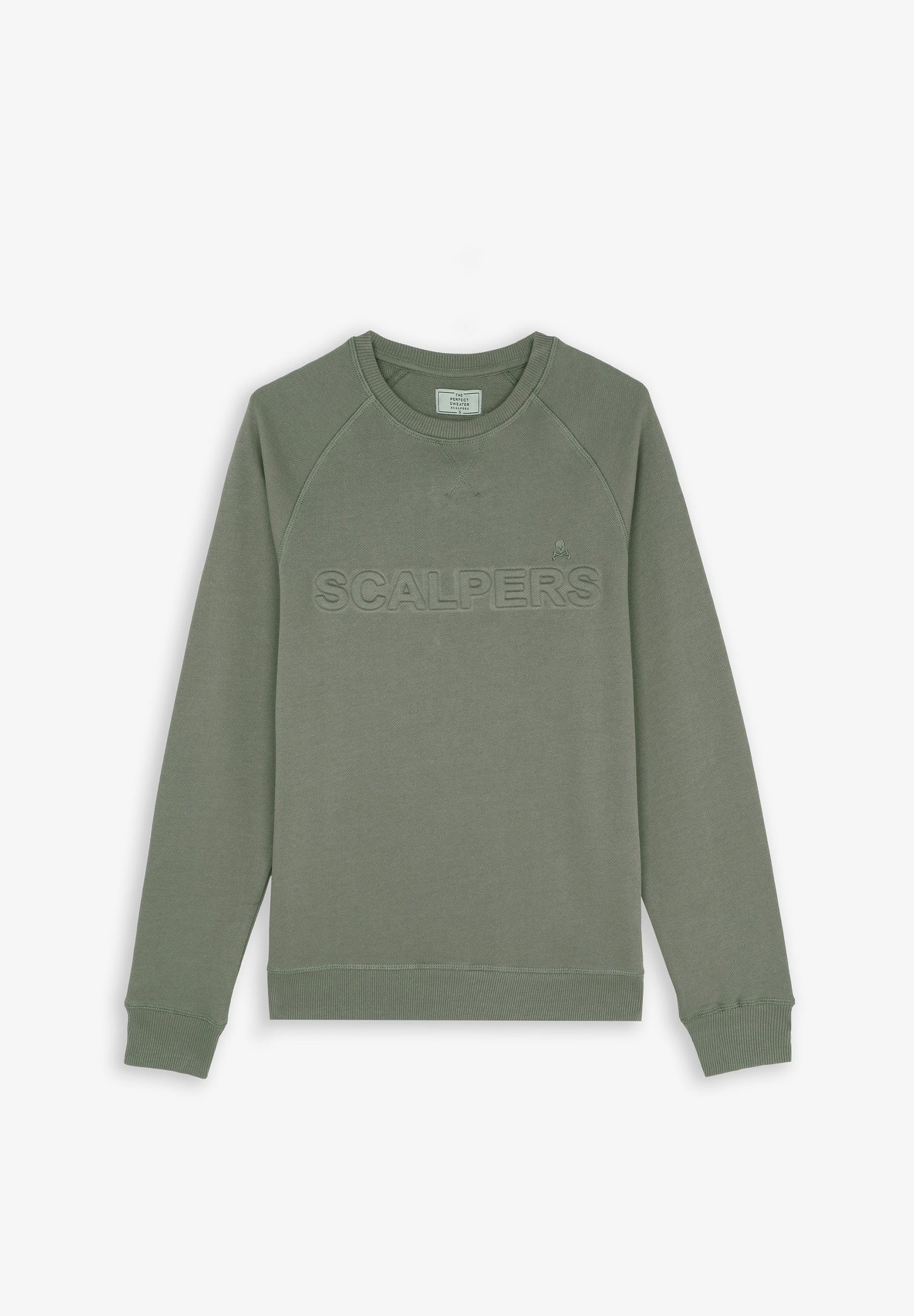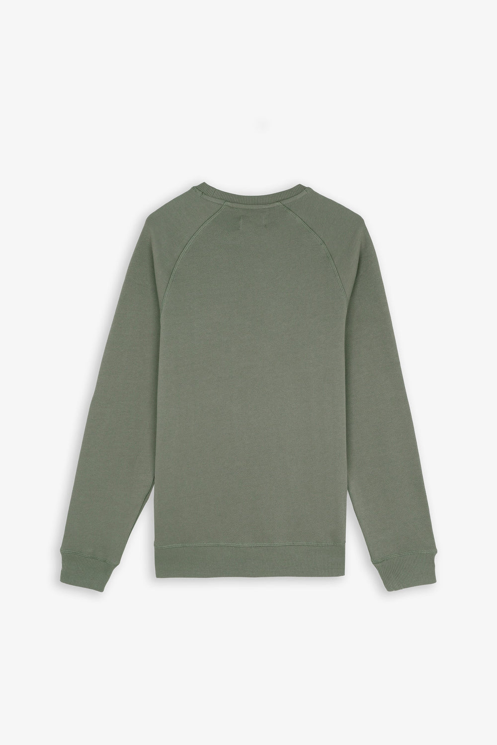 Sudadera confeccionada en tejido 100% algodón orgánico con lavado stone wash. Corte Regular Fit, cuello redondo y manga larga terminada en rib. Detalle de cosido en cruz en el cuello, etiqueta decorativa en puño y calavera bordada a tono en el pecho.