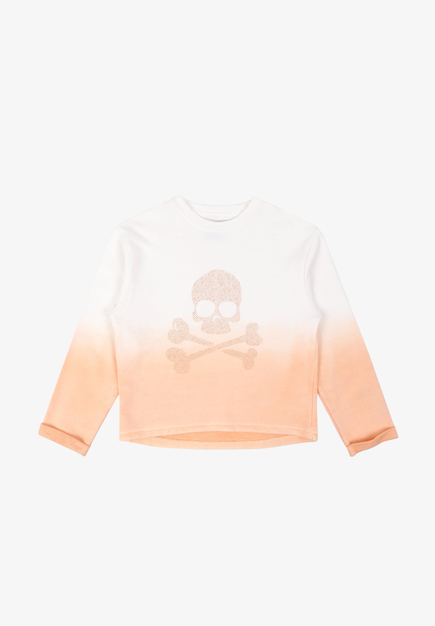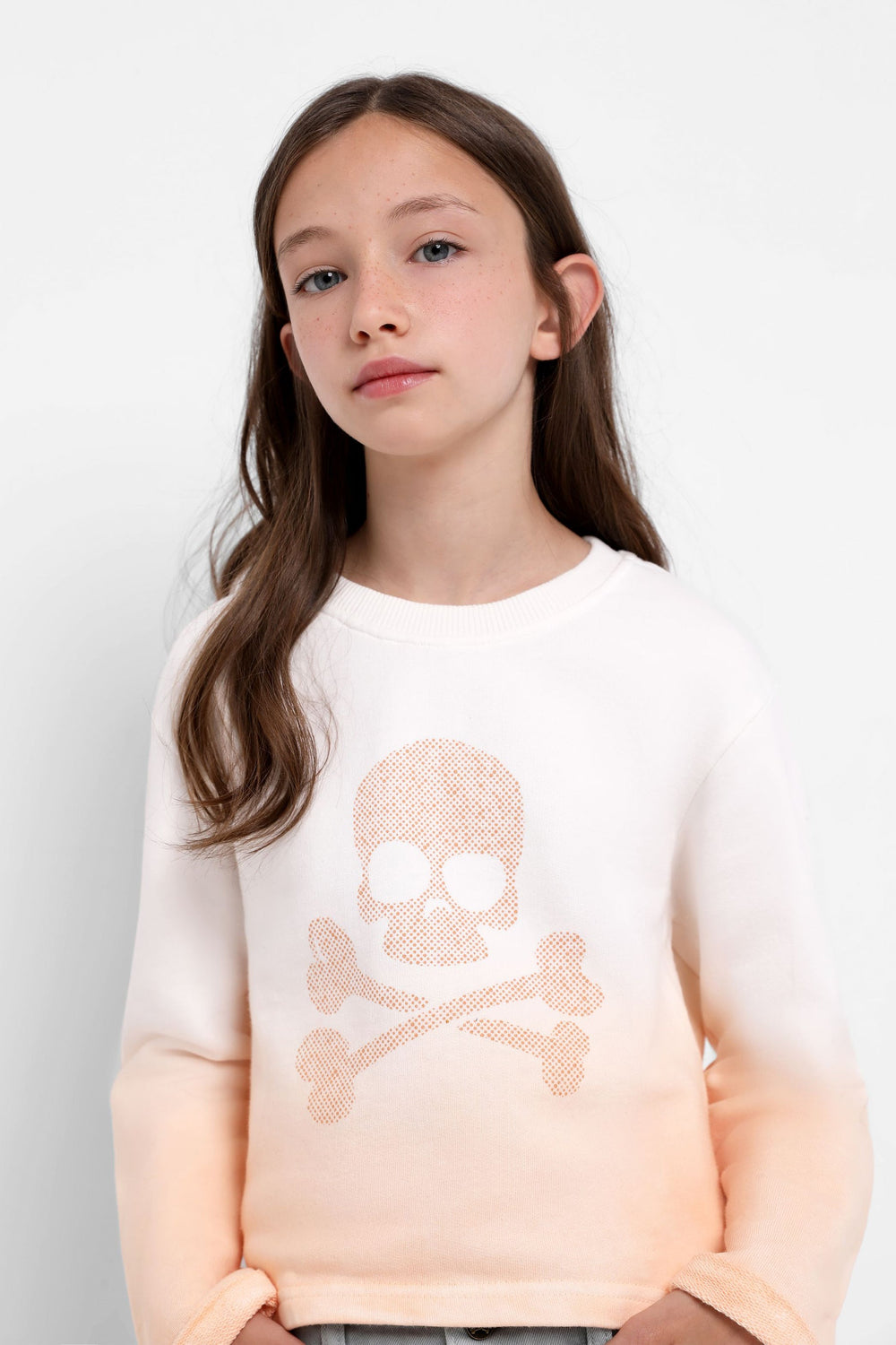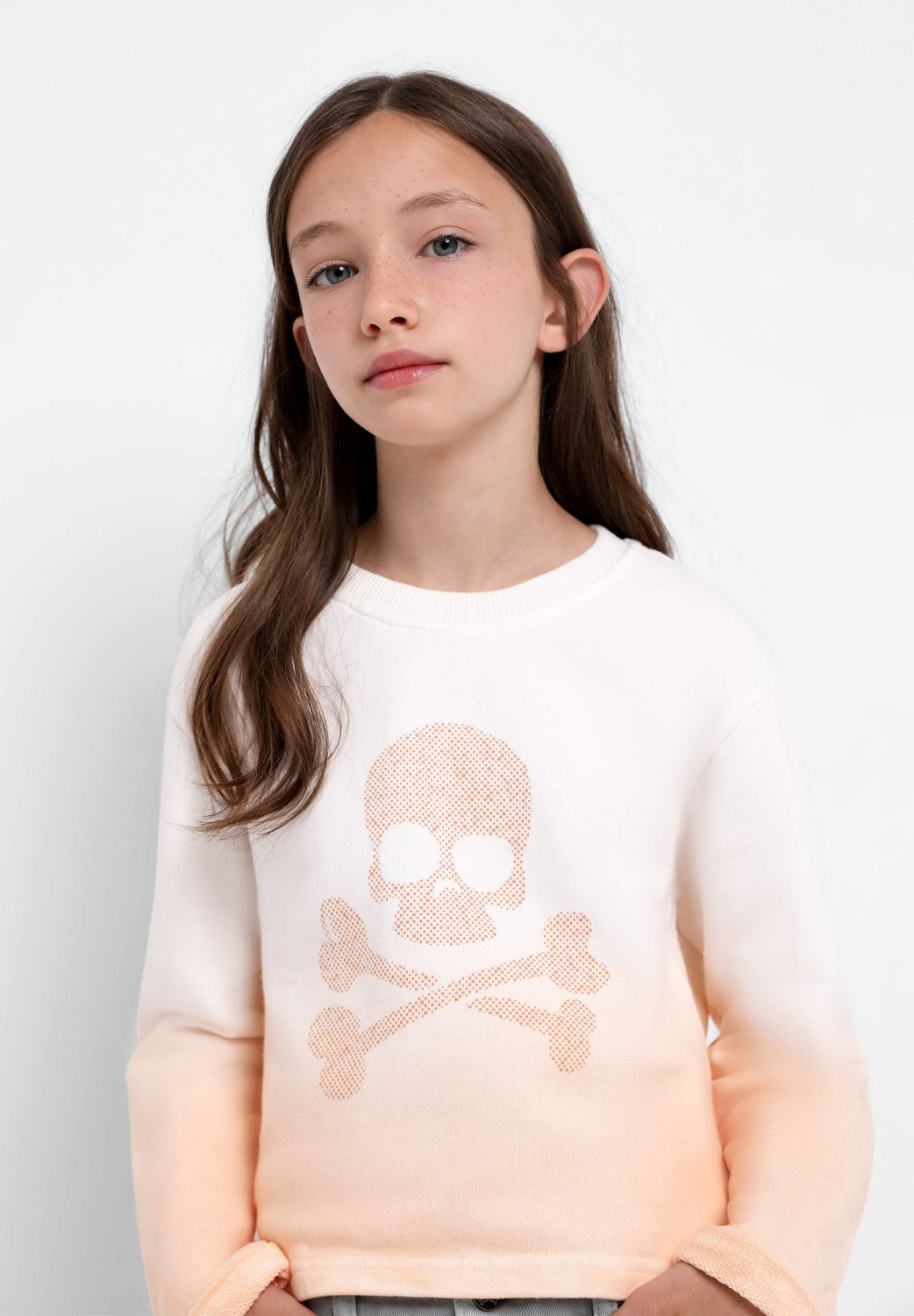Sudadera tie dye confeccionada en tejido 100% algodón orgánico. Corte Regular Fit, cuello redondo y manga larga. Detalle de print de calavera frontal.