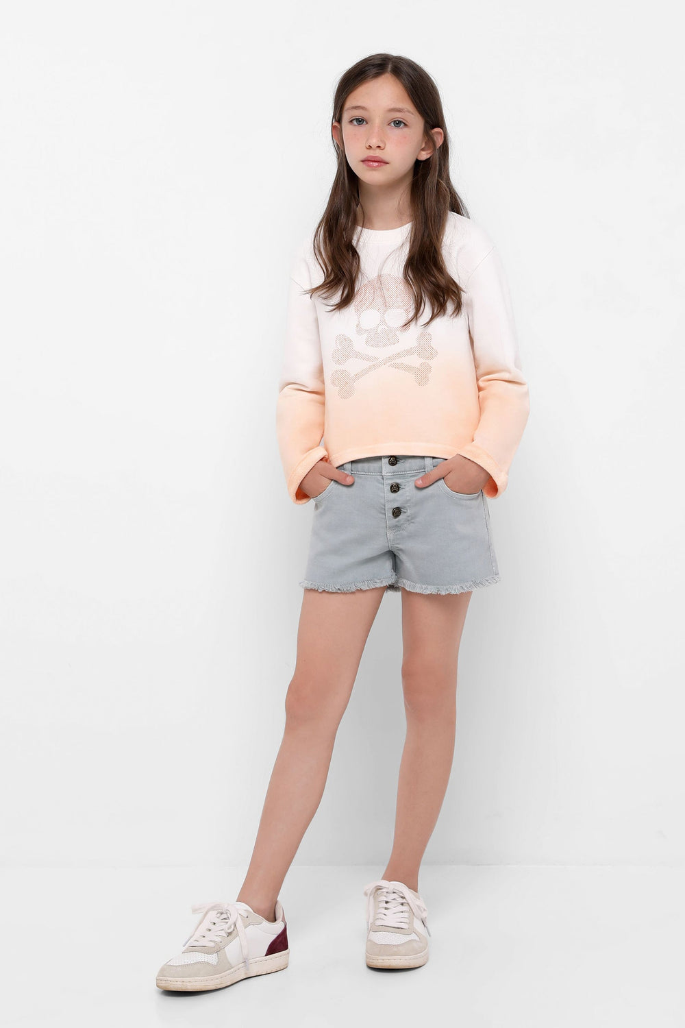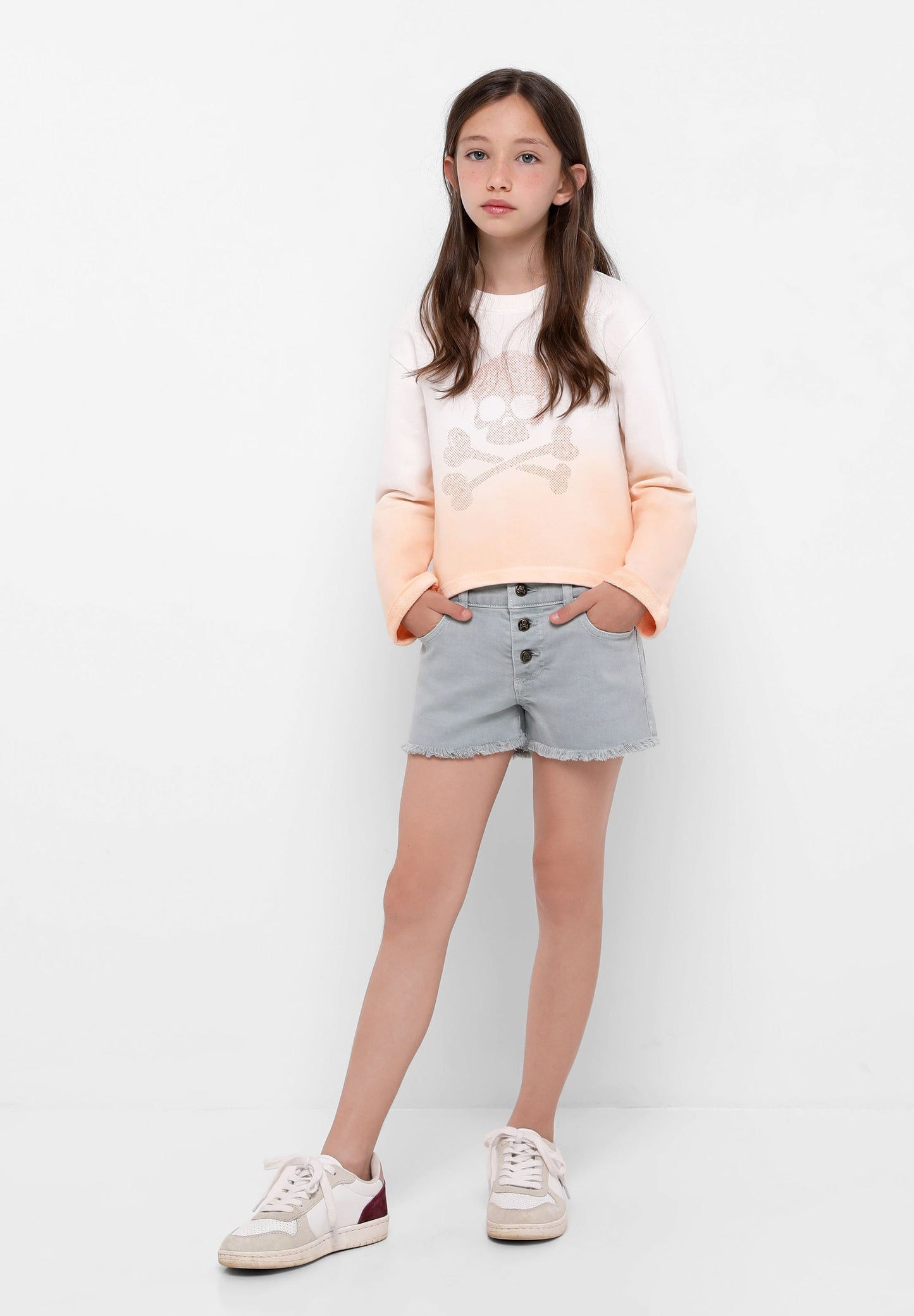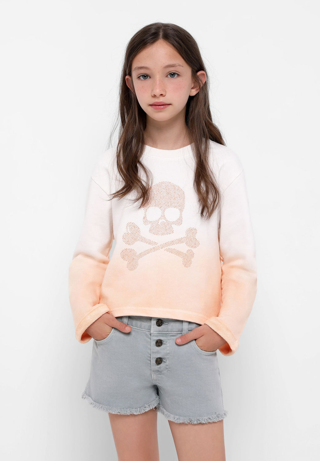 Sudadera tie dye confeccionada en tejido 100% algodón orgánico. Corte Regular Fit, cuello redondo y manga larga. Detalle de print de calavera frontal.