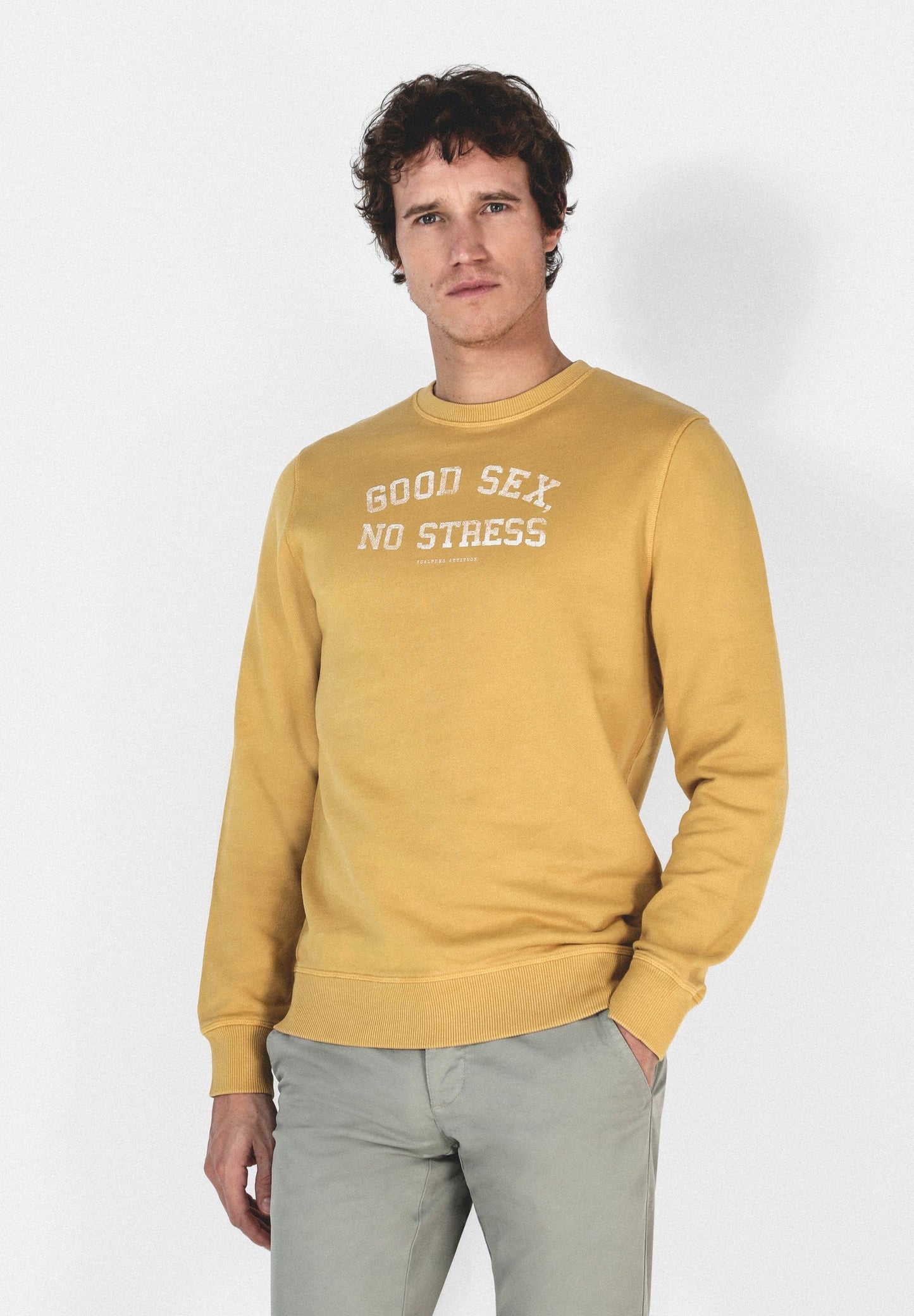 Sudadera confeccionada en tejido 100% algodón orgánico. Corte Regular Fit, cuello redondo y manga larga. Detalle de print frontal desgastado.