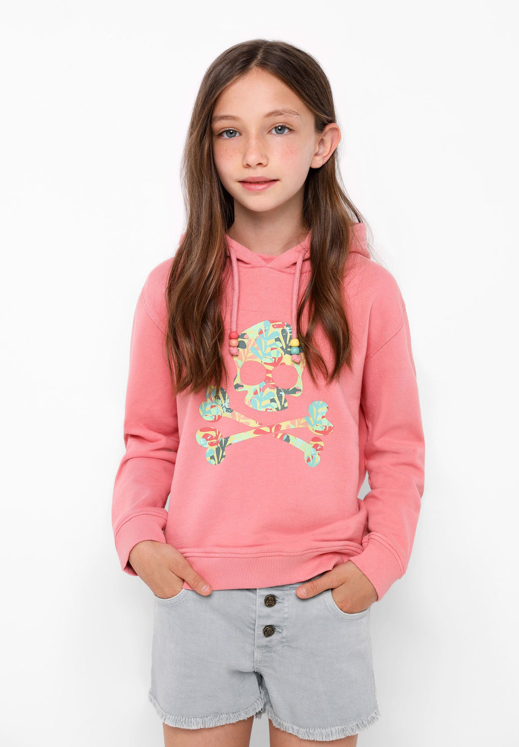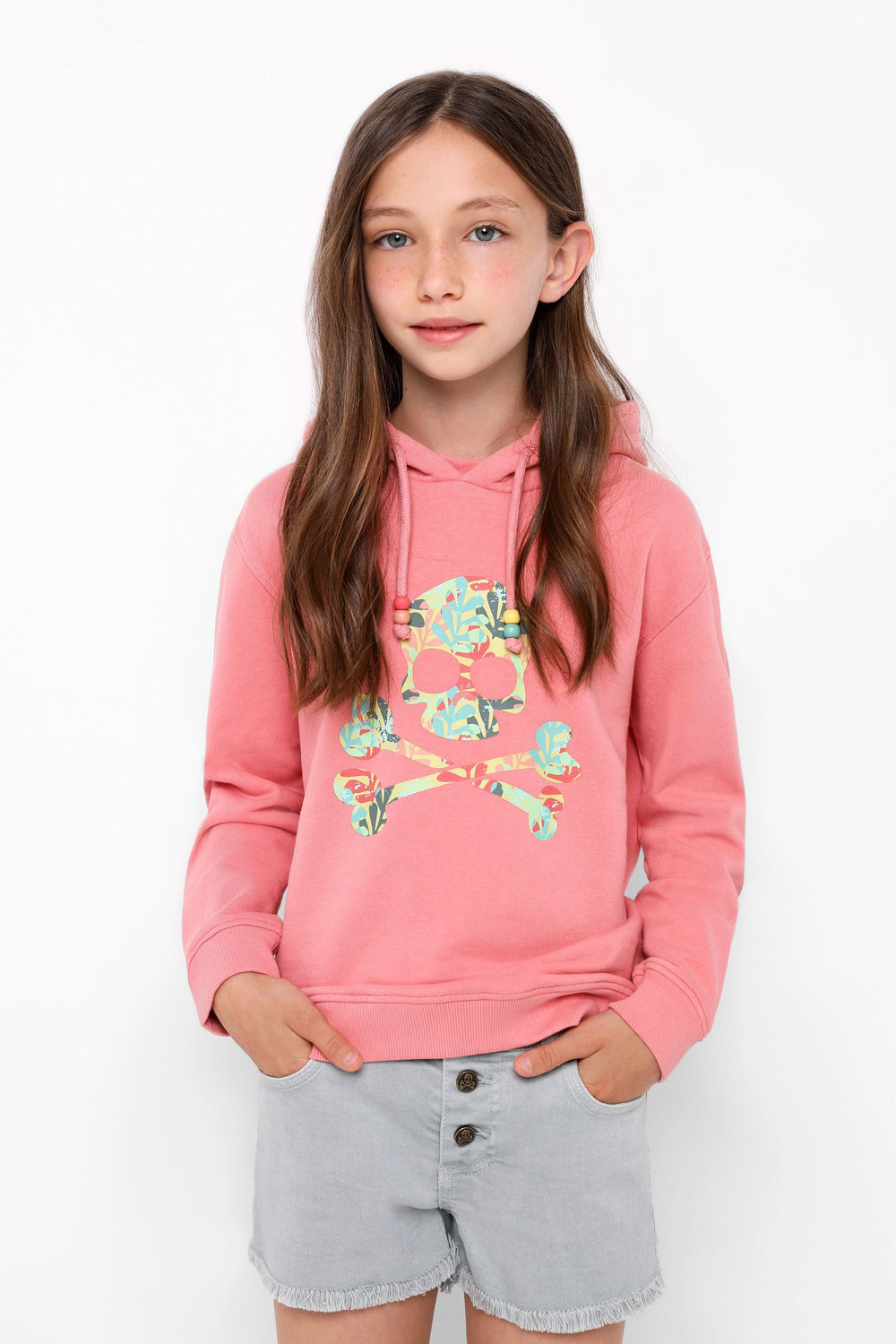 Sudadera confeccionada en tejido 100% algodón orgánico. Corte Regular Fit, cuello con capucha ajustable con cordón y manga larga. Detalle calavera frontal.