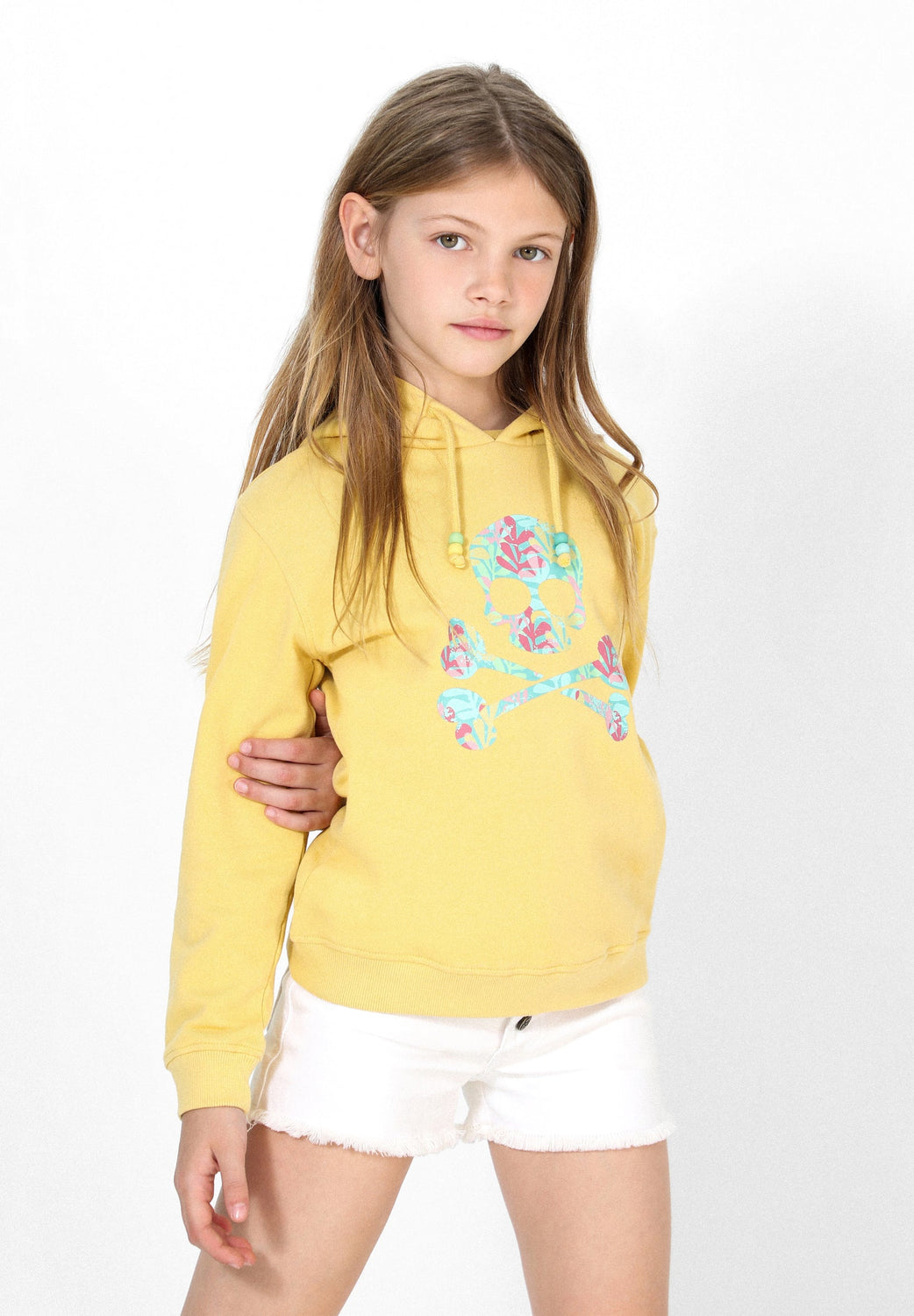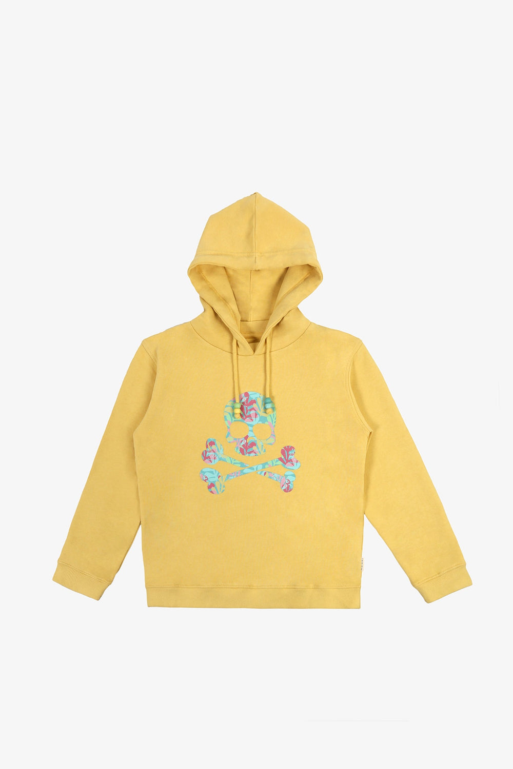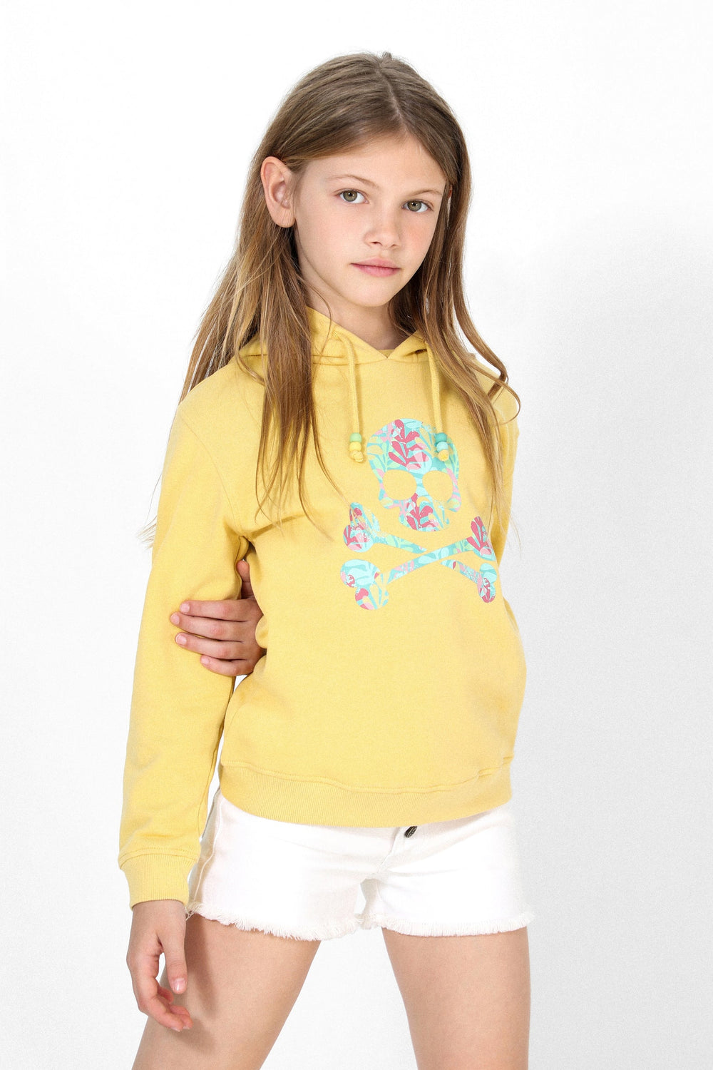 Sudadera confeccionada en tejido 100% algodón orgánico. Corte Regular Fit, cuello con capucha ajustable con cordón y manga larga. Detalle calavera frontal.