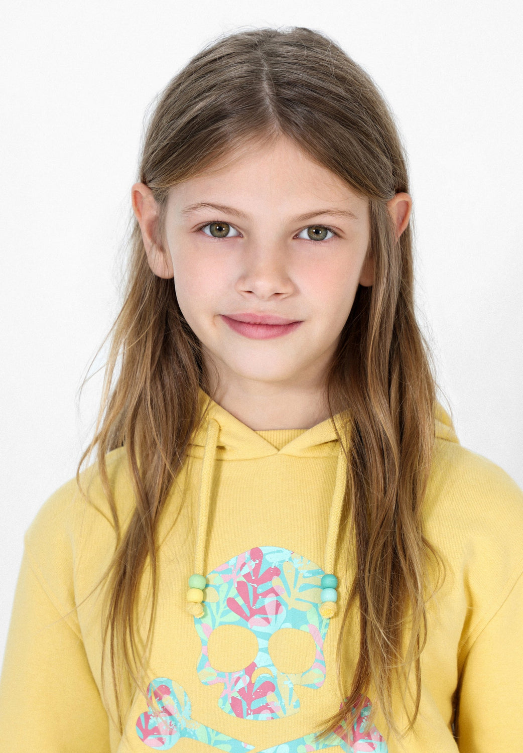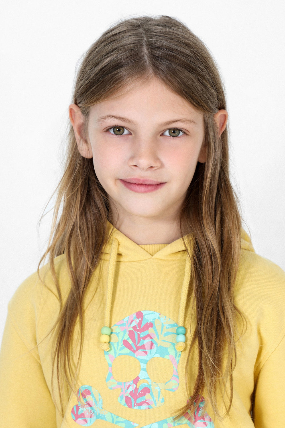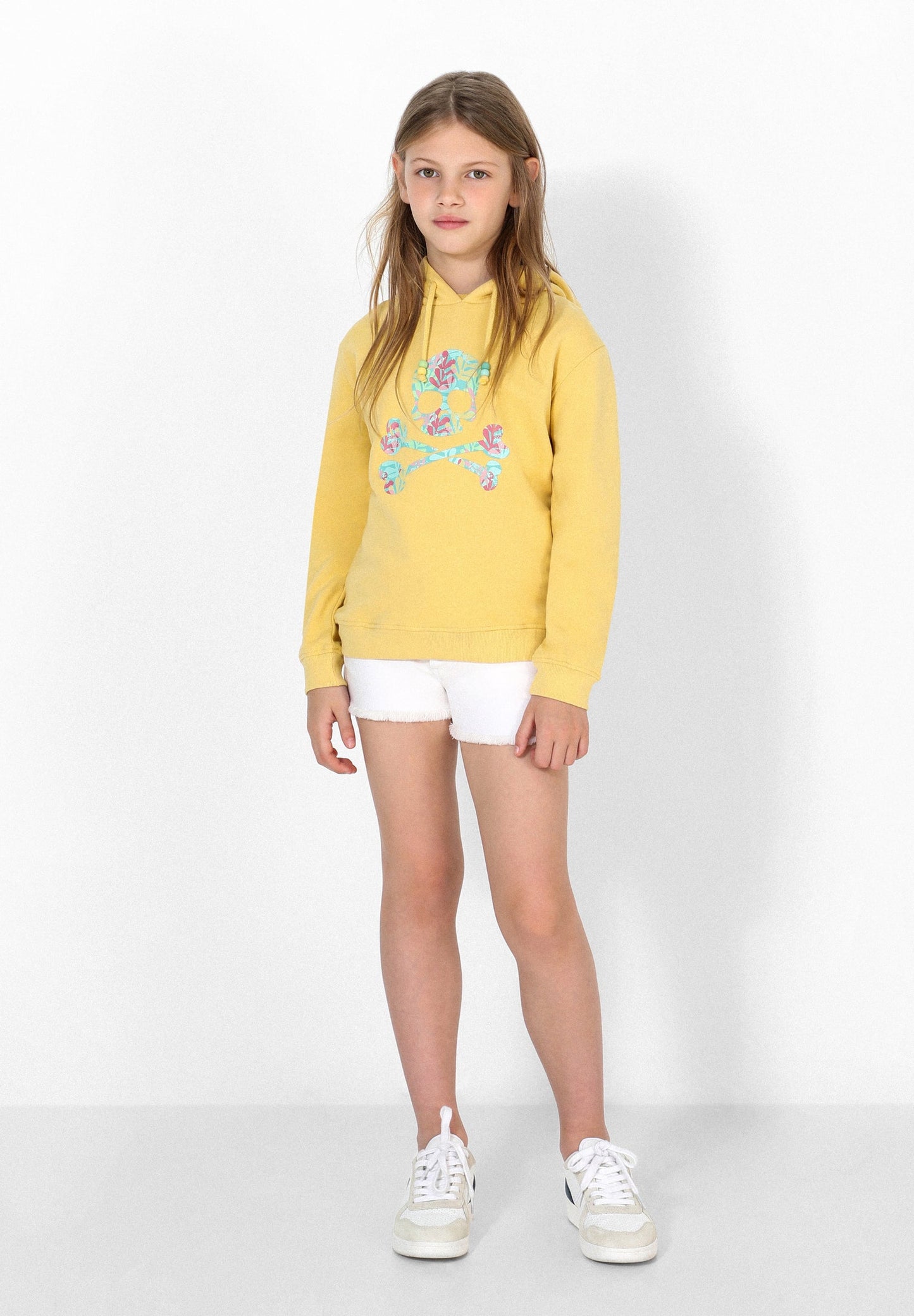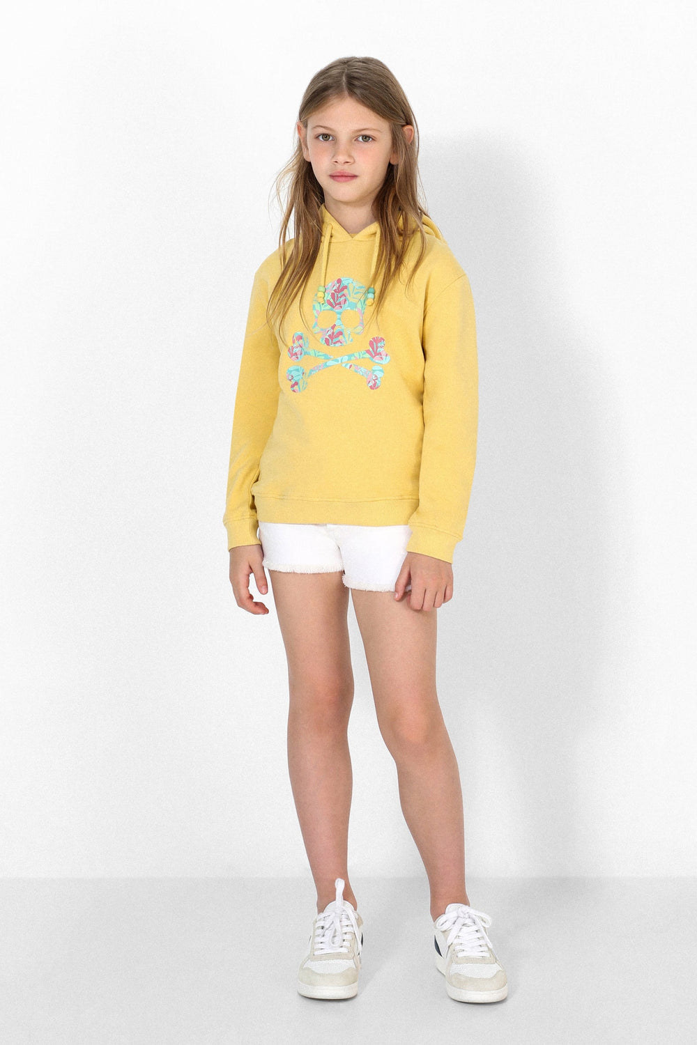 Sudadera confeccionada en tejido 100% algodón orgánico. Corte Regular Fit, cuello con capucha ajustable con cordón y manga larga. Detalle calavera frontal.