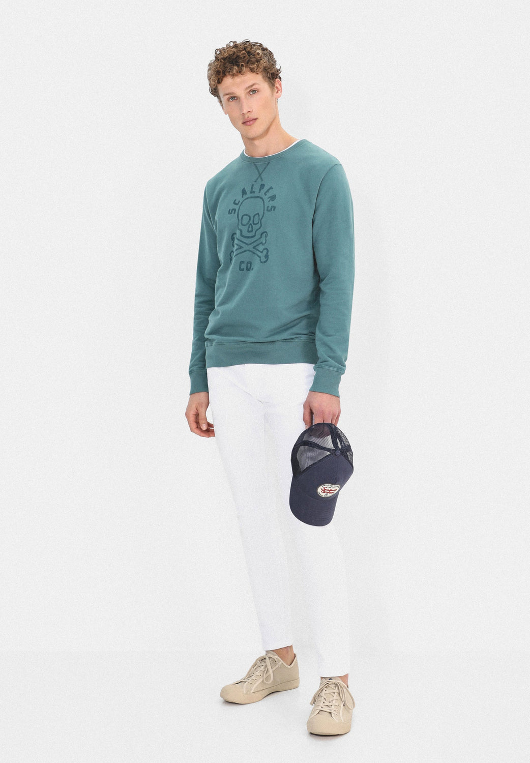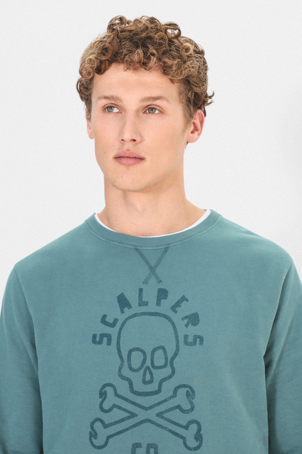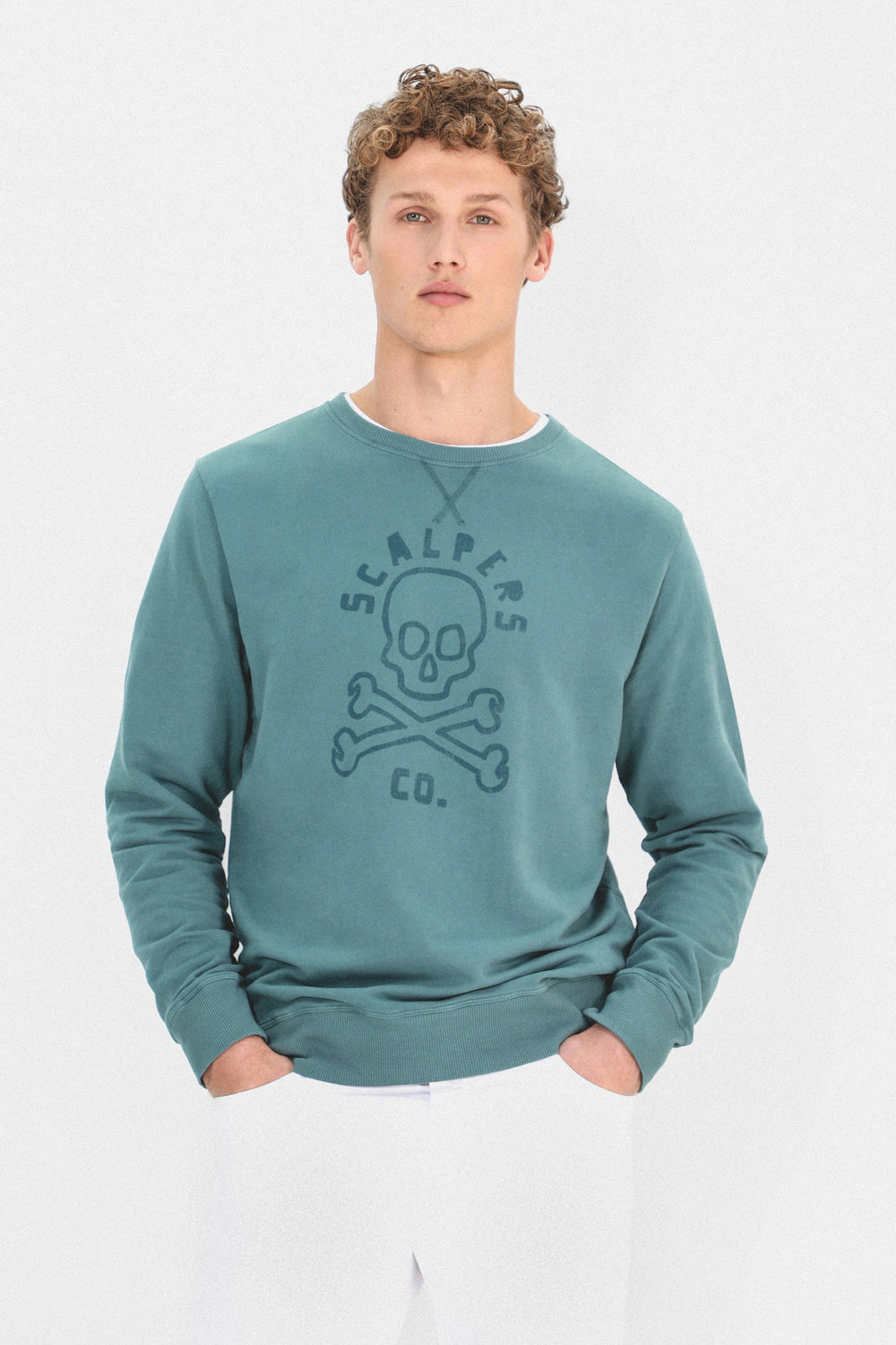 Sudadera confeccionada en tejido 100% algodón orgánico. Corte Regular Fit, cuello redondo y manga larga. Detalle de print de logo y calavera frontal.