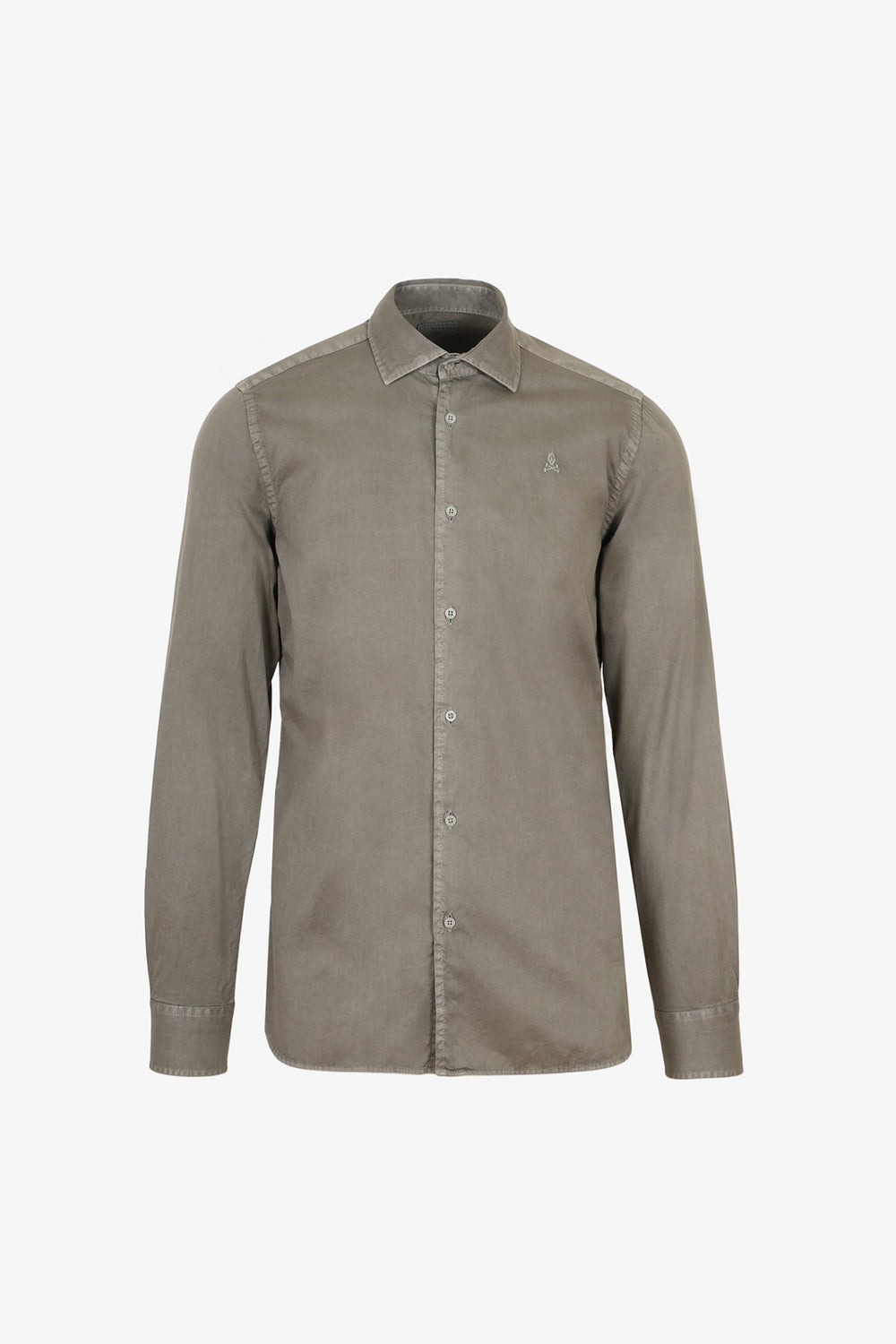Camisa confeccionada en tejido 100% algodón. Corte Regular Fit, cuello italiano y cierre con botones sin tapeta. Manga larga terminada en puño simple. Detalle de calavera bordada en el pecho.