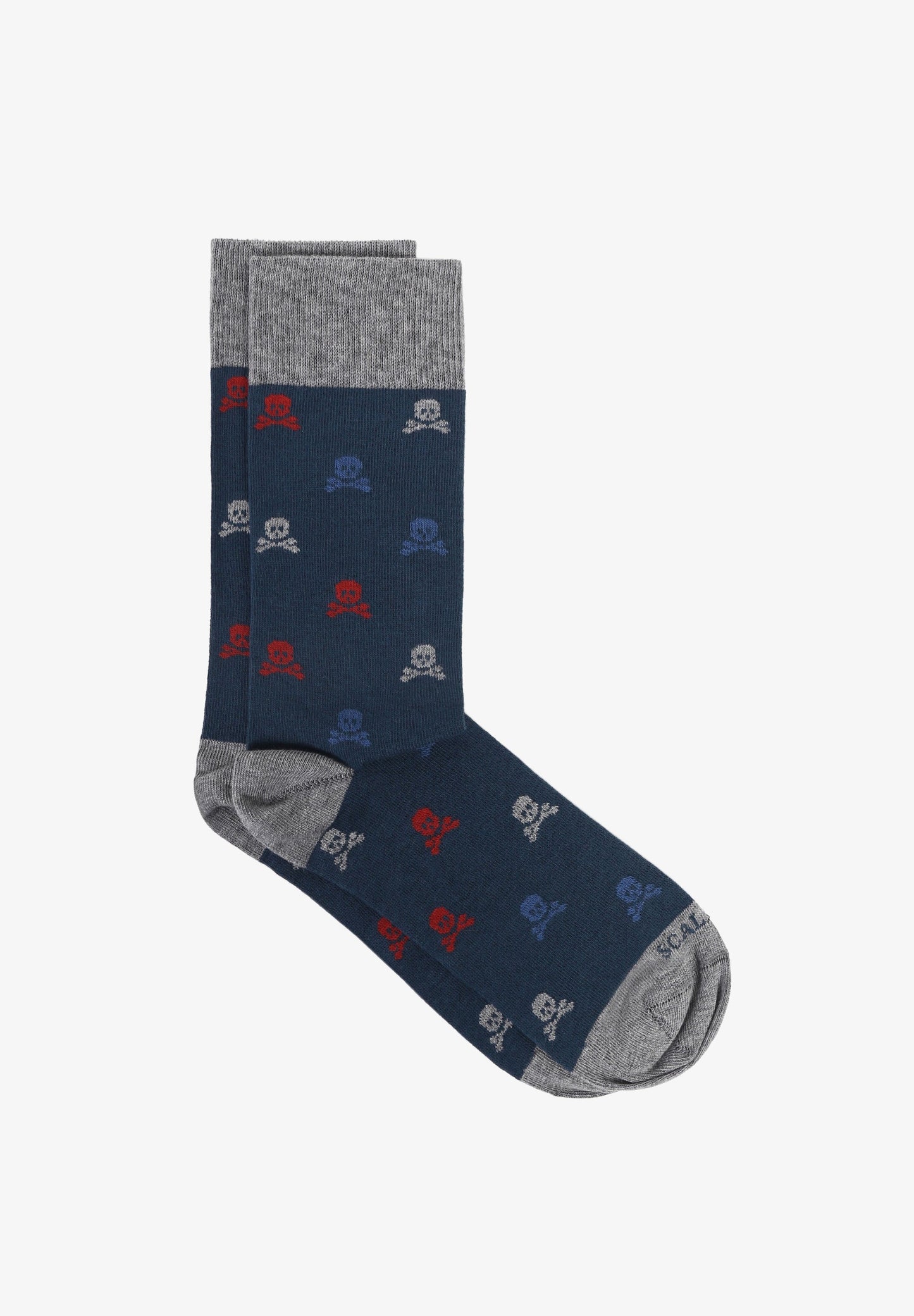 Calcetines con print de calaveras all over confeccionados en tejido de algodón elásticos. Caña media.