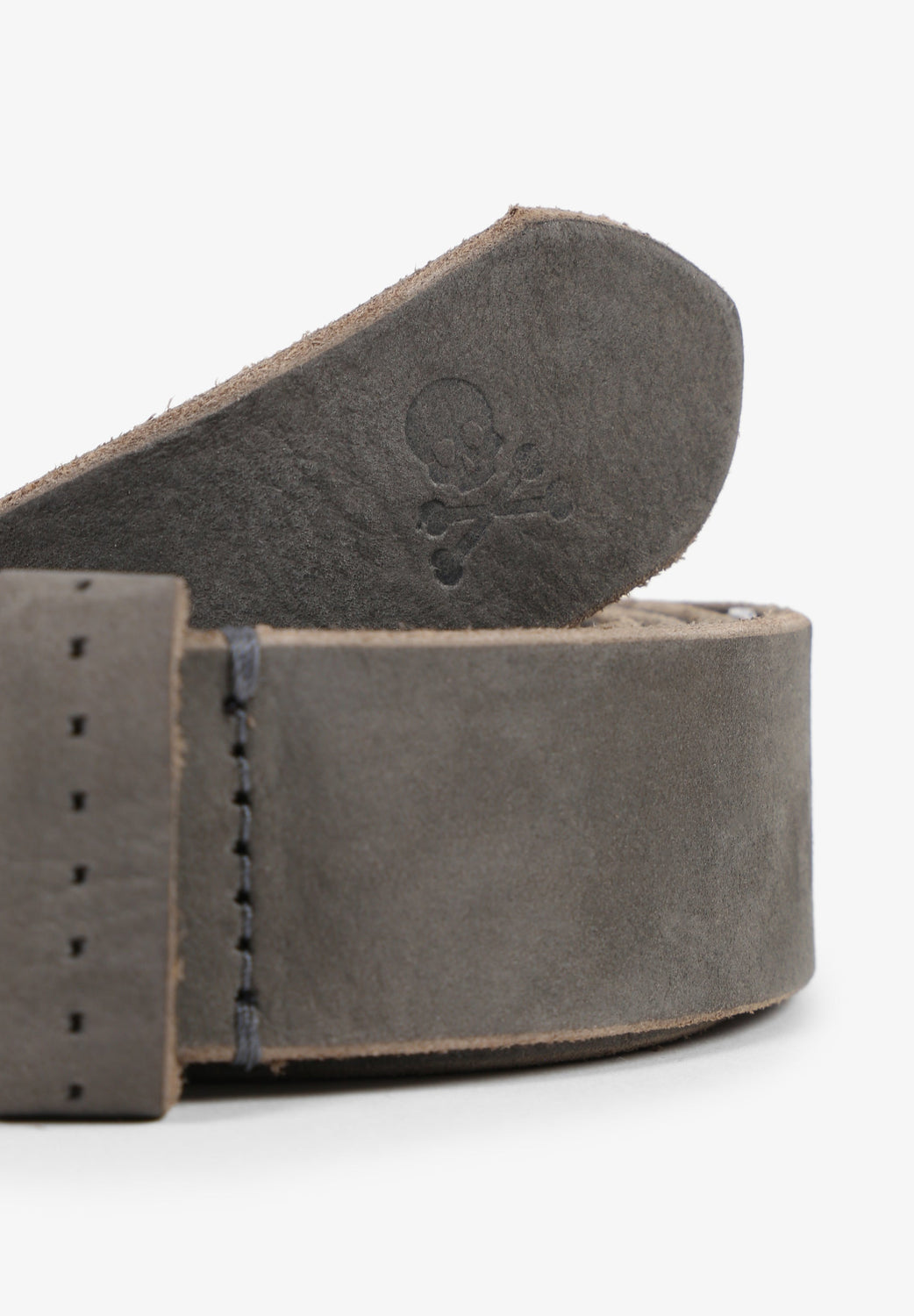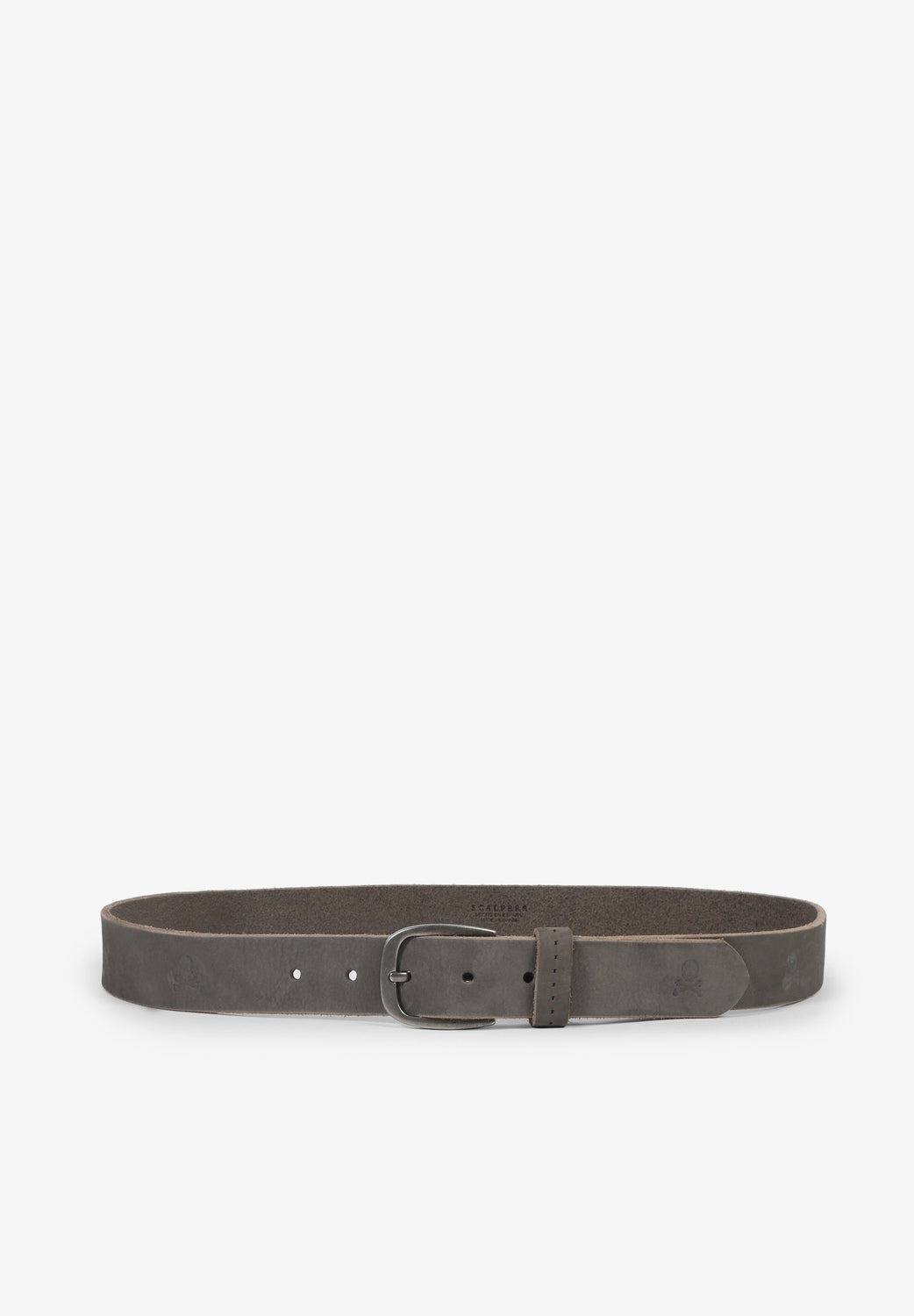 Cinturón con calaveras all over confeccionado en 100% piel vacuno. Cierre con hebilla metálica.