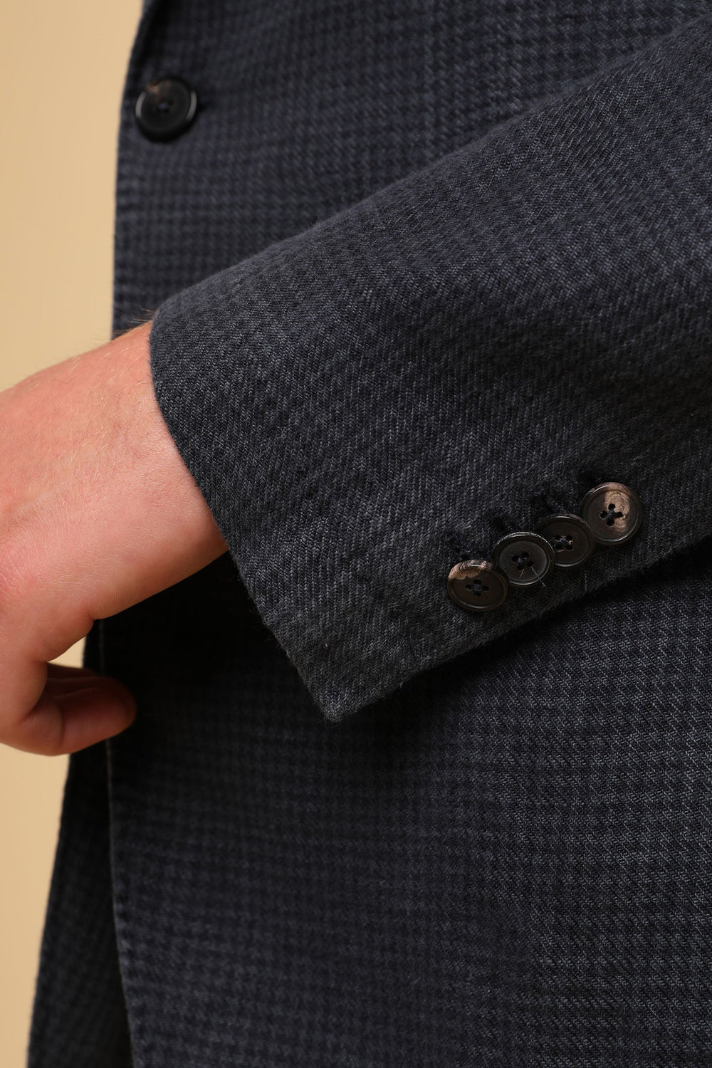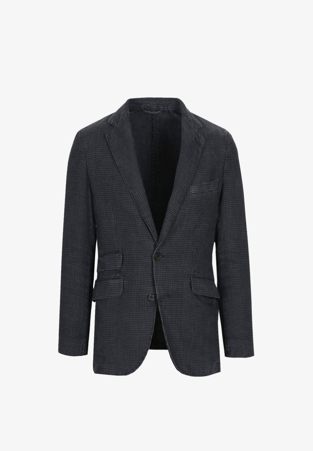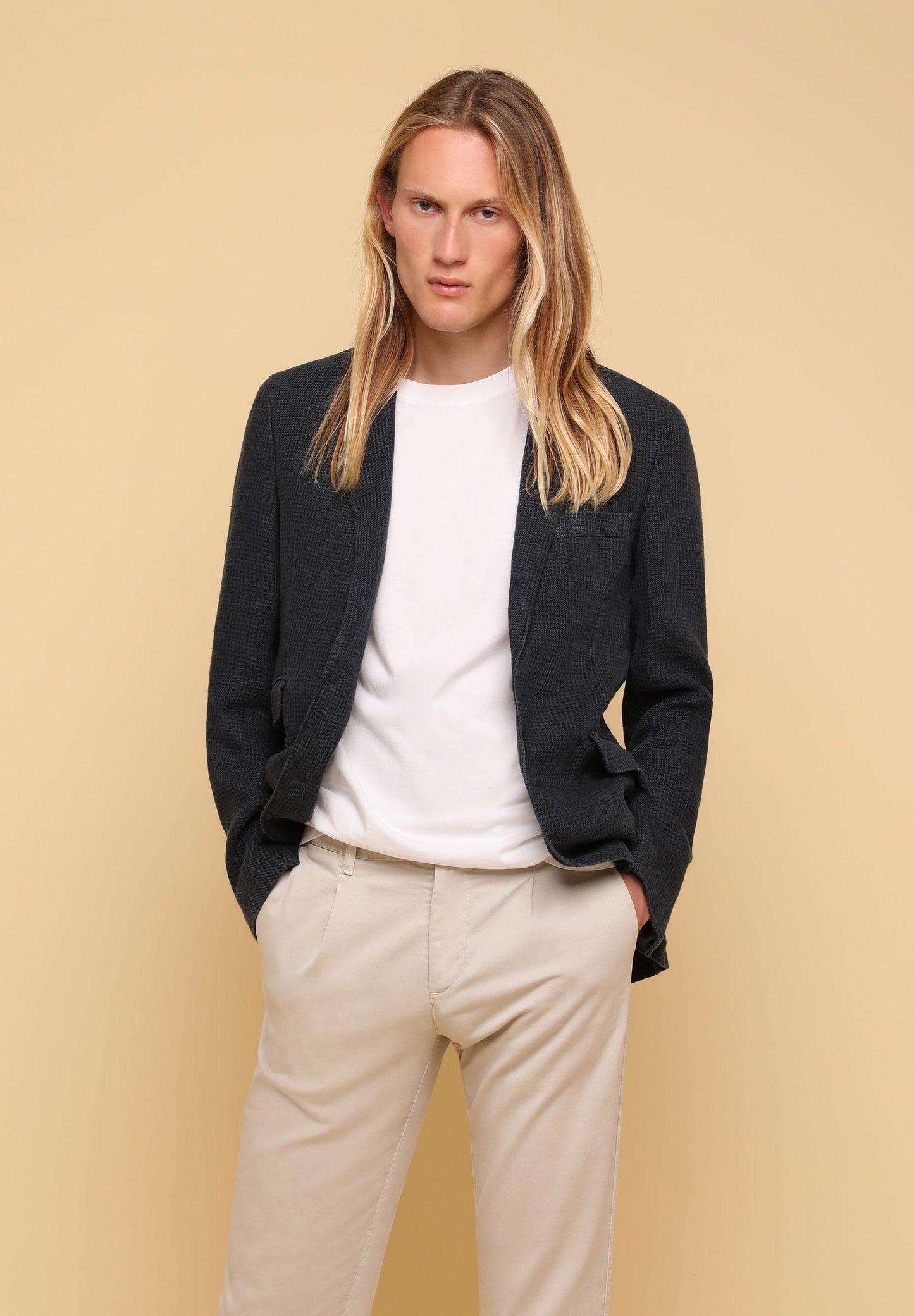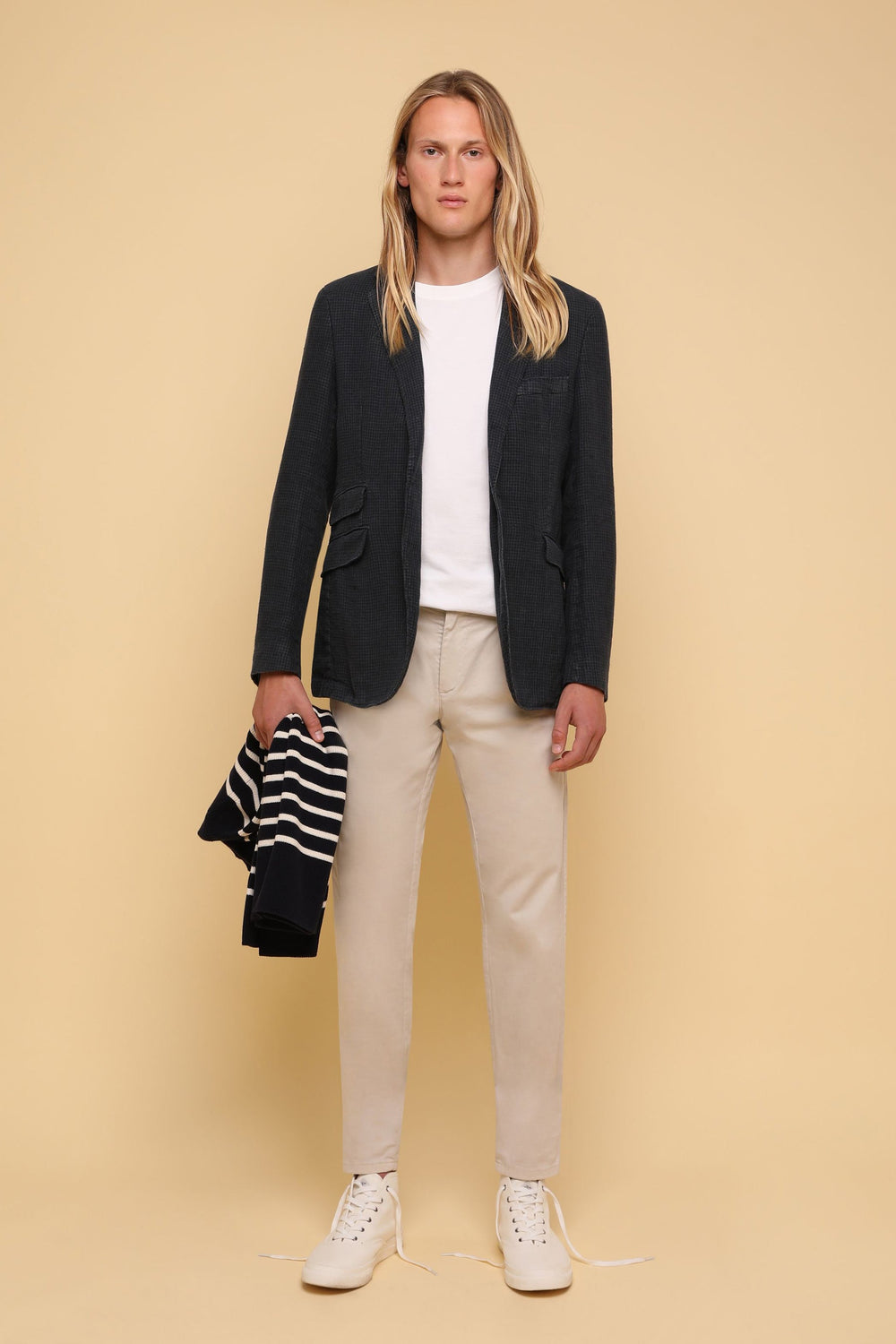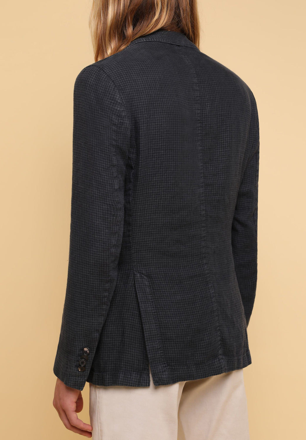 Americana confeccionada en tejido 100% lino. Corte Regular Fit, cuello con solapas de muesca y cierre con botones. Manga larga terminada en puño con botones y bolsillo insertado en el pecho y con tapeta en el bajo.