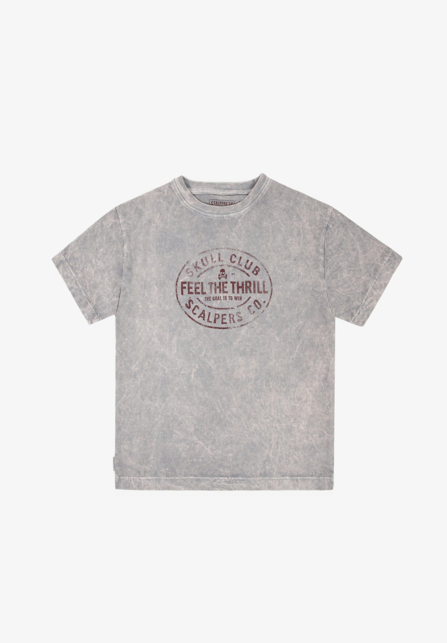 Camiseta con print delantero confeccionada en tejido 100% algodón orgánico lavada. Corte Regular Fit, cuello redondo y manga corta.