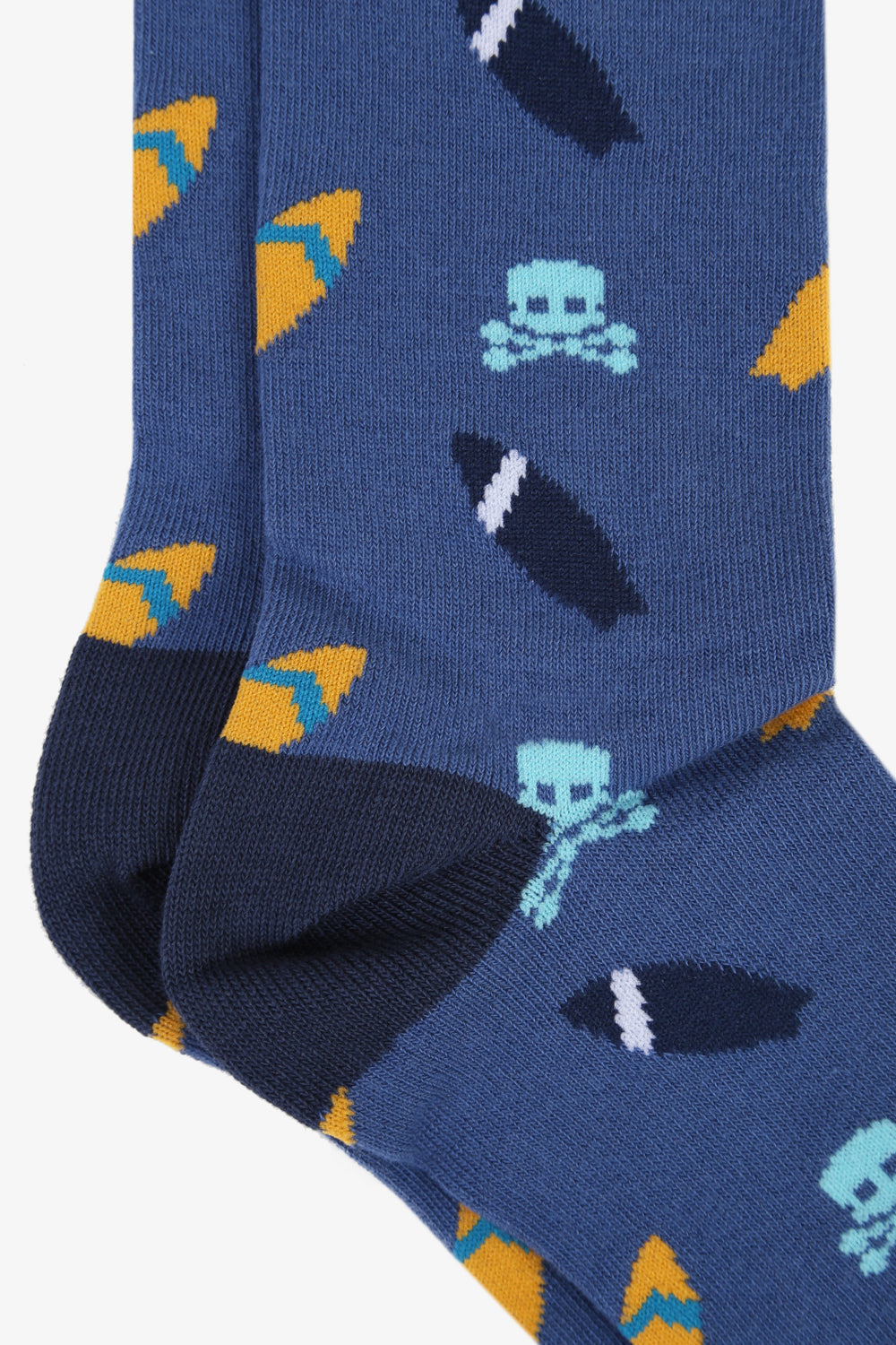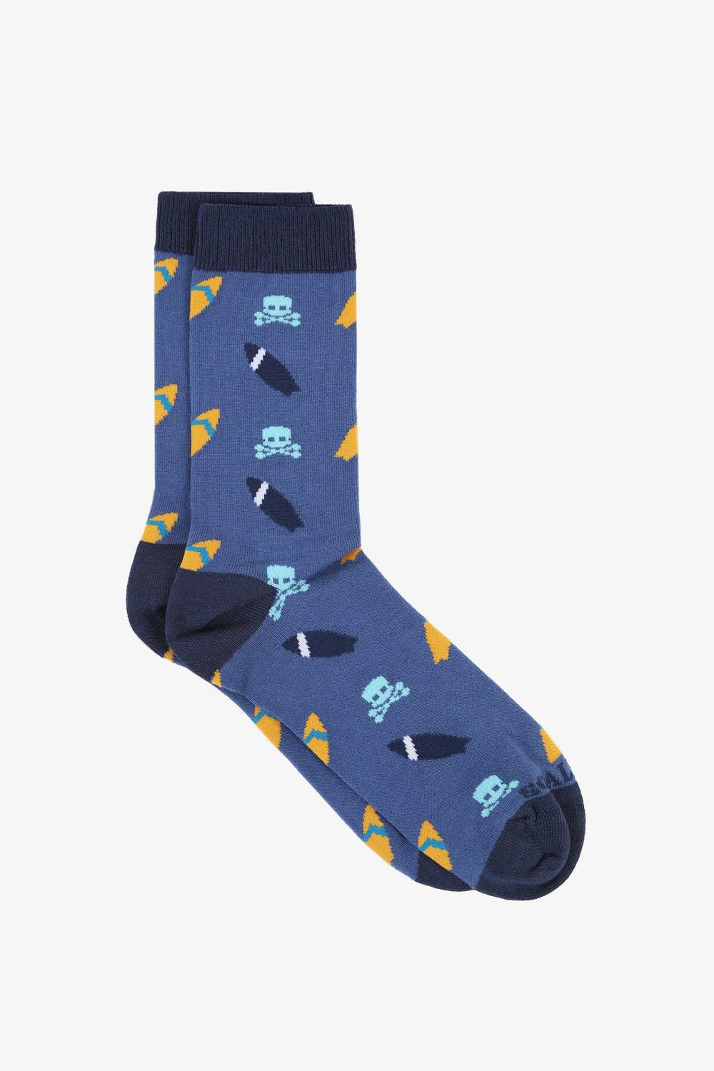 Calcetines con print de surf confeccionados en tejido de algodón ligeramente elásticos. Caña corta y detalles a contraste.