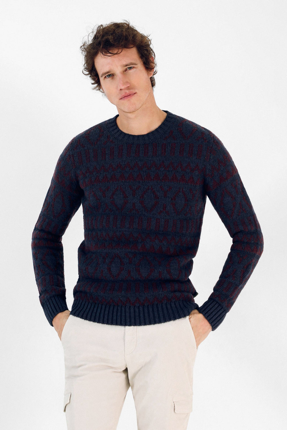Jersey con motivos confeccionado en mezcla de lana. Corte Slim Fit, cuello redondo y manga larga.