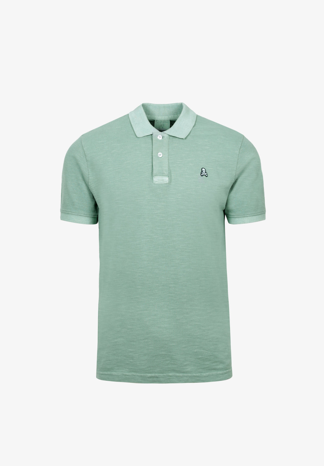 Polo confeccionado en tejido 100% algodón orgánico flamé. Corte Regular Fit, cuello clásico y cierre con botones. Manga corta y detalle de parche de calavera bordado.