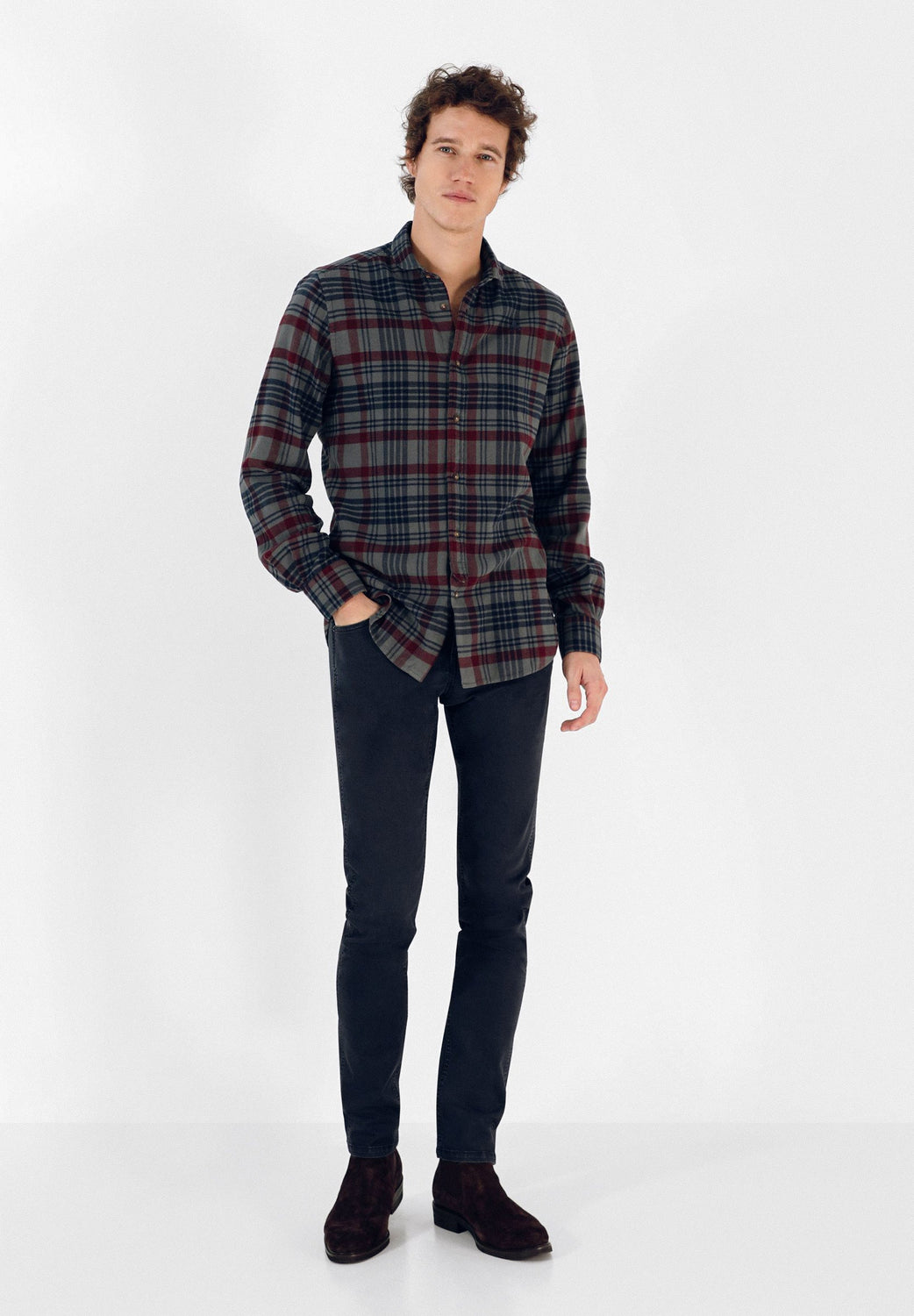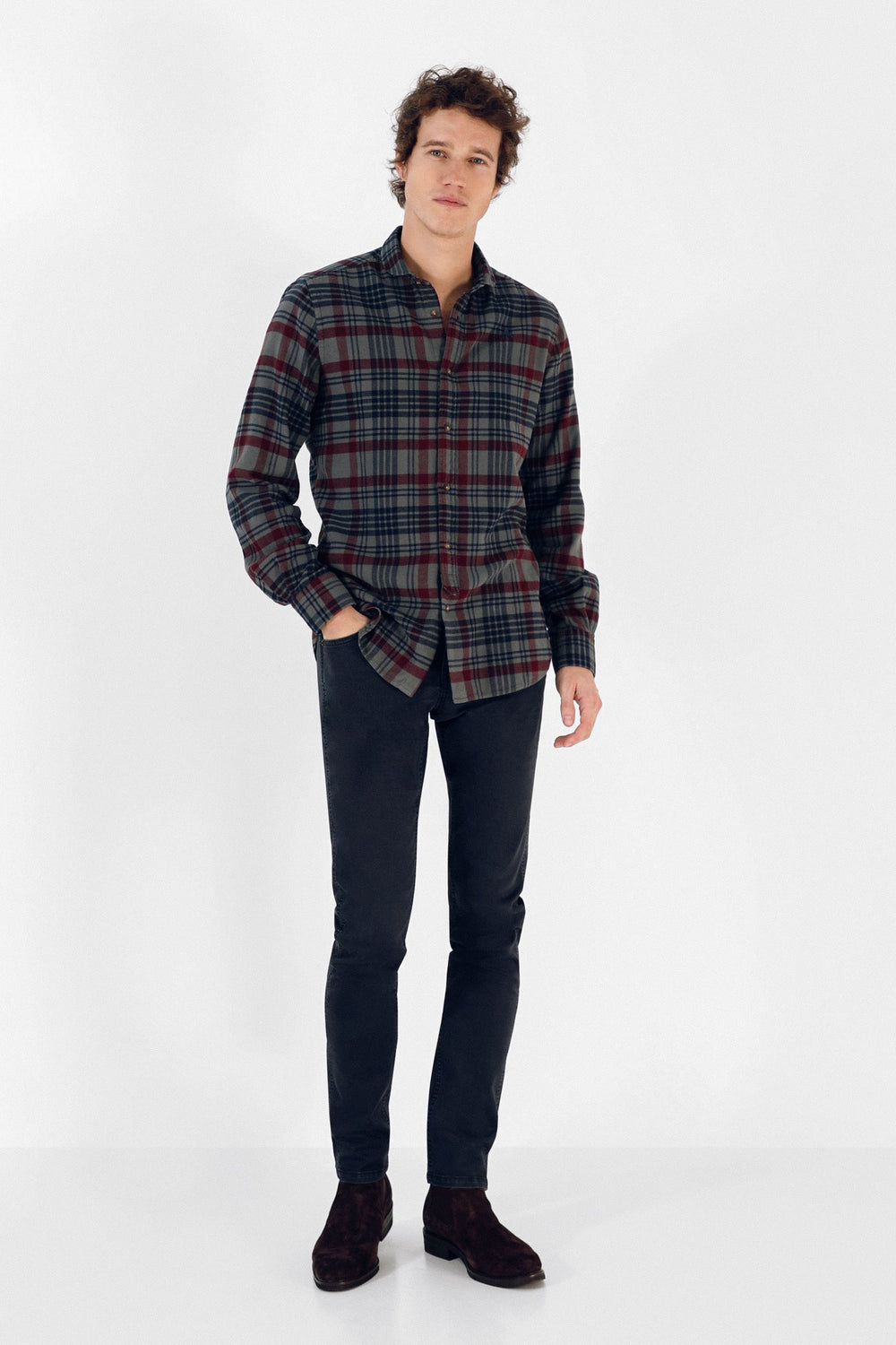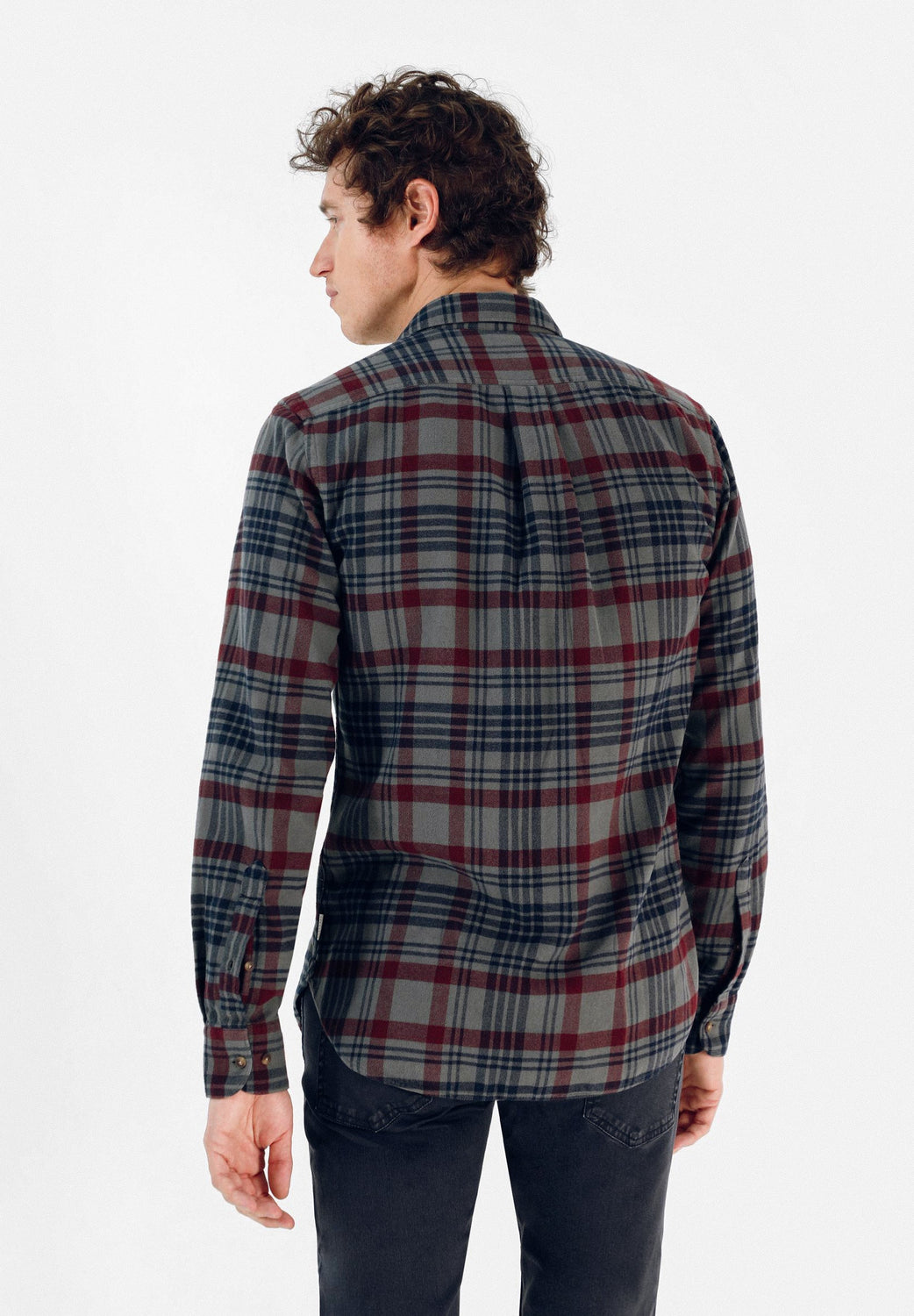 Camisa de cuadros confeccionada en tejido de franela. Corte Regular Fit, cuello redondo y cierre con botones. Manga larga terminada en puño.