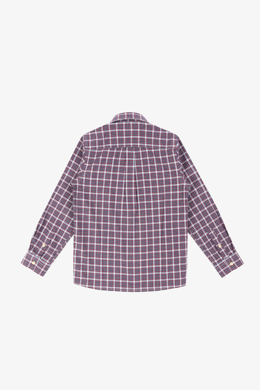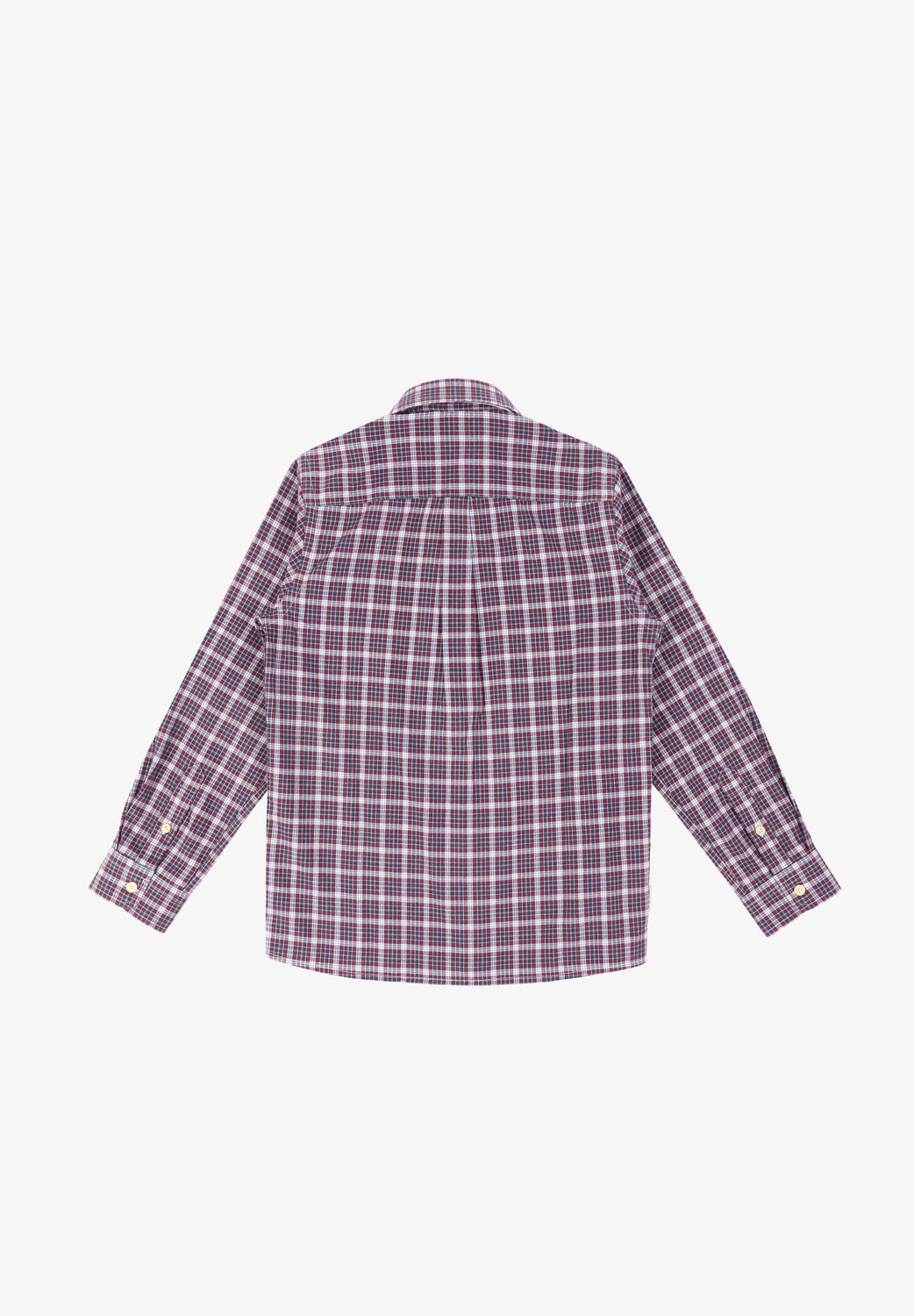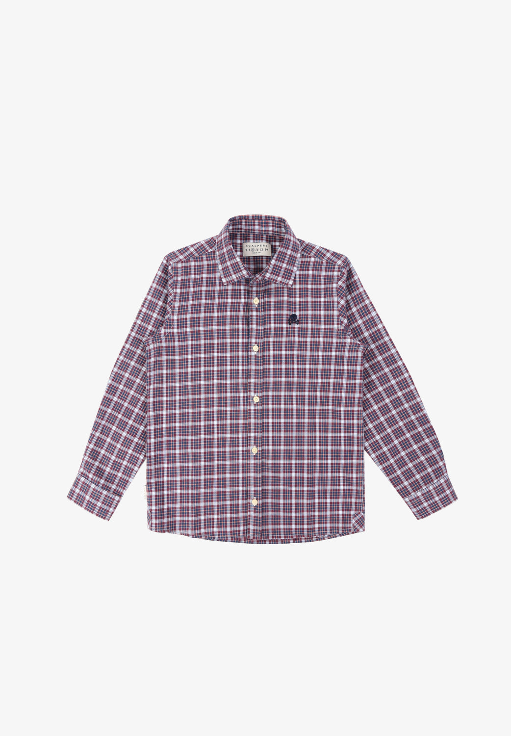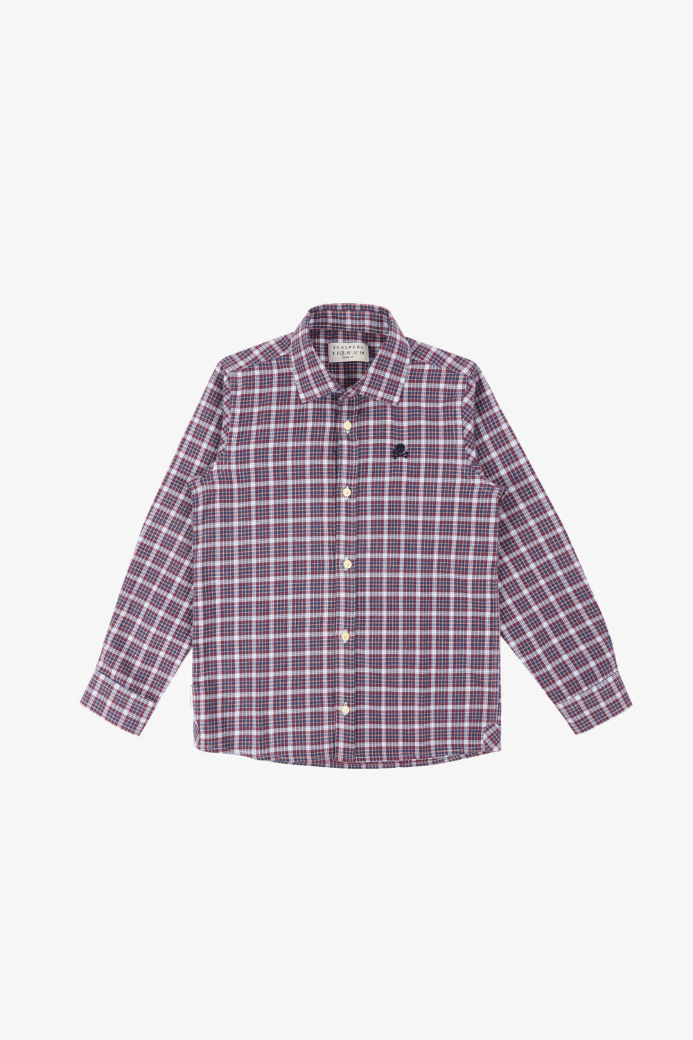 Camisa de cuadros confeccionada en tejido 100% algodón. Corte Regular Fit, cuello italiano y cierre con botones. Manga larga terminada en puño con botones y calavera a contraste.