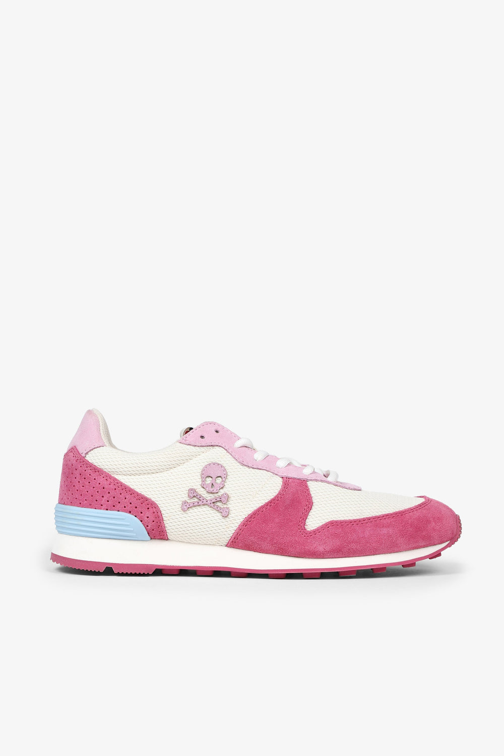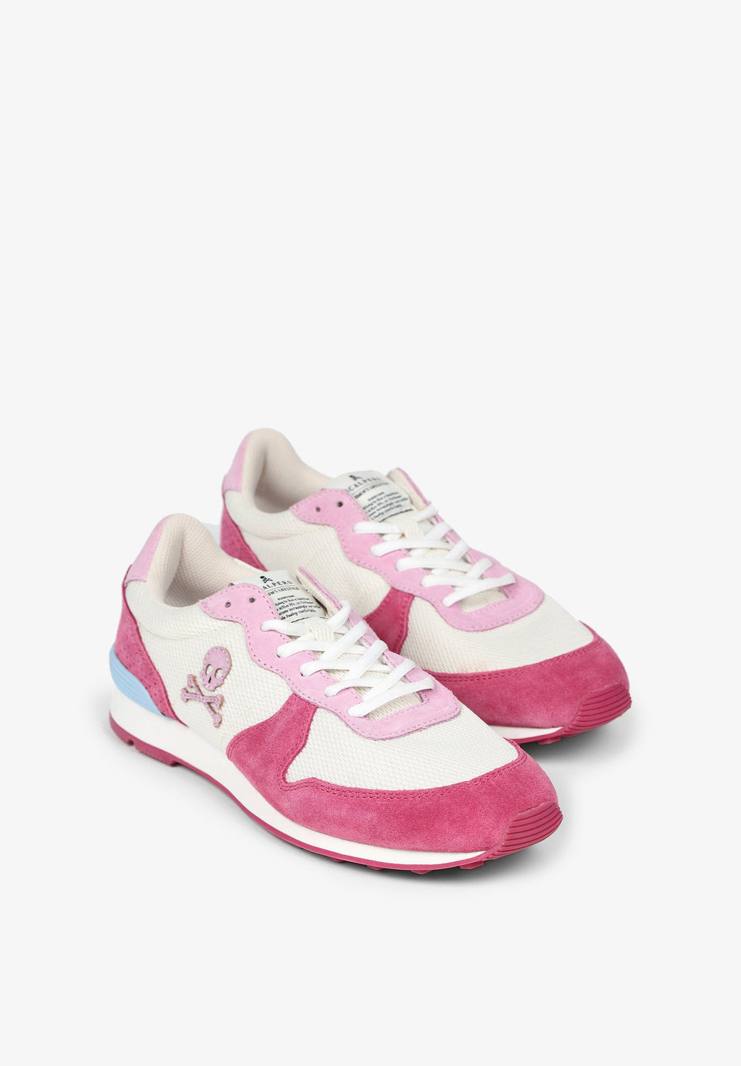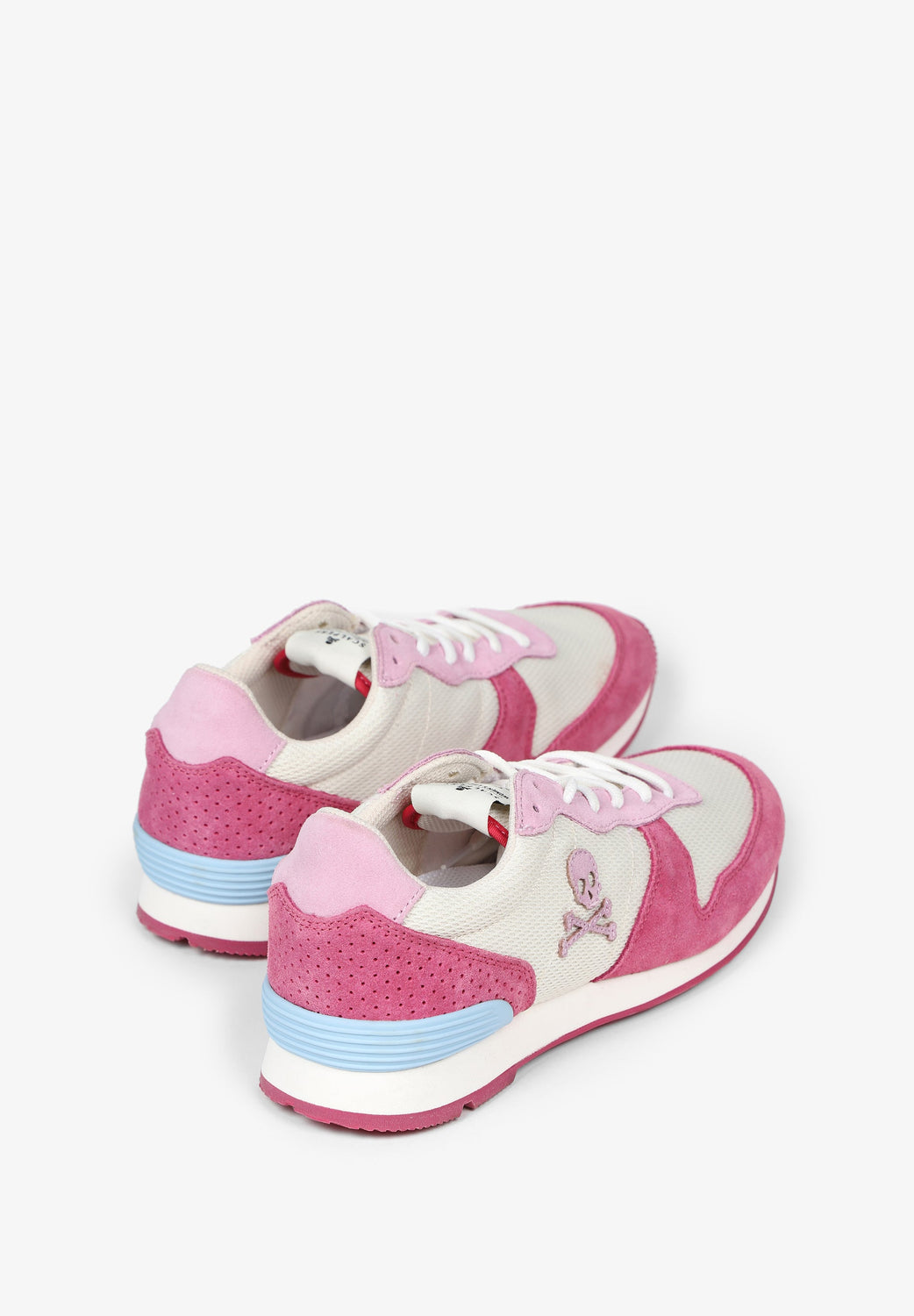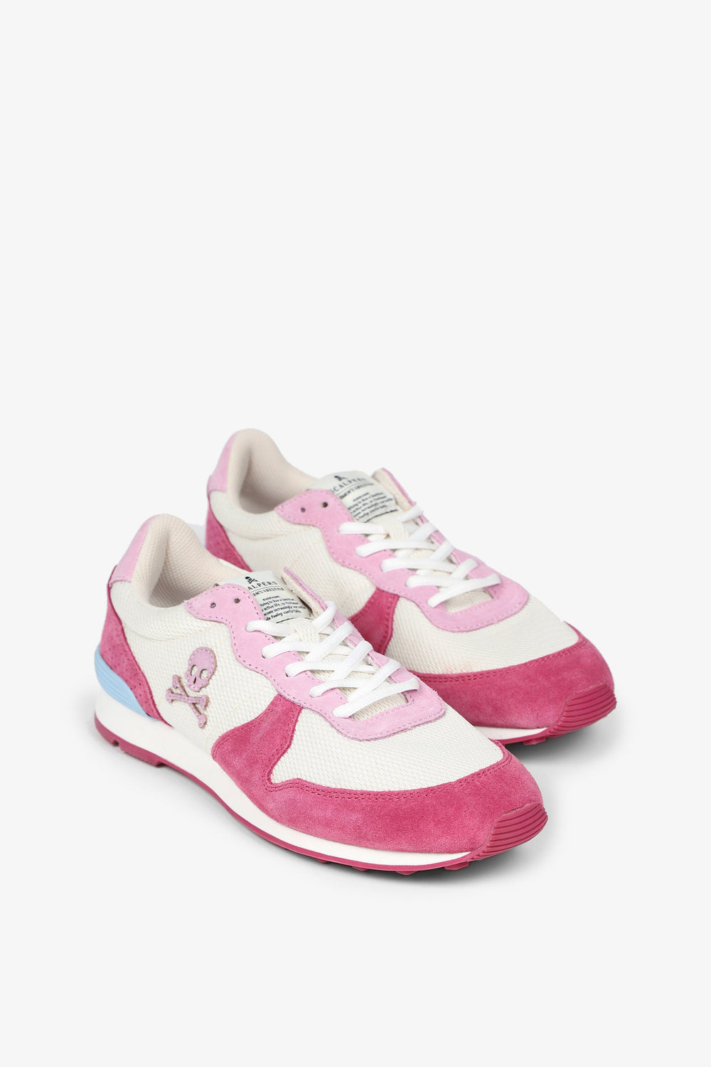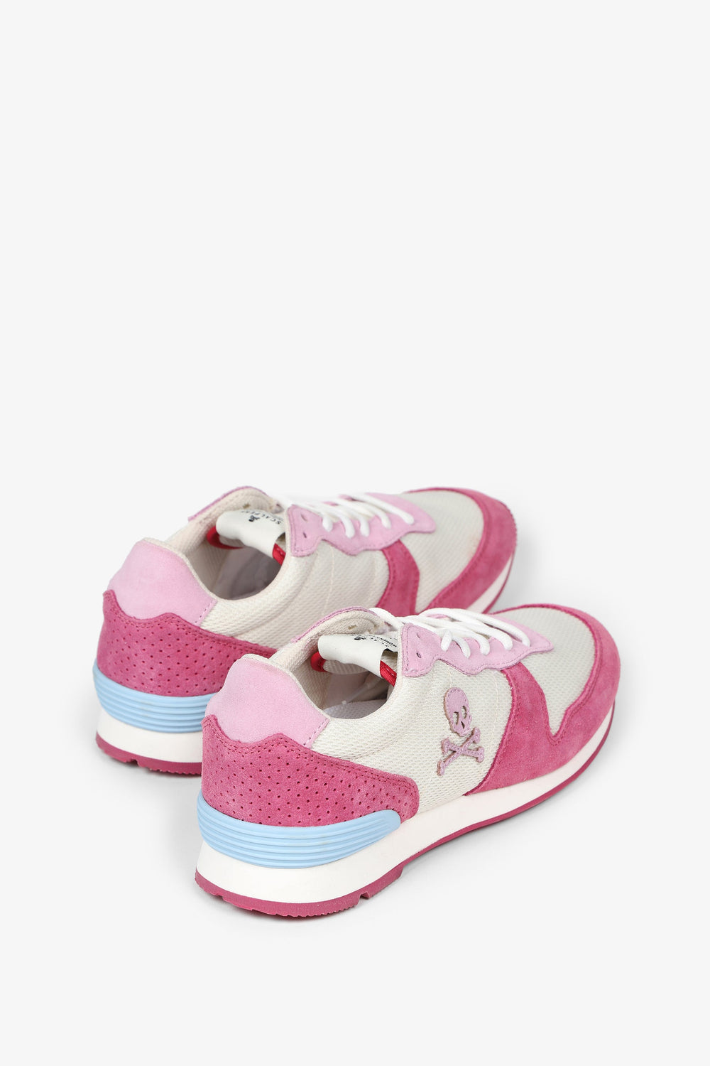 Sneakers confeccionadas en piel acabada en serraje y poliester. Cierre con cordones a tono, parte delantera con rejilla y suela de goma y eva. Detalle de calavera lateral.