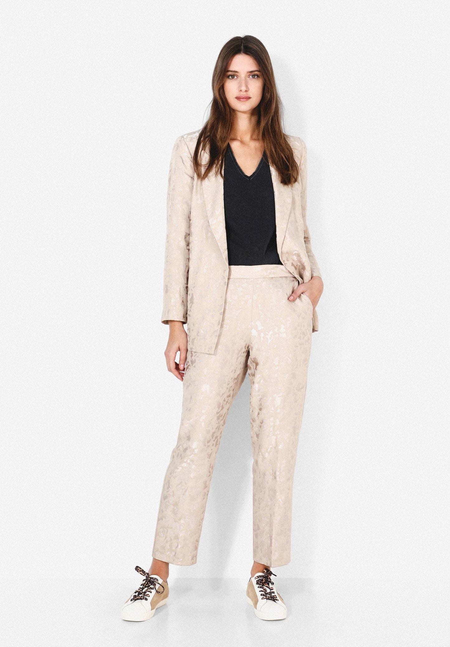 Pantalón con estampado en jacquard. Corte fluído, cierre con corchete y cremallera lateral y bolsillos laterales.