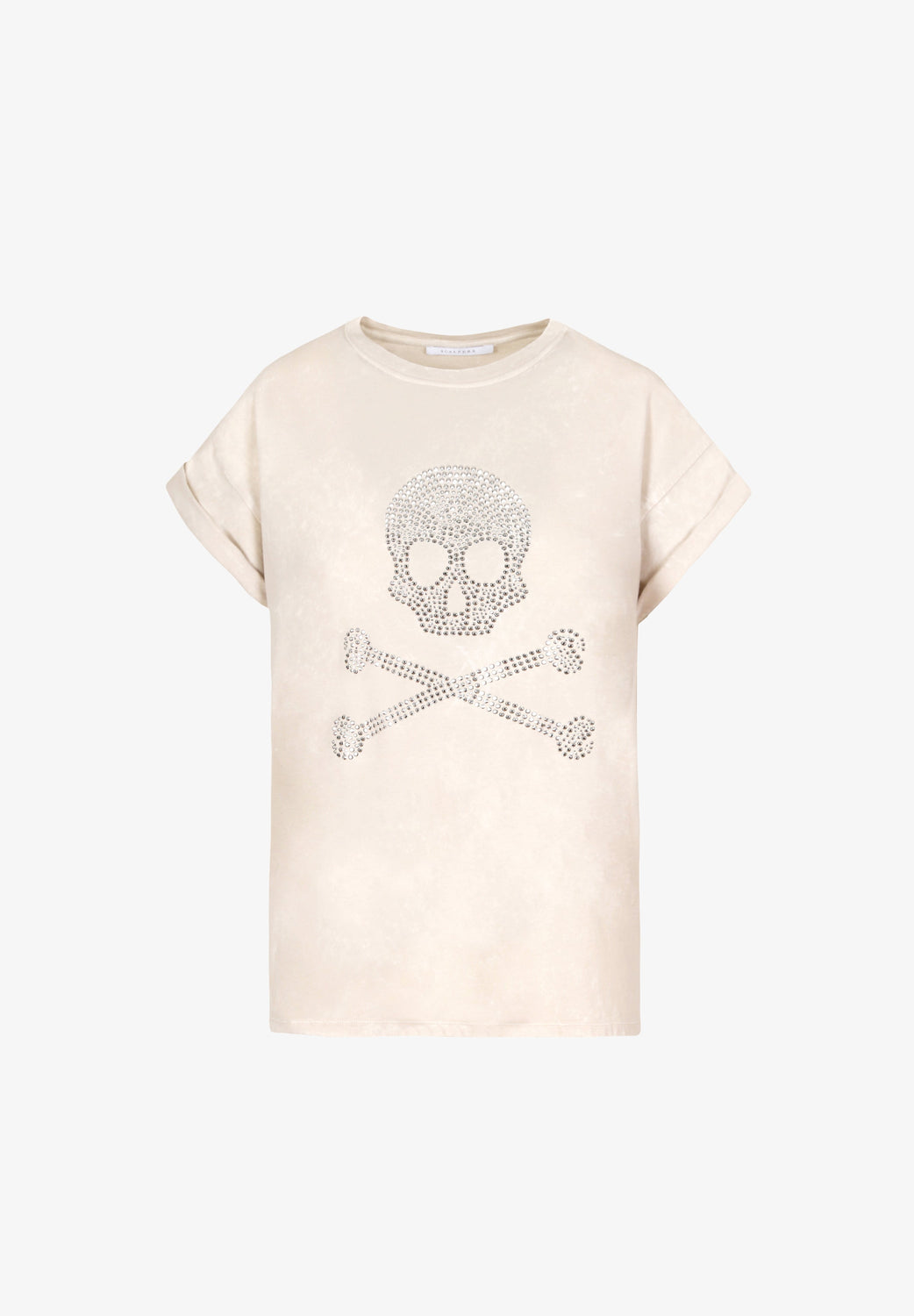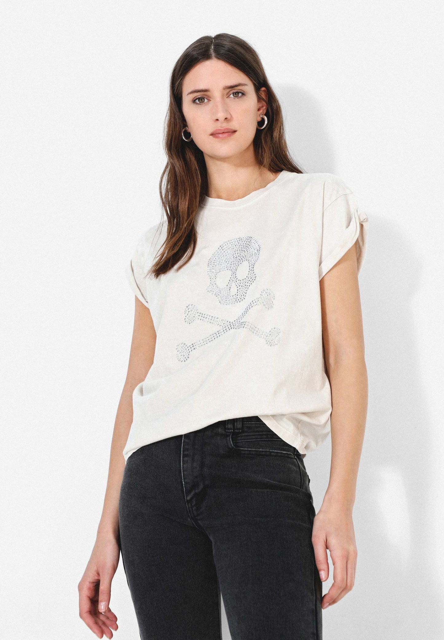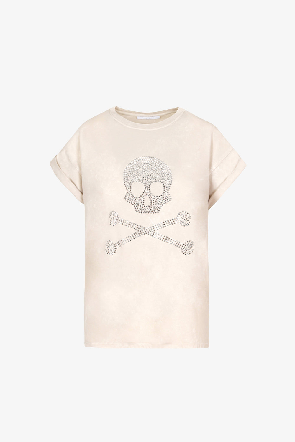 Camiseta confeccionada en tejido 100% algodón orgánico. Corte Regular Fit, cuello redondo y manga corta subida. Detalle de calavera frontal.