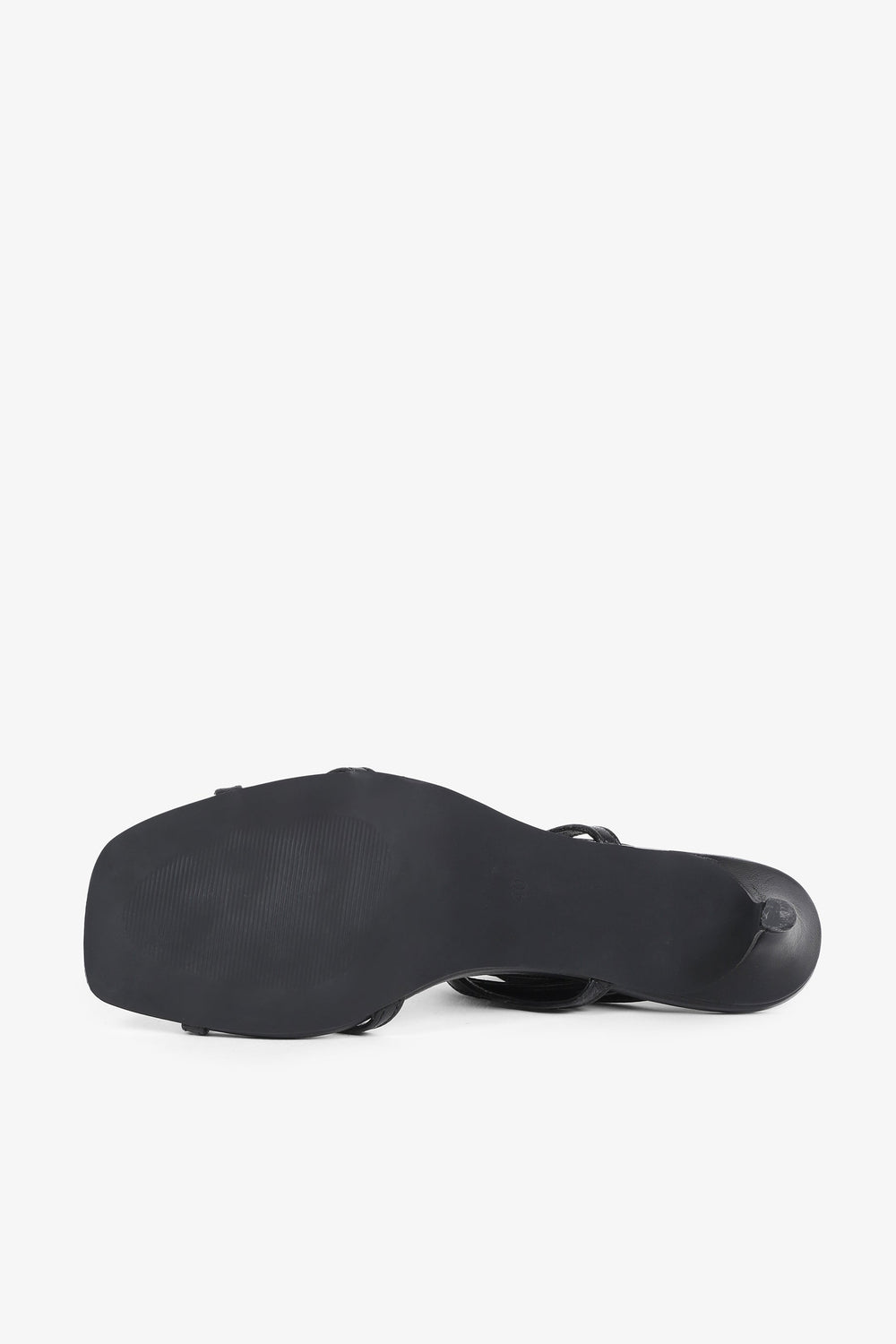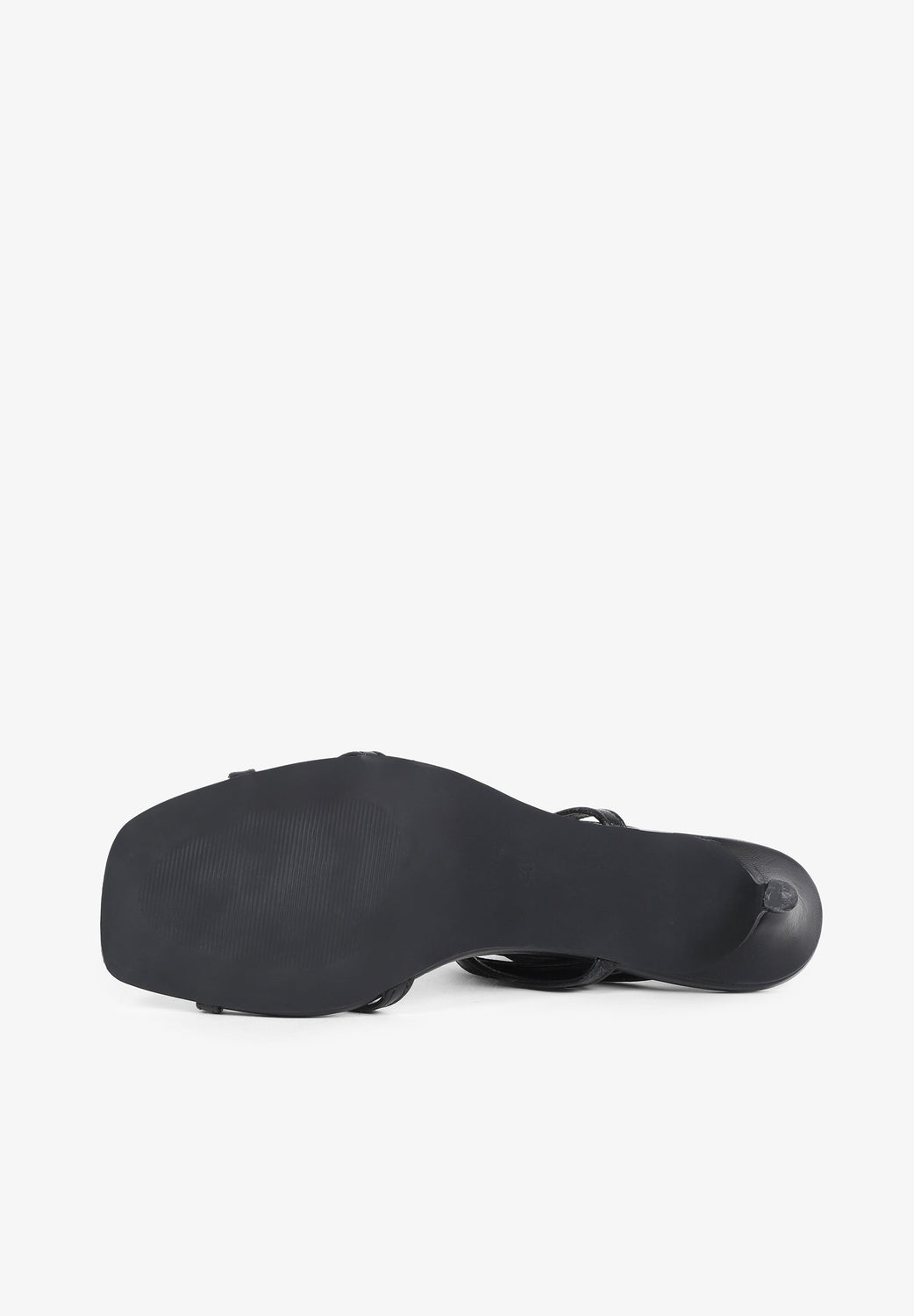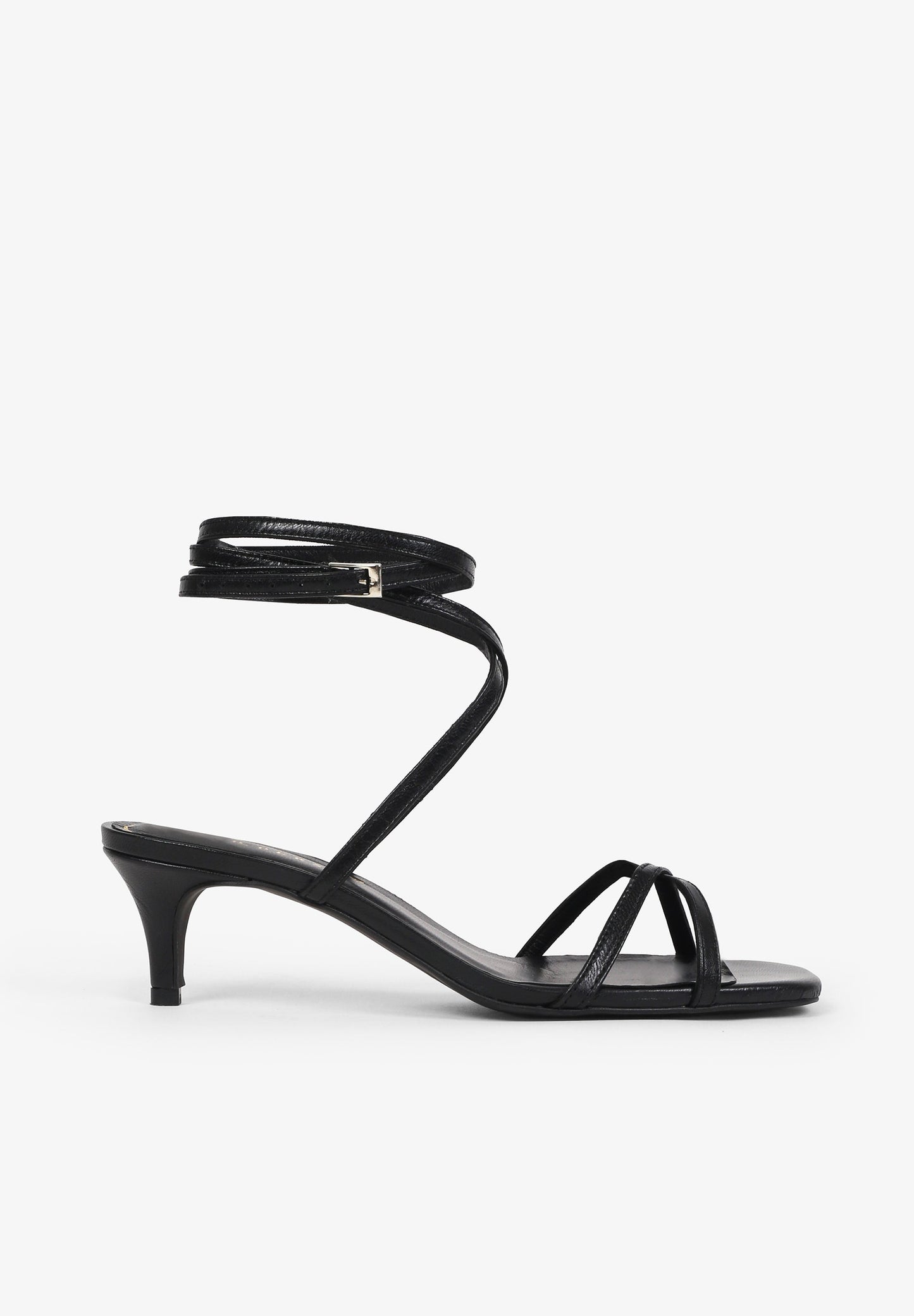 Sandalias con tacón confeccionadas en piel. Doble tira al tobillo con cierre de hebilla y doble tira delantera. Suela de goma.