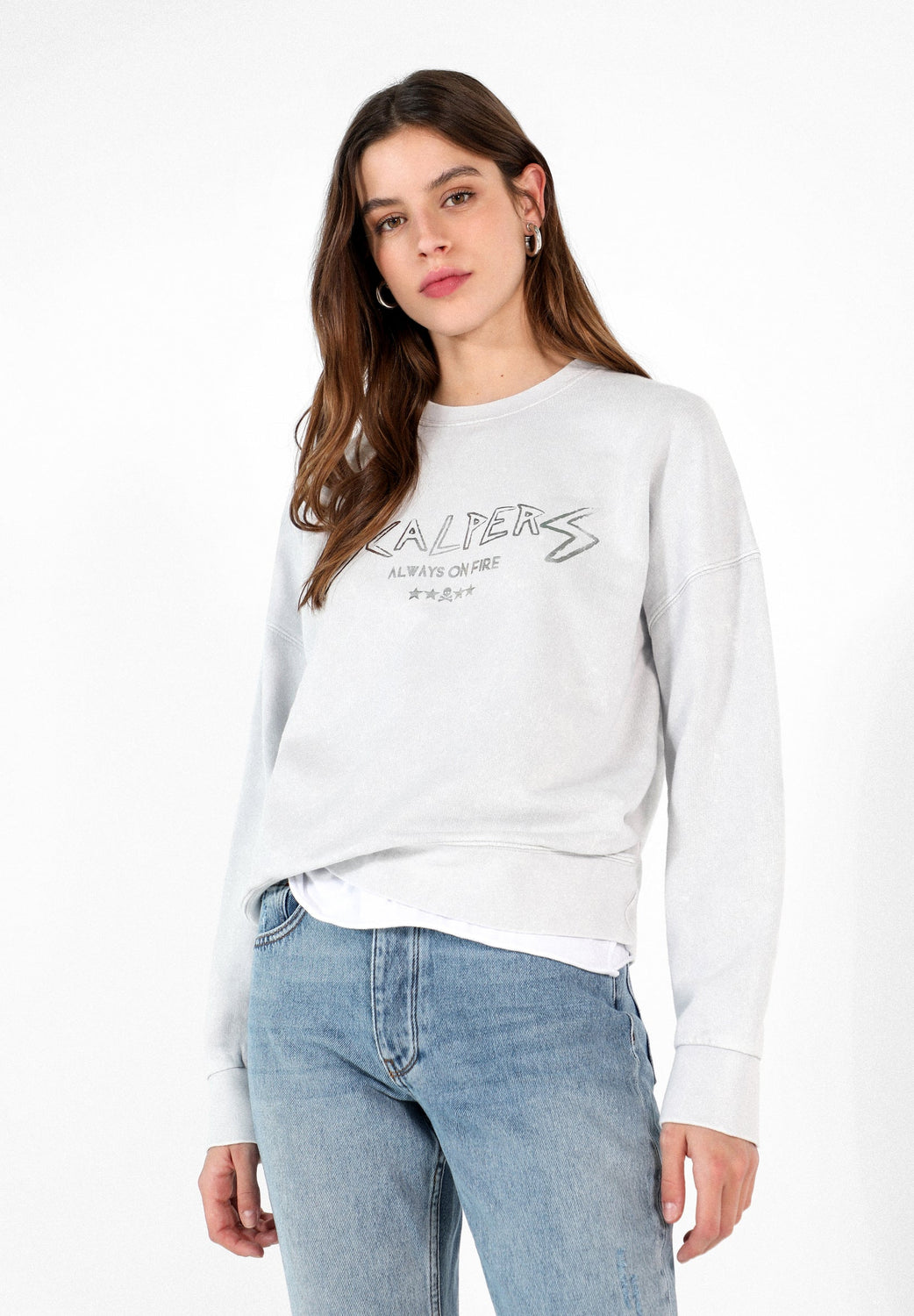 Sudadera confeccionada en tejido 100% algodón. Corte Regular Fit, cuello redondo y manga larga. Detalle de print frontal.