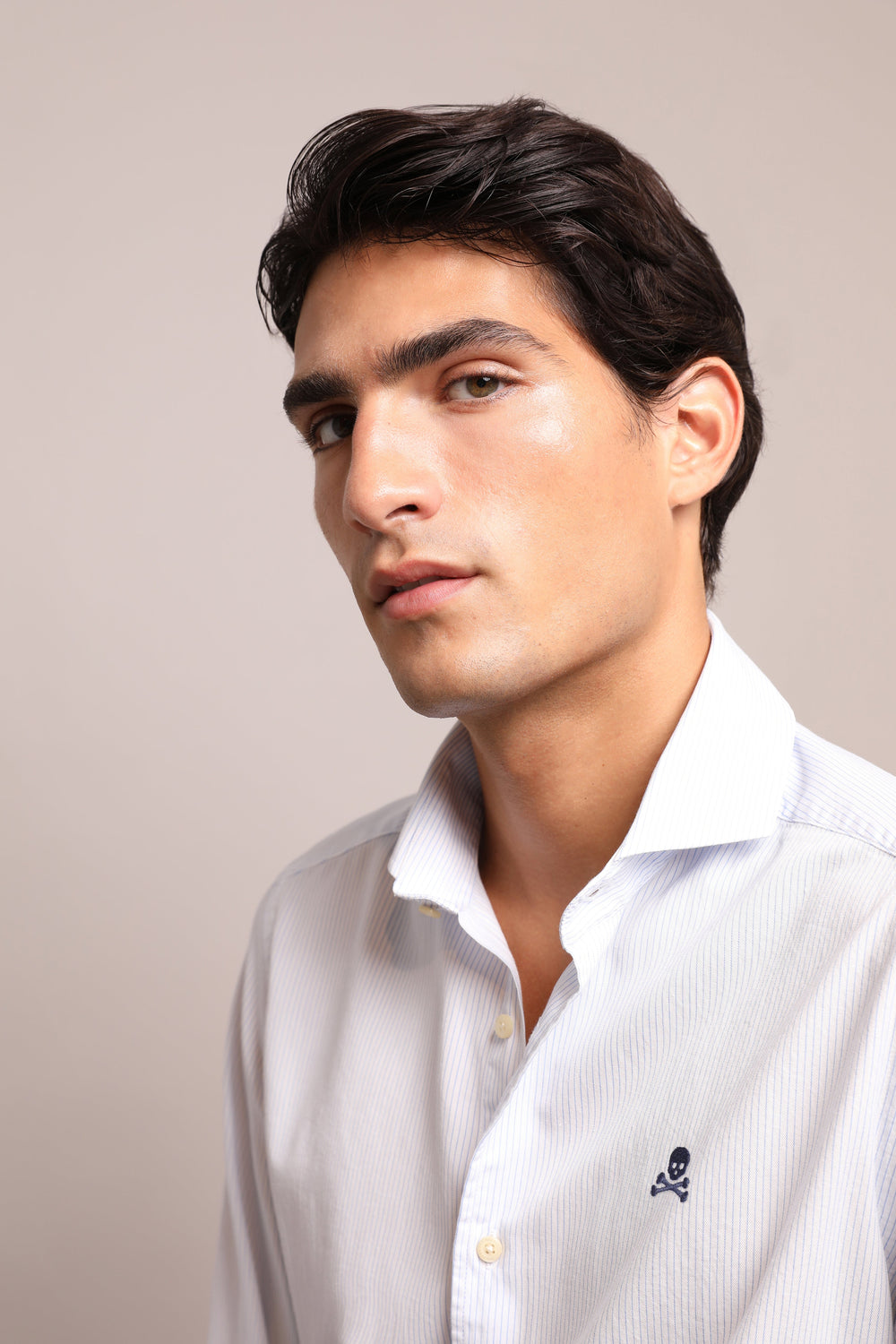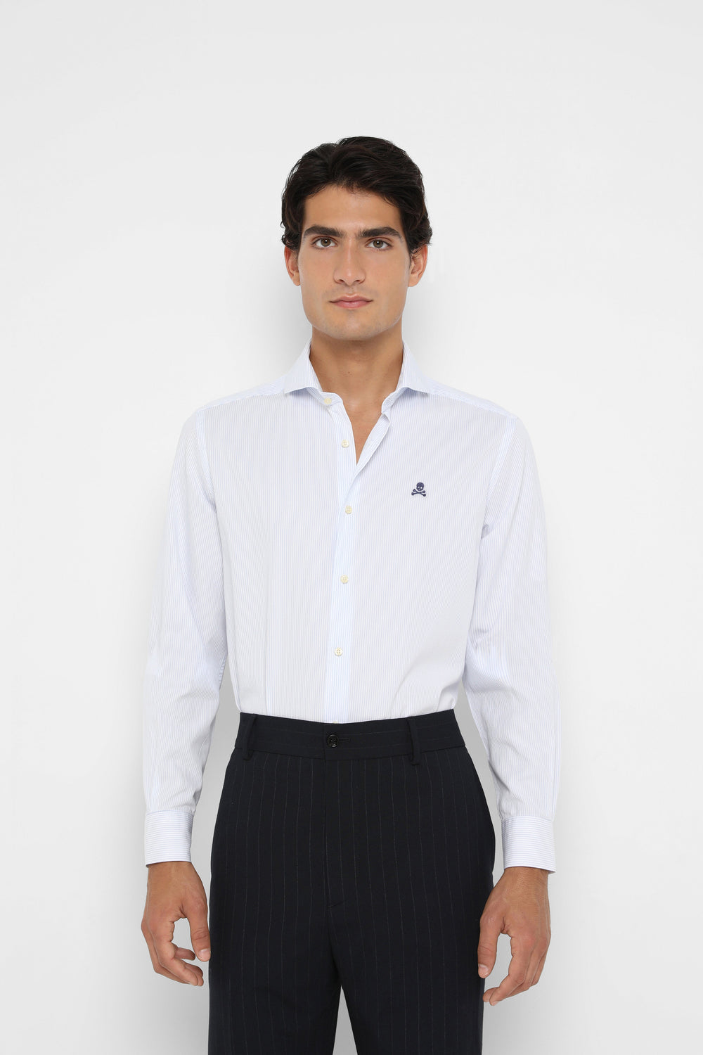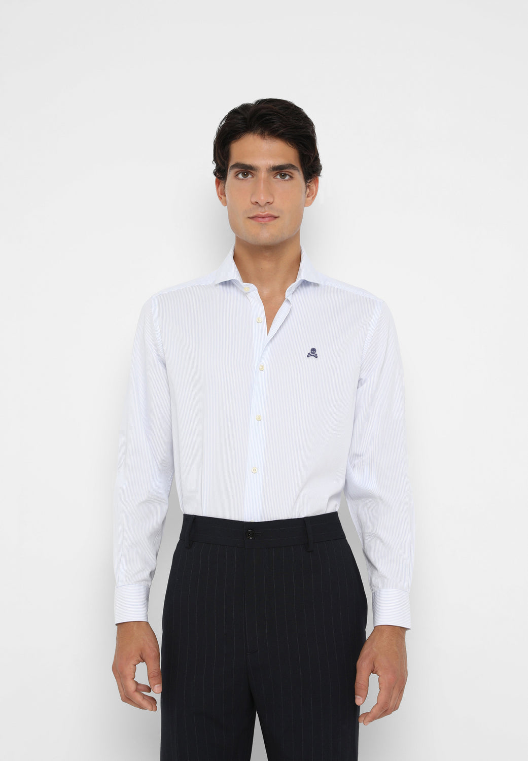 Camisa con calavera bordada a contraste.
