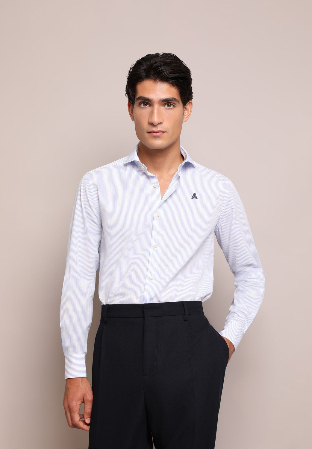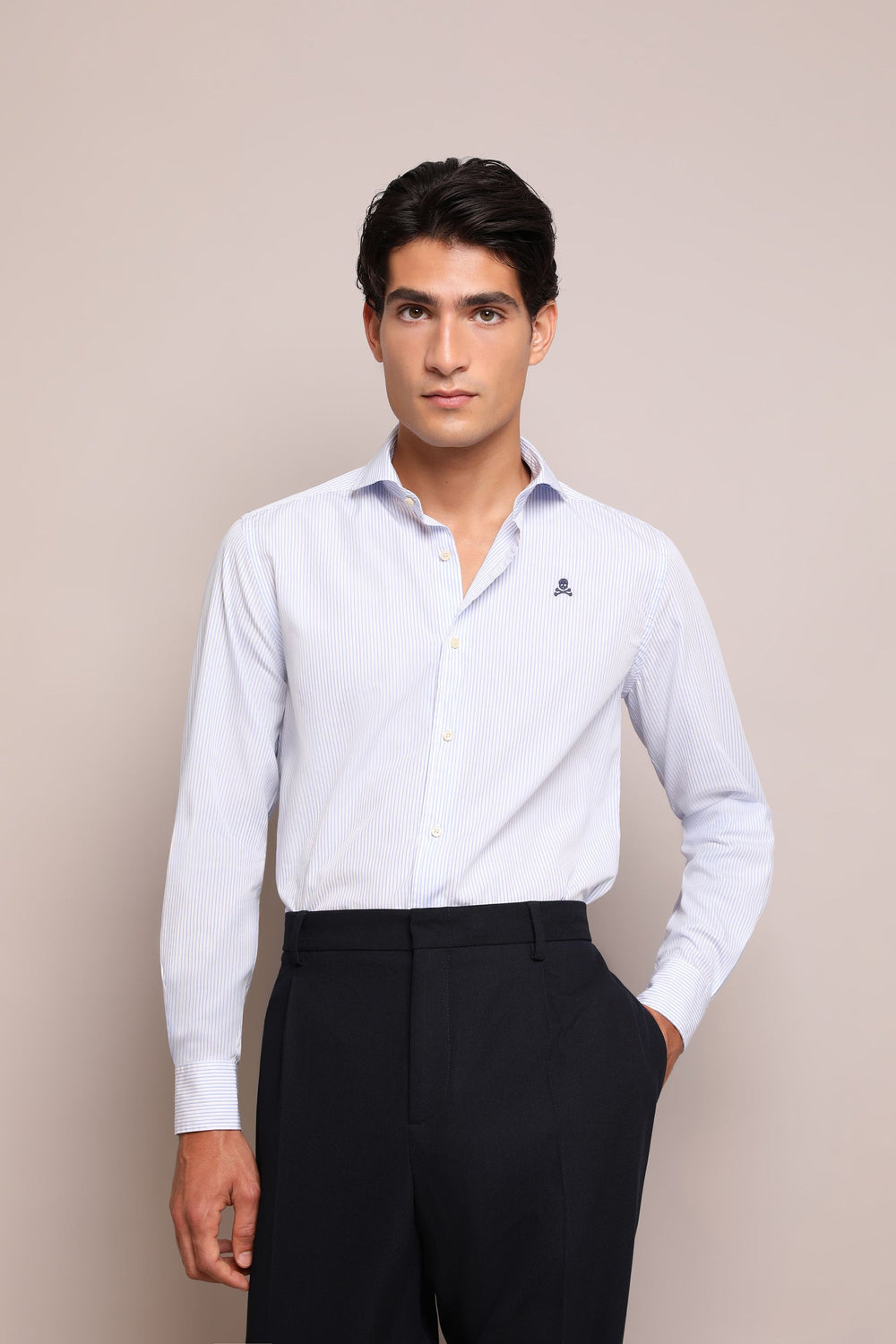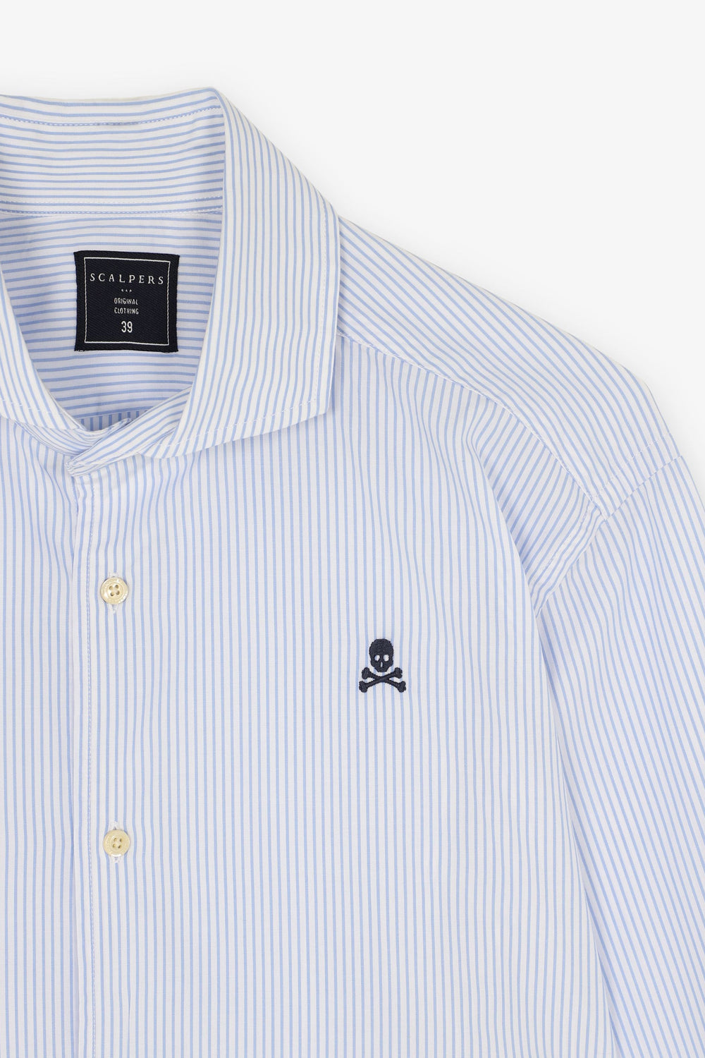 Camisa de rayas con calavera bordada a contraste.
