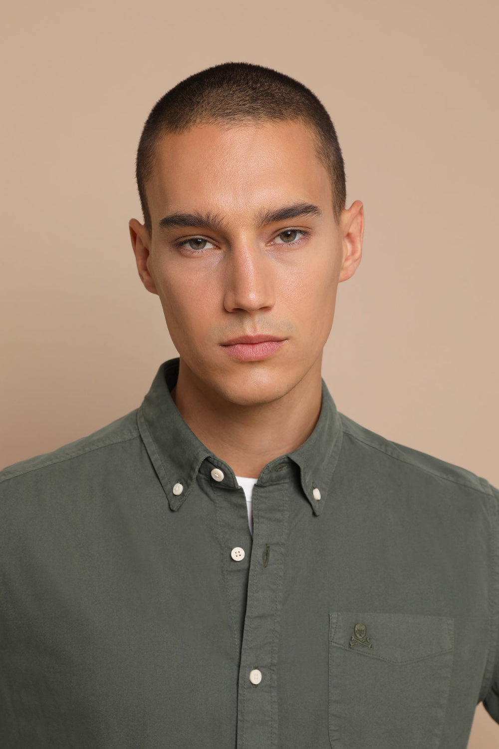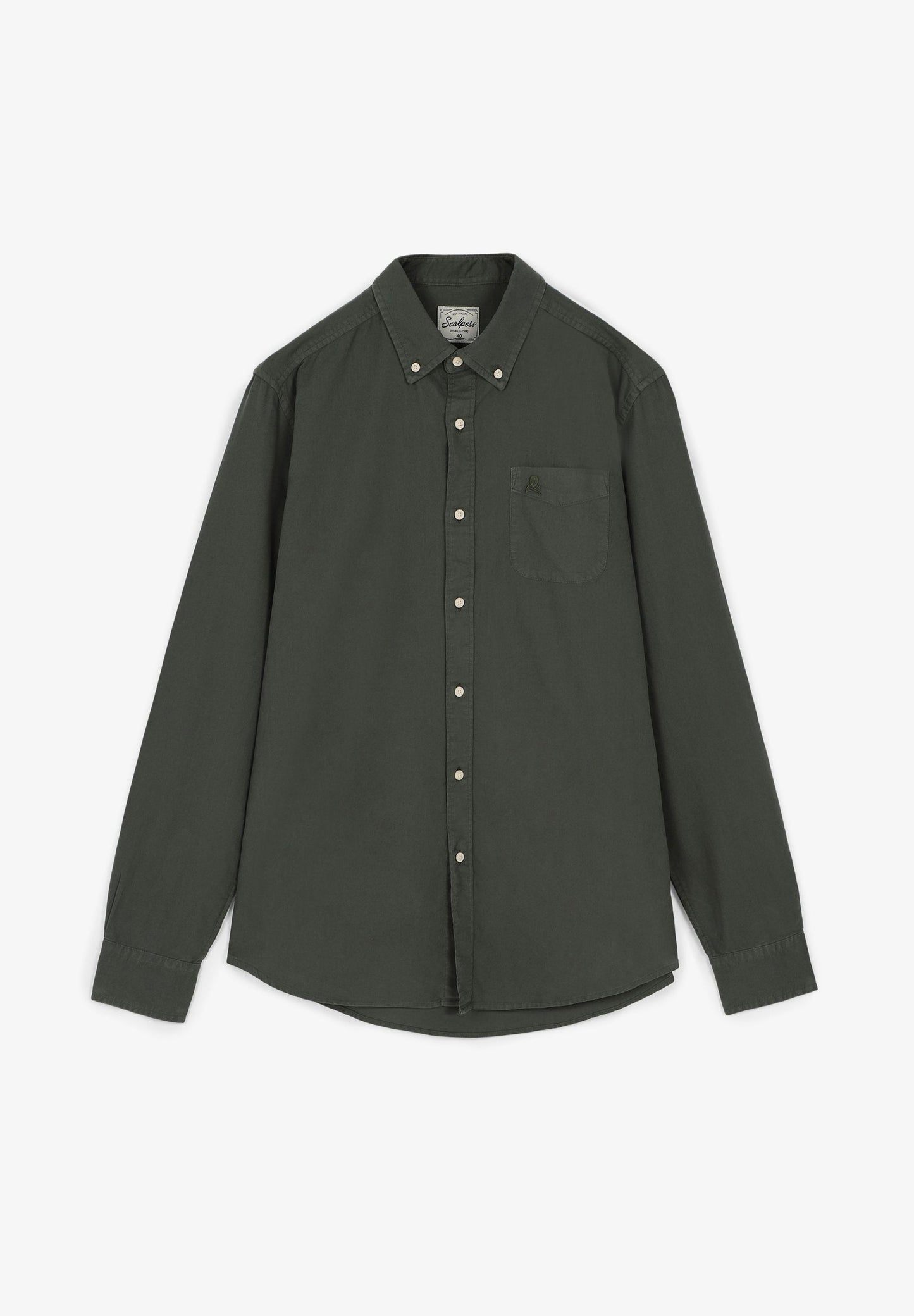 Camisa lisa lavada con calavera bordada.