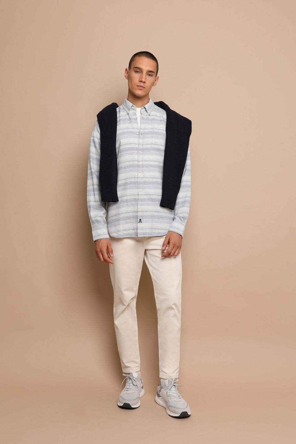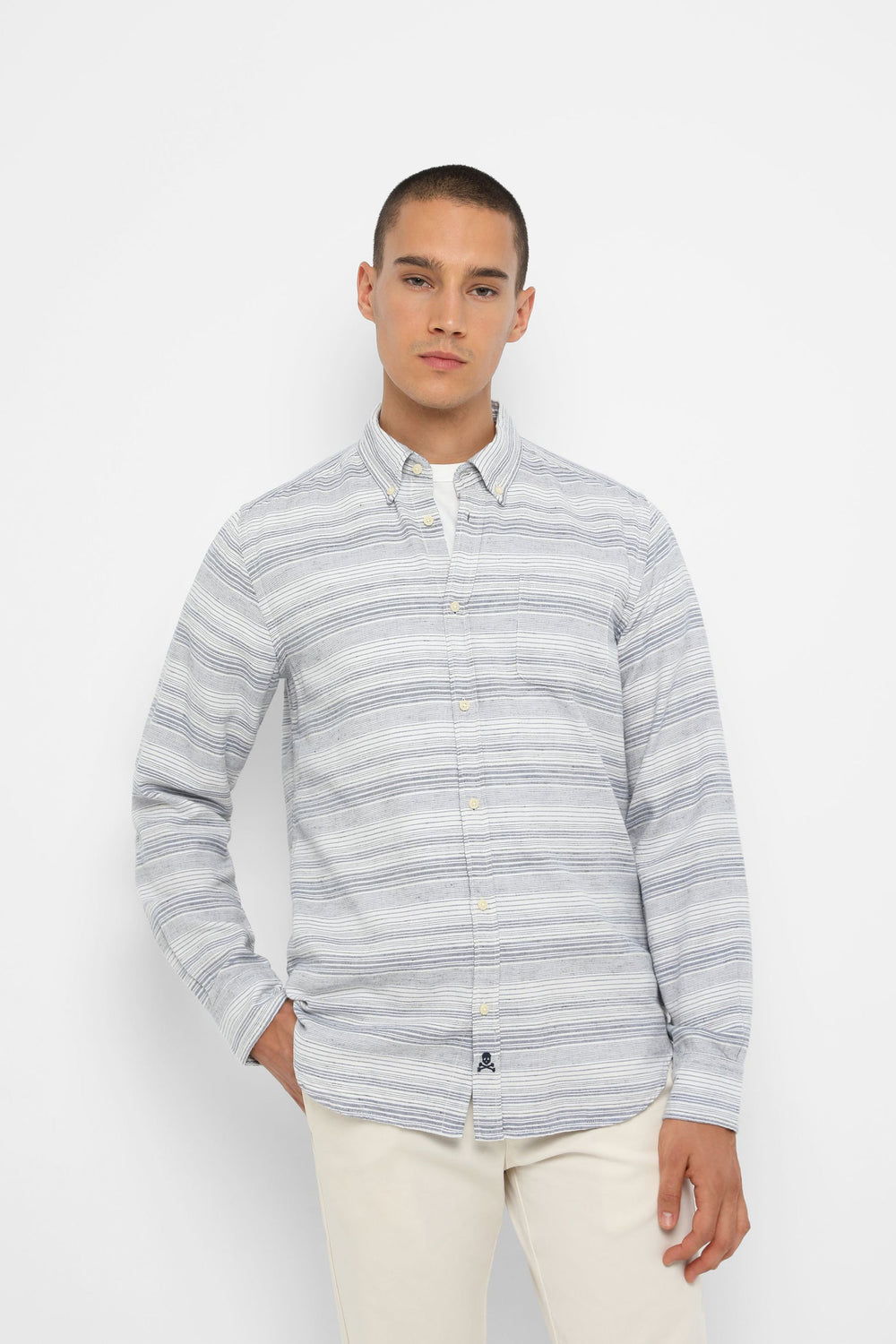 Camisa de rayas horizontales con calavera a contraste en tapeta.