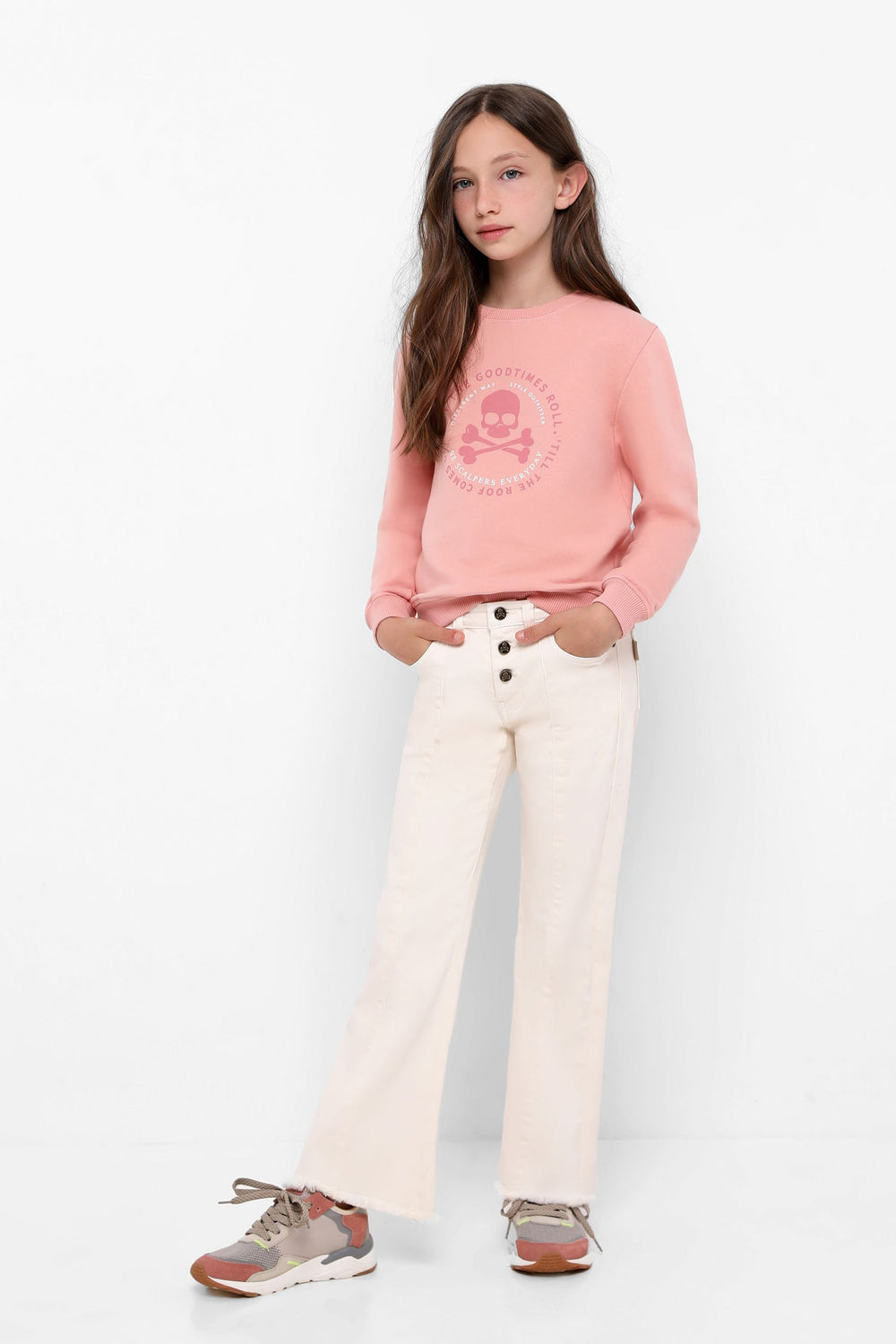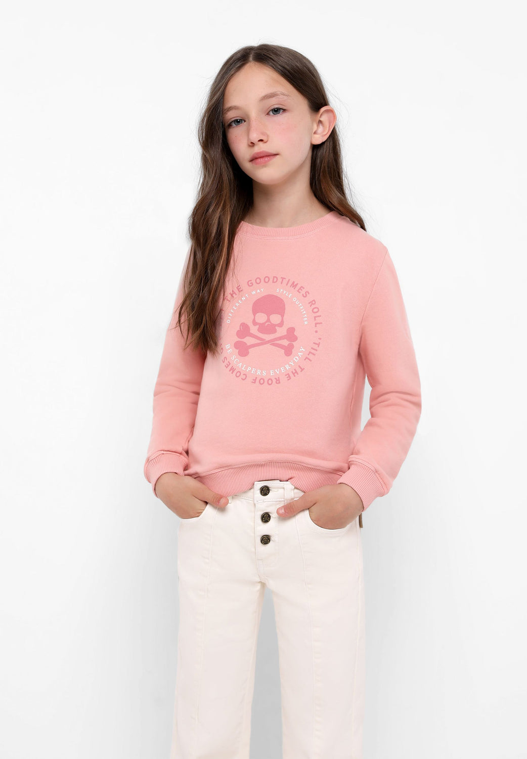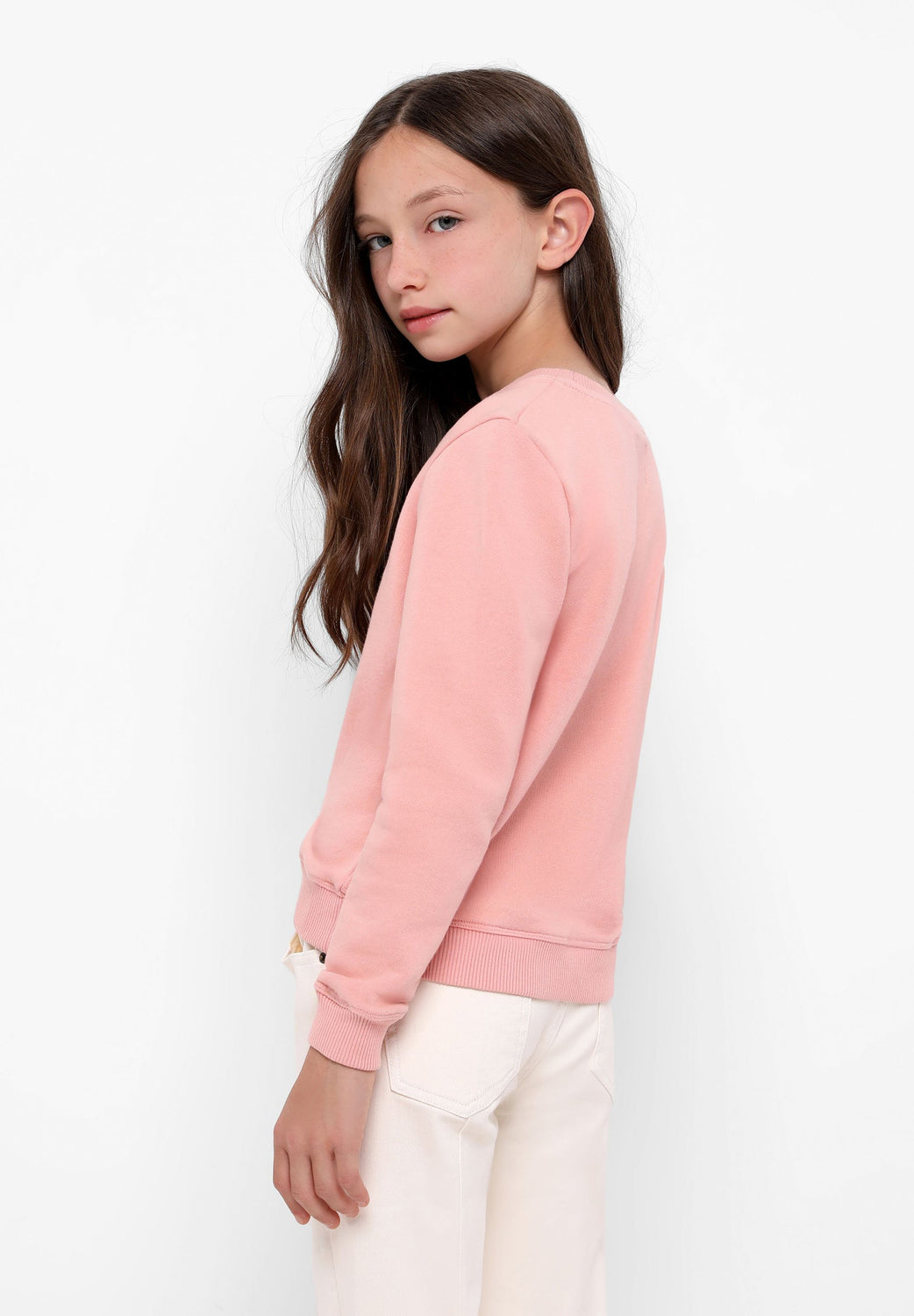 Sudadera confeccionada en tejido 100% algodón orgánico. Corte Regular Fit, cuello redondo tipo roll y manga larga. Detalle de print frontal.