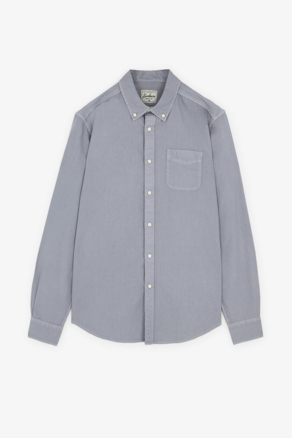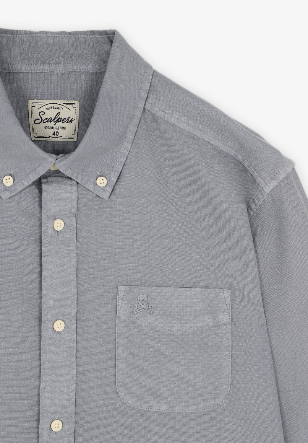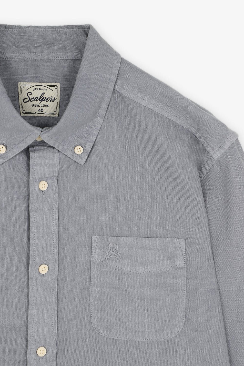 Camisa lisa lavada con calavera bordada.