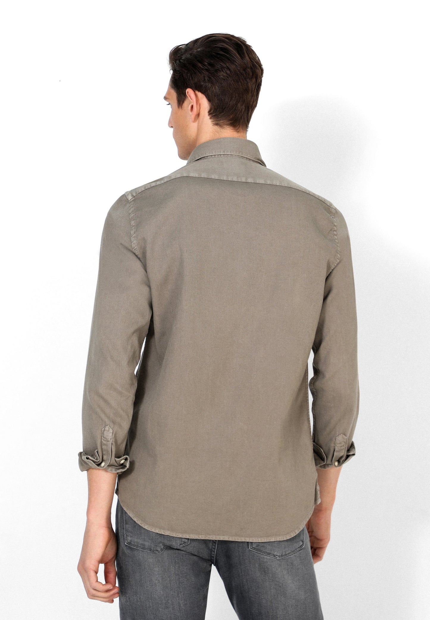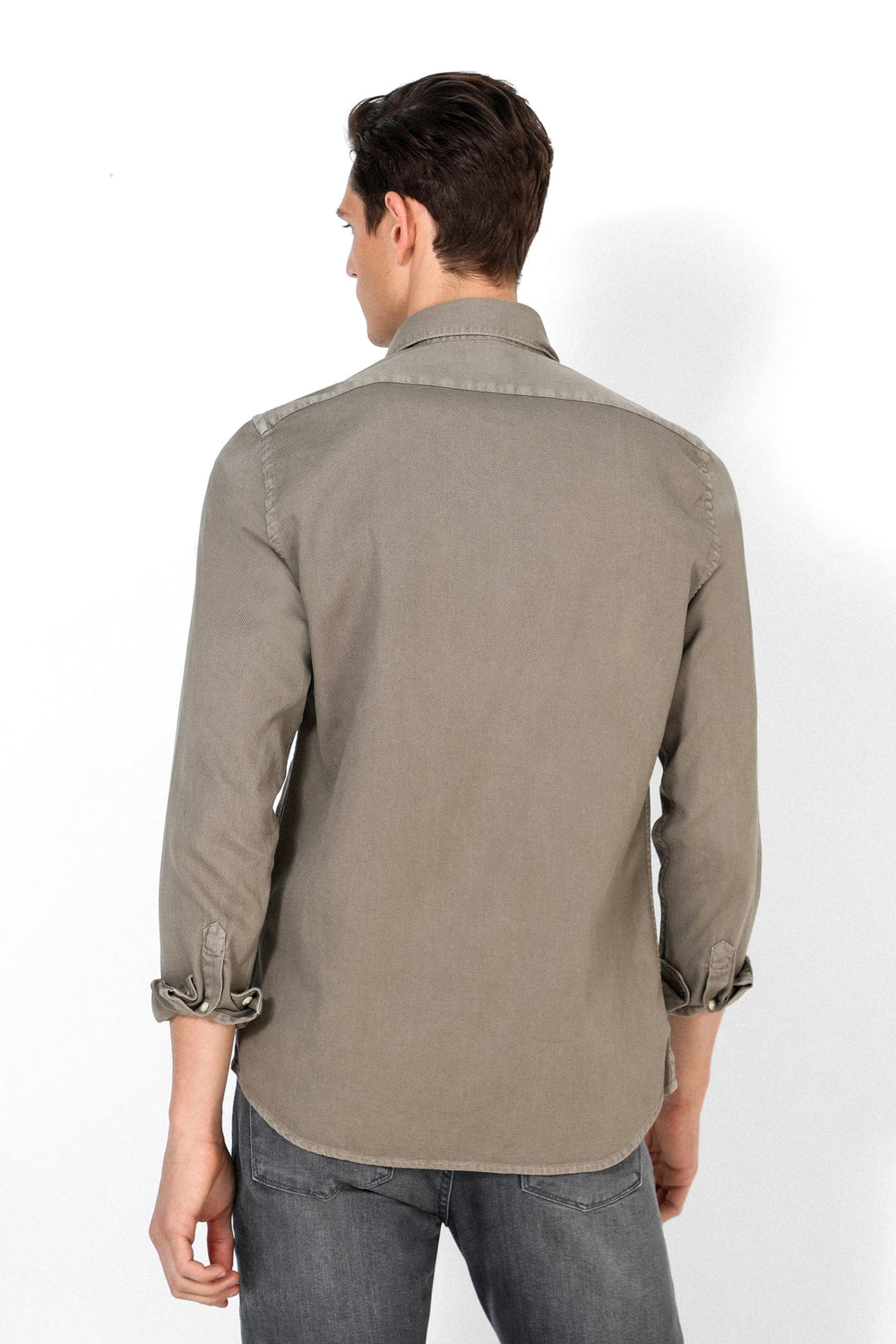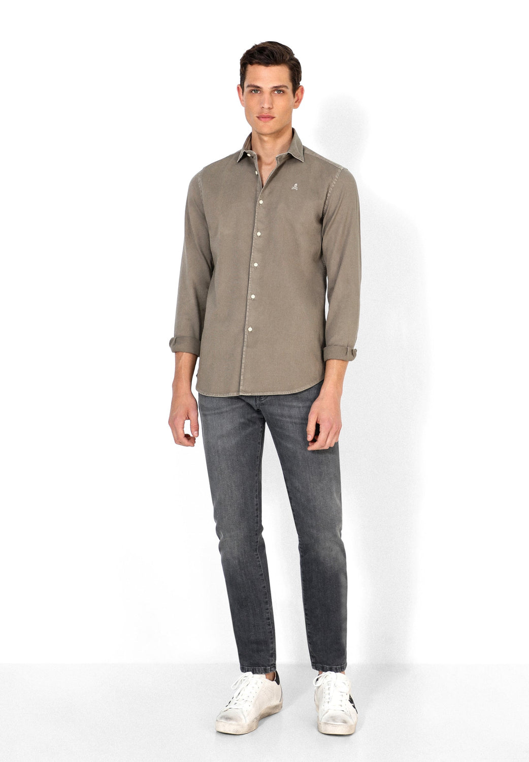 Camisa confeccionada en tejido 100% algodón tipo polo. Corte Regular Fit, cuello cutaway y cierre con botones. Manga larga terminada en puño con botones y detalla de calavera bordada a tono.