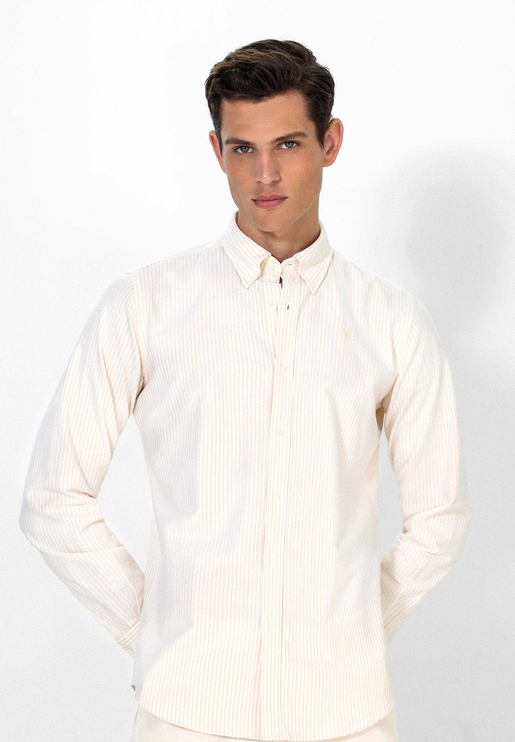 Camisa confeccionada en tejido 100% orgánico. Corte Regular Fit, cuello con botones y cierre con botones. Manga larga terminada en puño simple y detalle de calavera a contraste.
