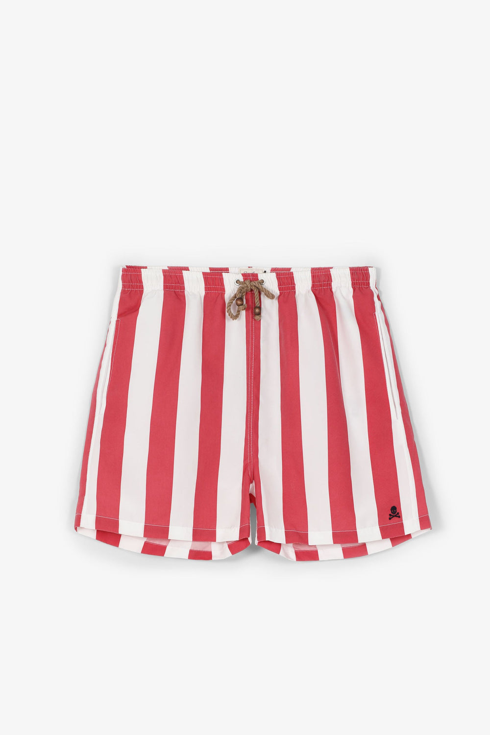 Bañador de rayas confeccionado en tejido técnico. Corte Regular Fit con cinturilla elástica, cierre con cordón y bolsillos laterales y traseros. Detalle de calavera bordada en el bajo.
