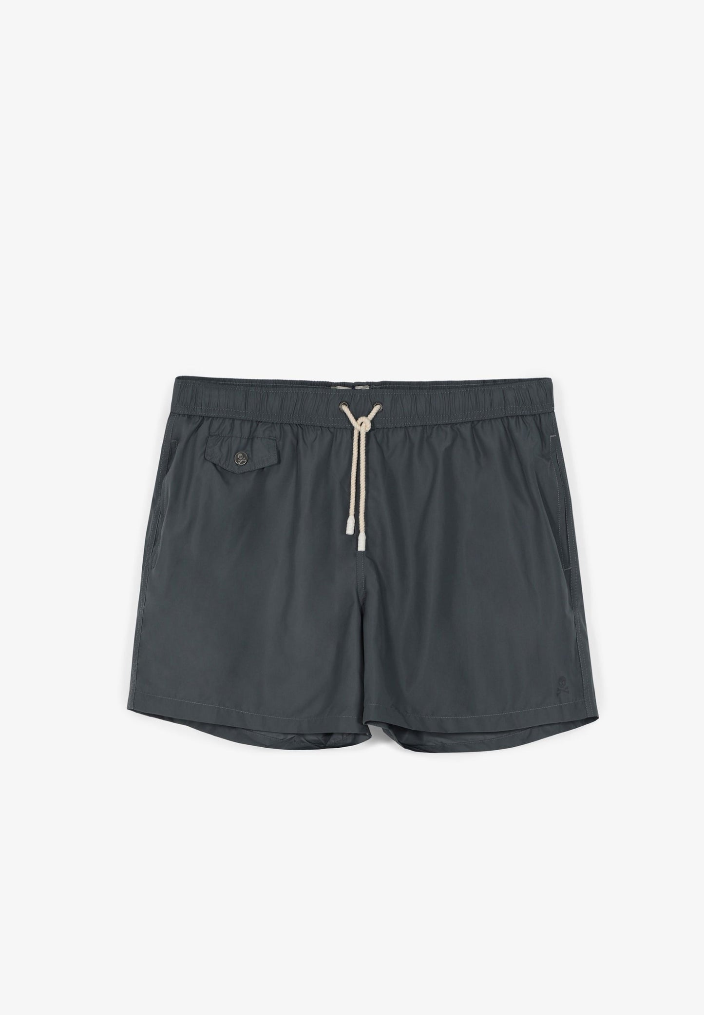Bañador confeccionado en tejido 100% poliéster reciclado. Corte Regular Fit con cinturilla elástica, cierre con cordón y bolsillo delantero con botón y trasero con tapeta y snap. Detalle de calavera en el bajo.