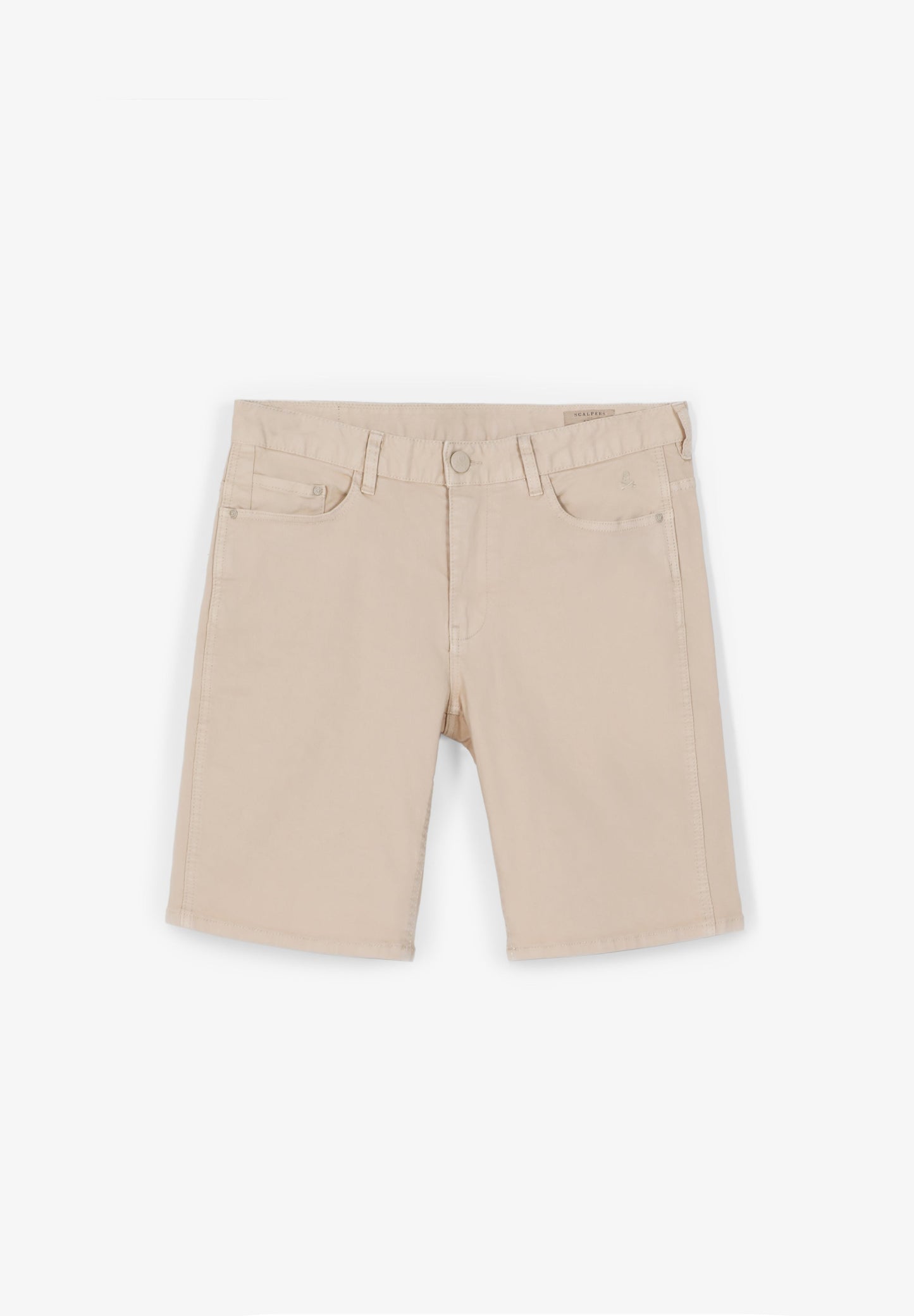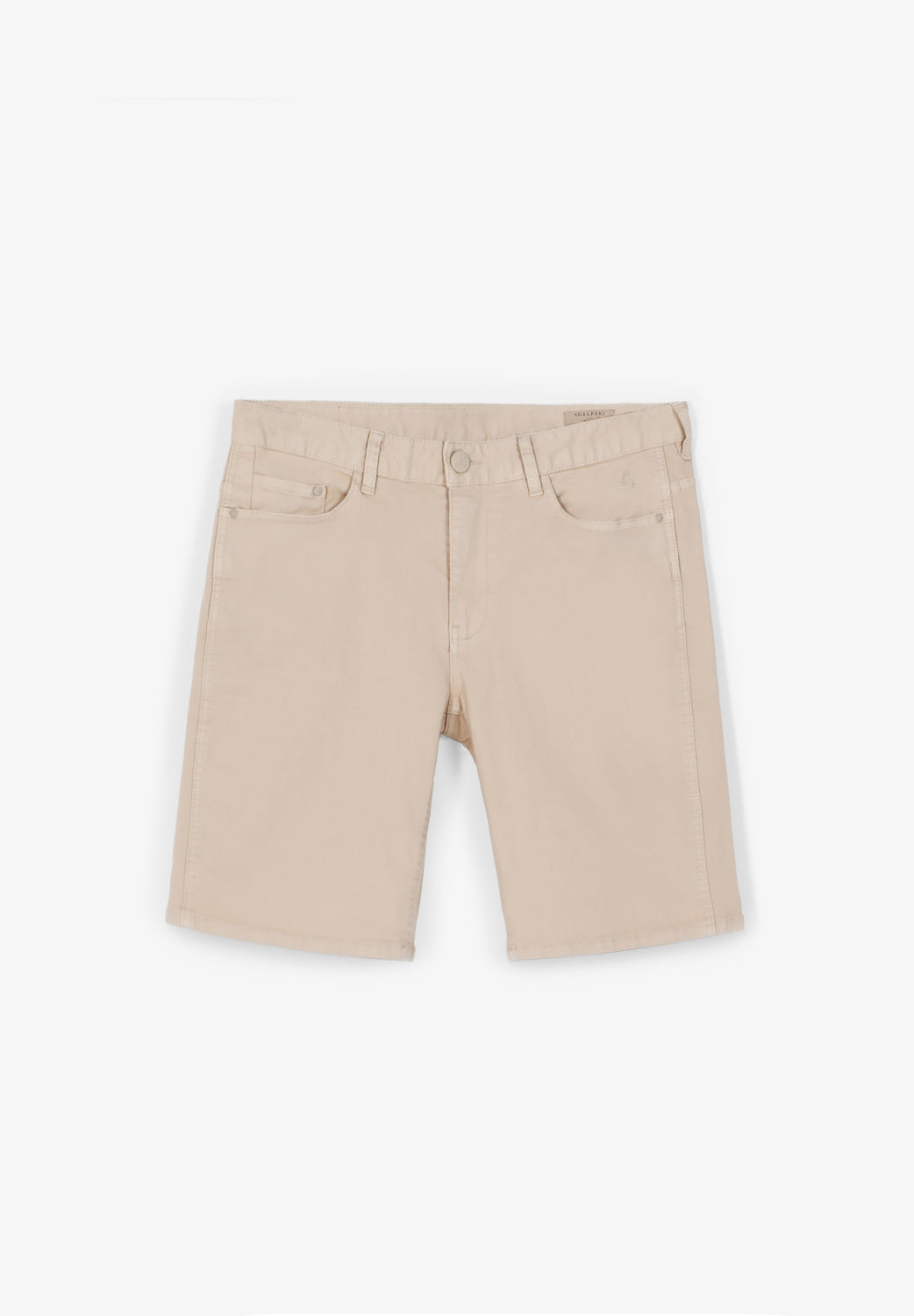 Bermudas confeccionadas en tejido de algodón ligeramente elástico. Corte Regular Fit, cierre con botón y cremallera. Bolsillos laterales y traseros. Tiene trabillas.