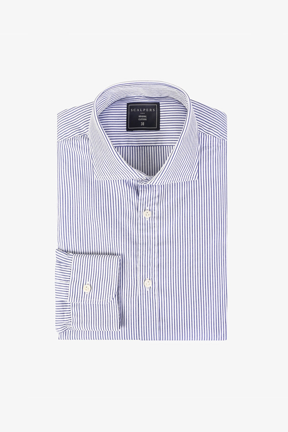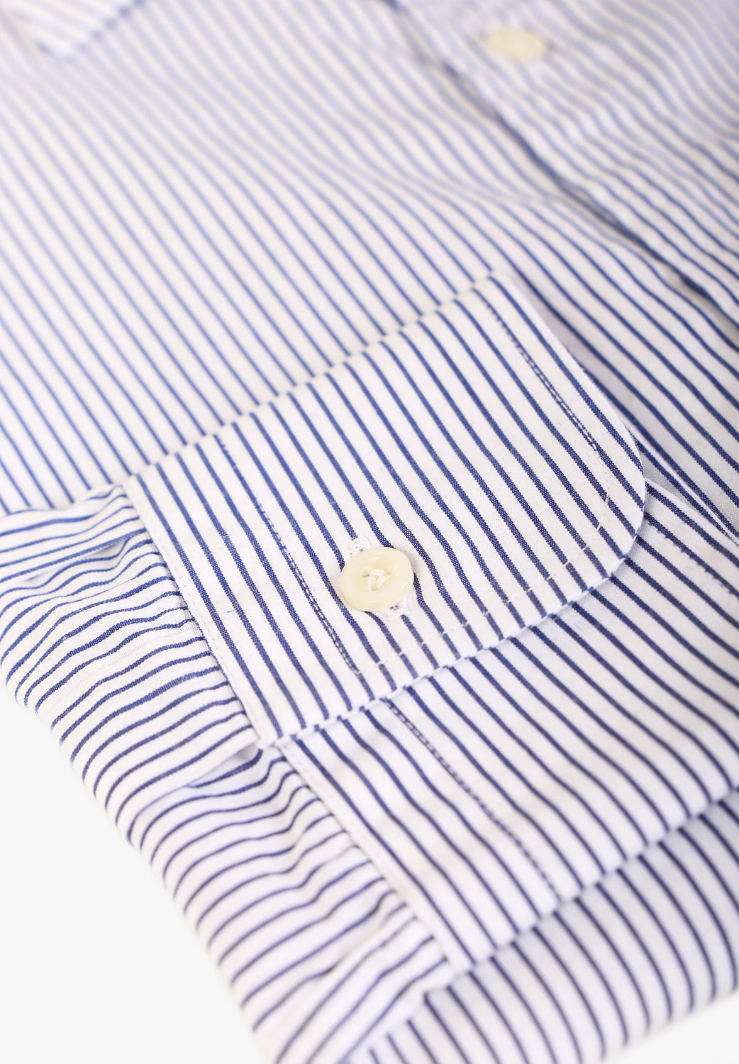 Camisa confeccionada en tejido 100% algodón. Corte Slim Fit, cuello cutaway y cierre con botones. Manga larga terminada en puño con botones.