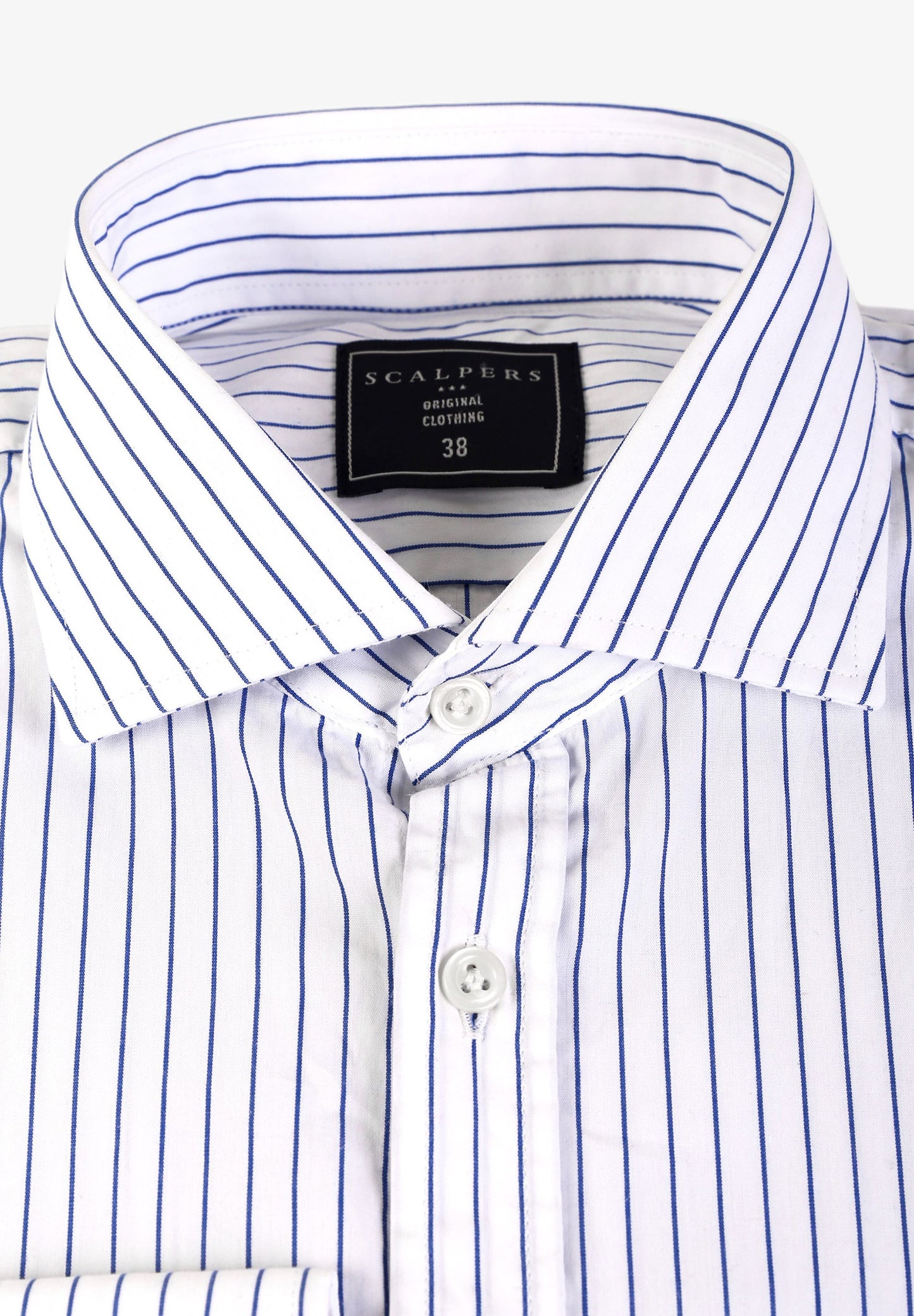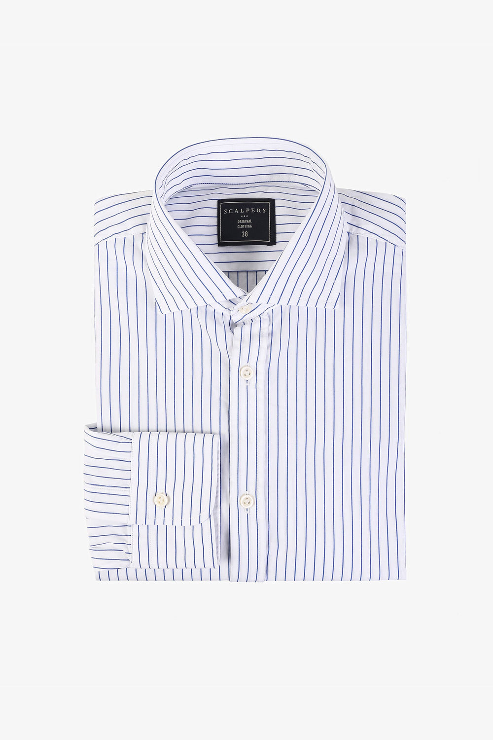 Camisa confeccionada en tejido 100% algodón. Corte Slim Fit, cuello cutaway y cierre con botones. Manga larga terminada en puño con botones.