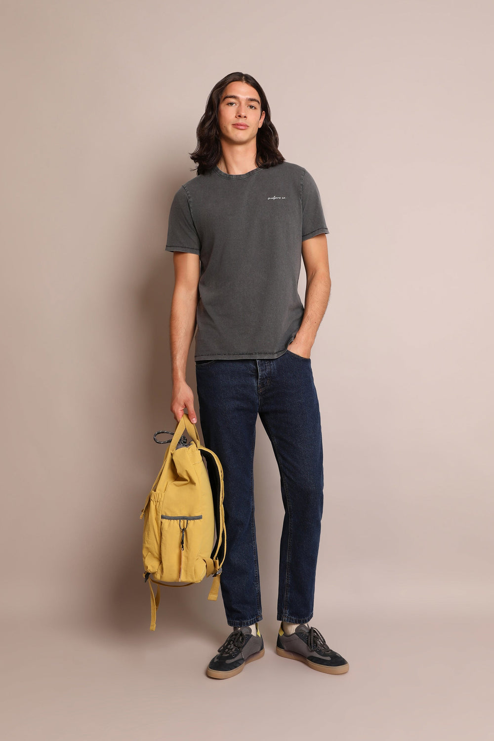 Camiseta lavada con print trasero.