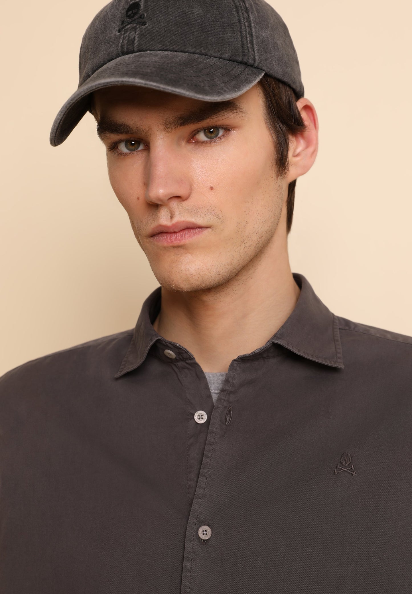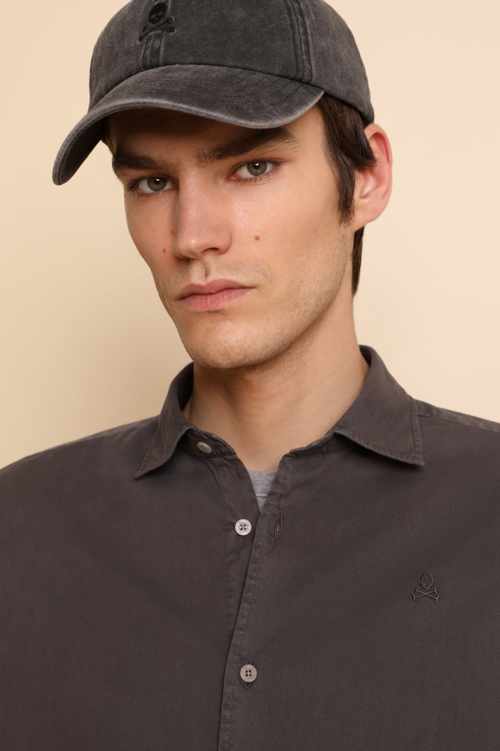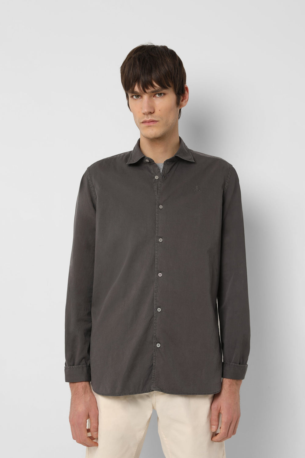 Camisa lavada con calavera bordada a tono.