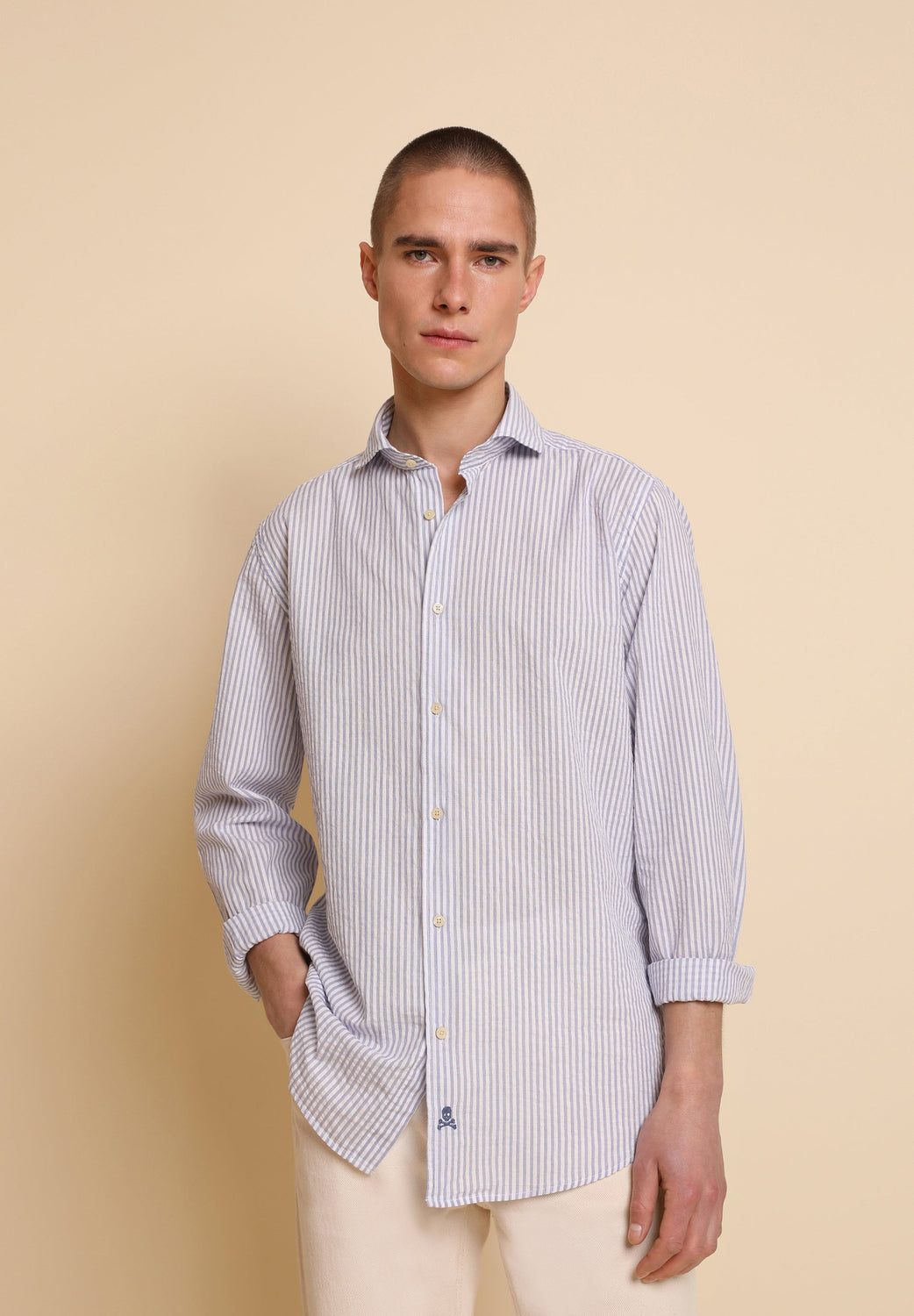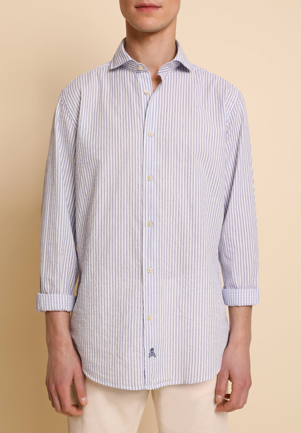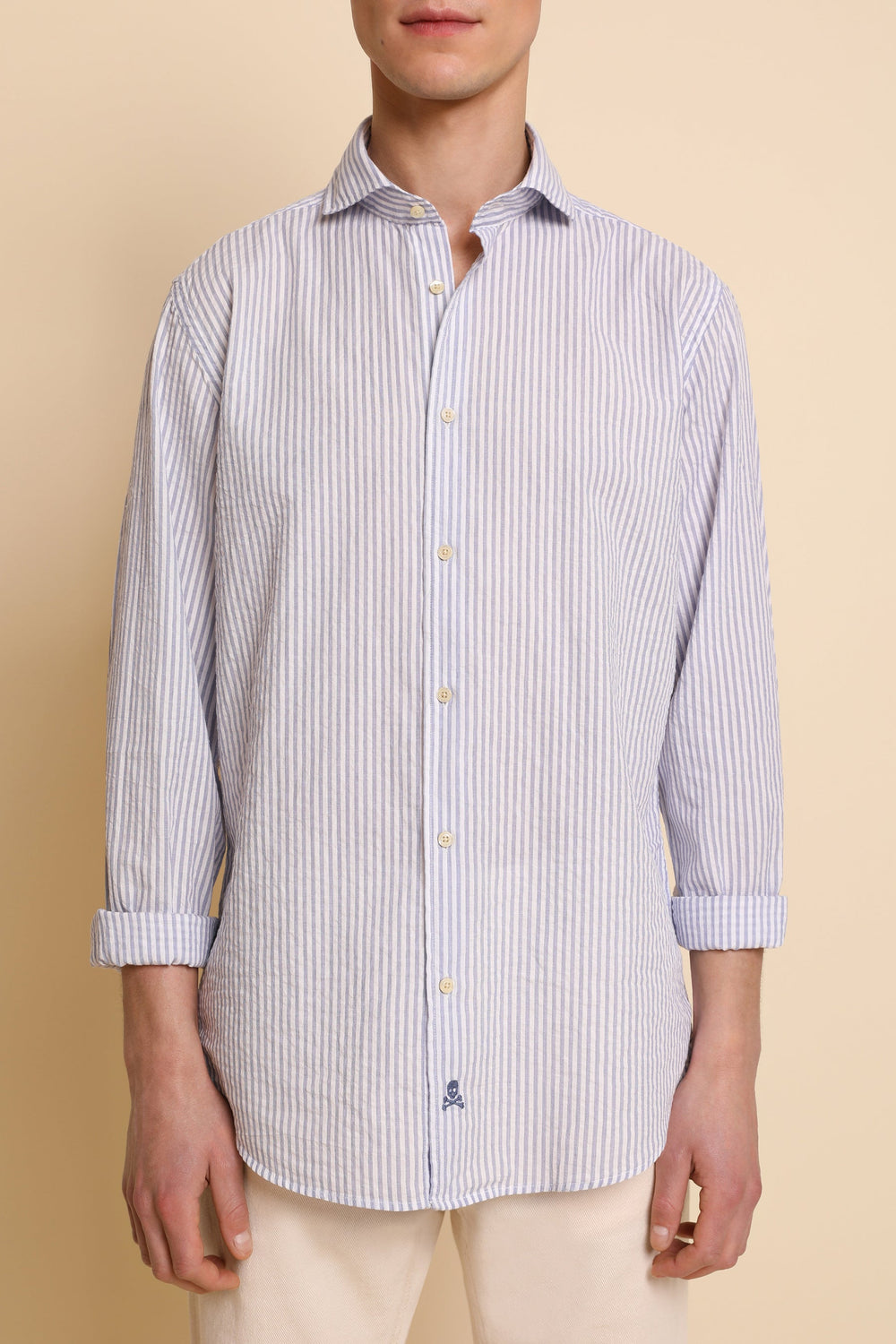 Camisa de rayas en tejido seersucker.