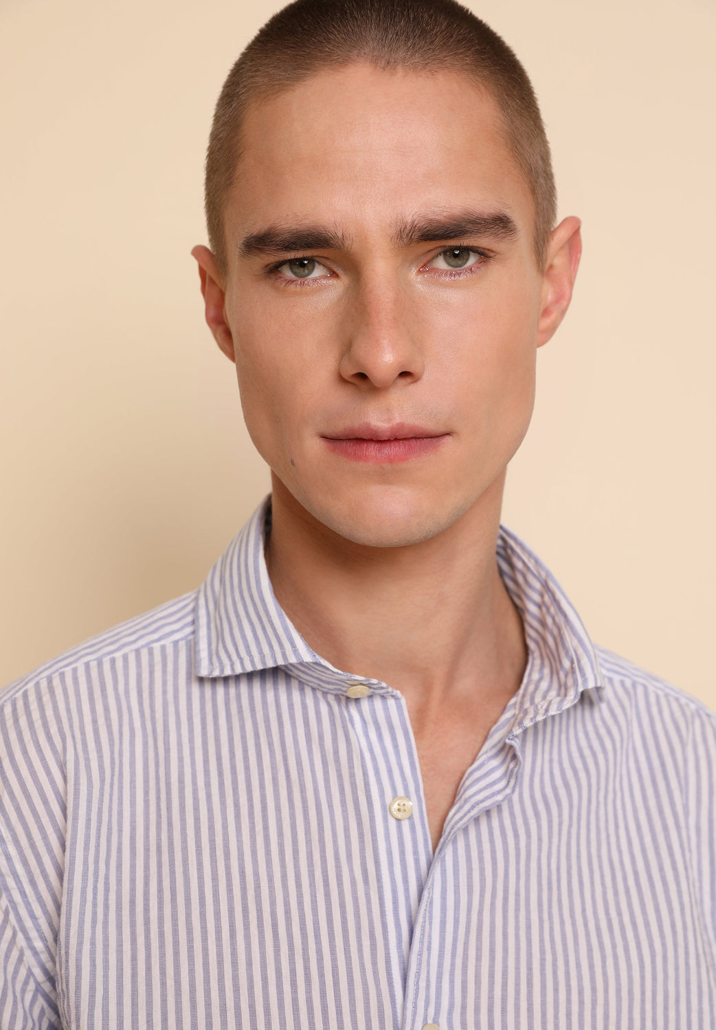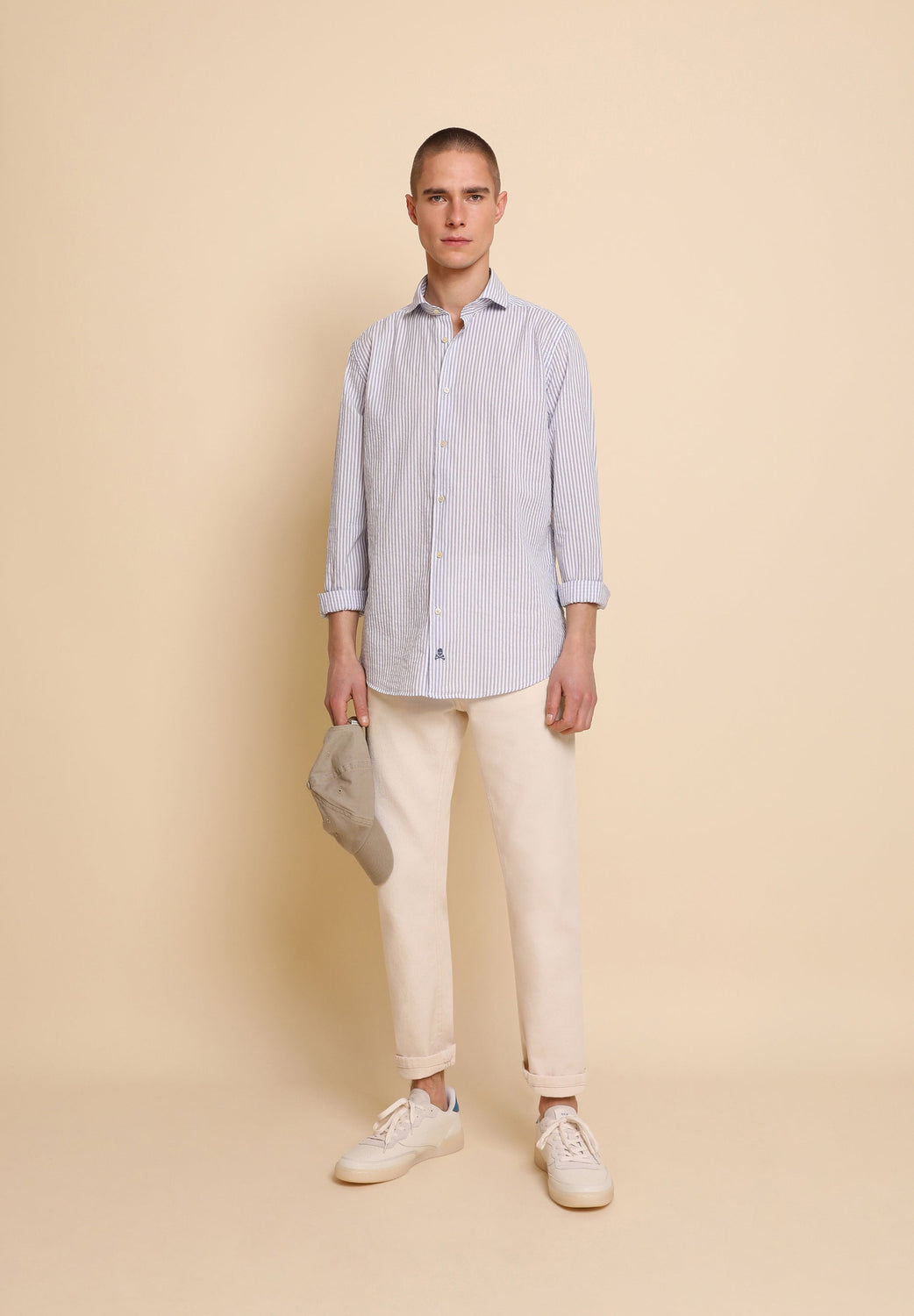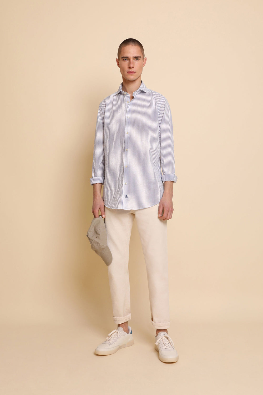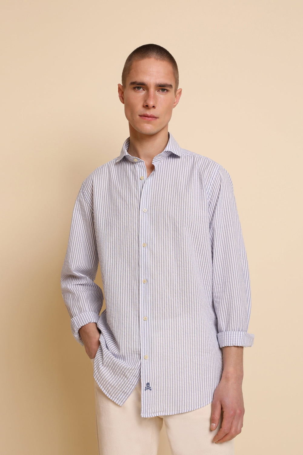 Camisa de rayas en tejido seersucker.