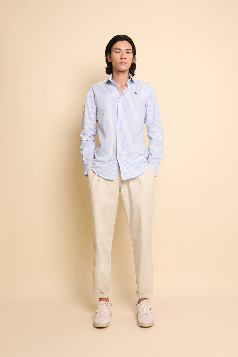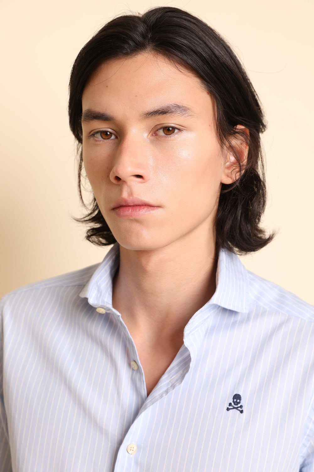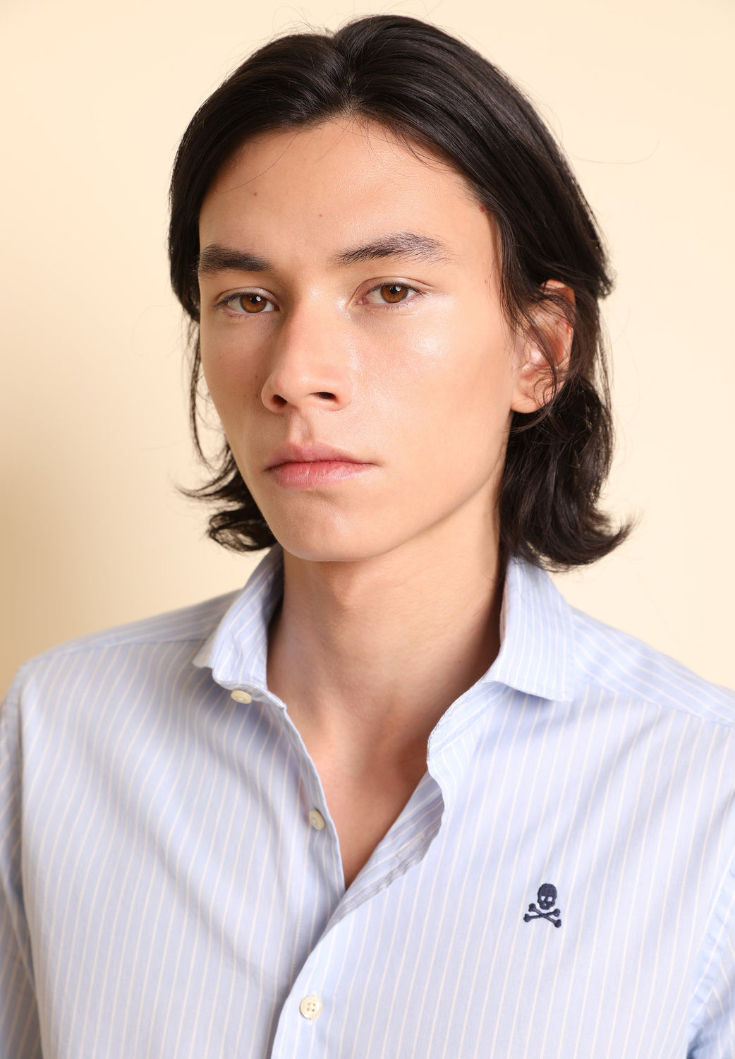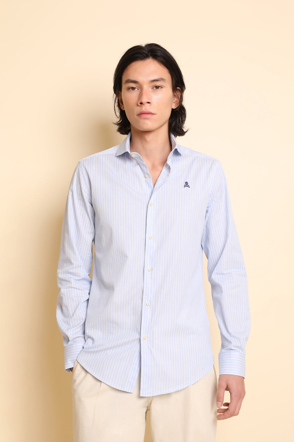 Camisa de rayas con calavera bordada a contraste.